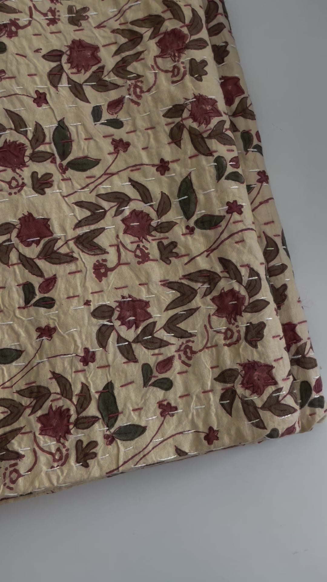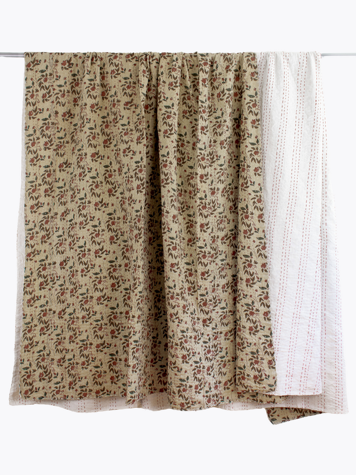 Ally Kantha Quilt in Beige - Twin/Throw and King/Queen Sized