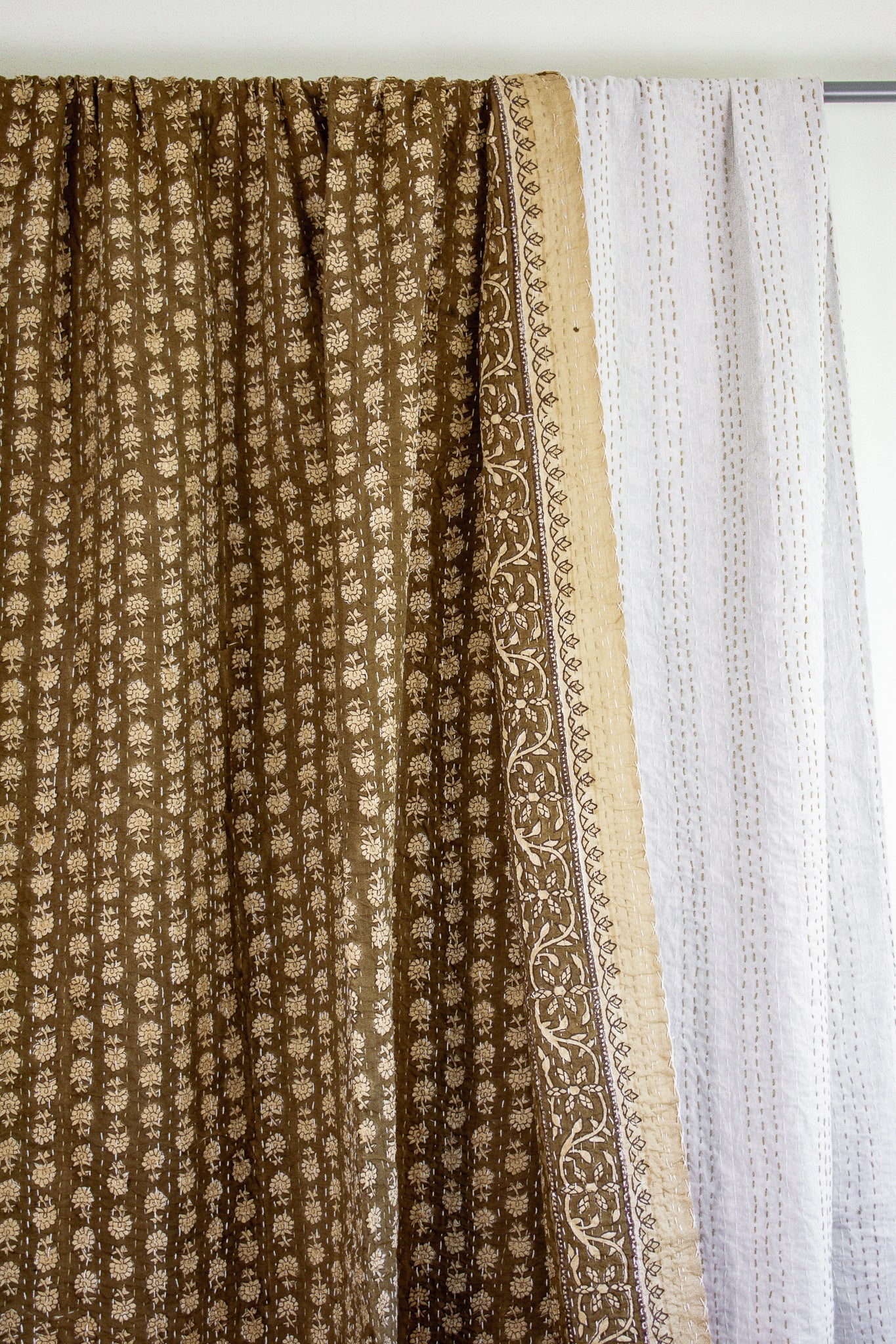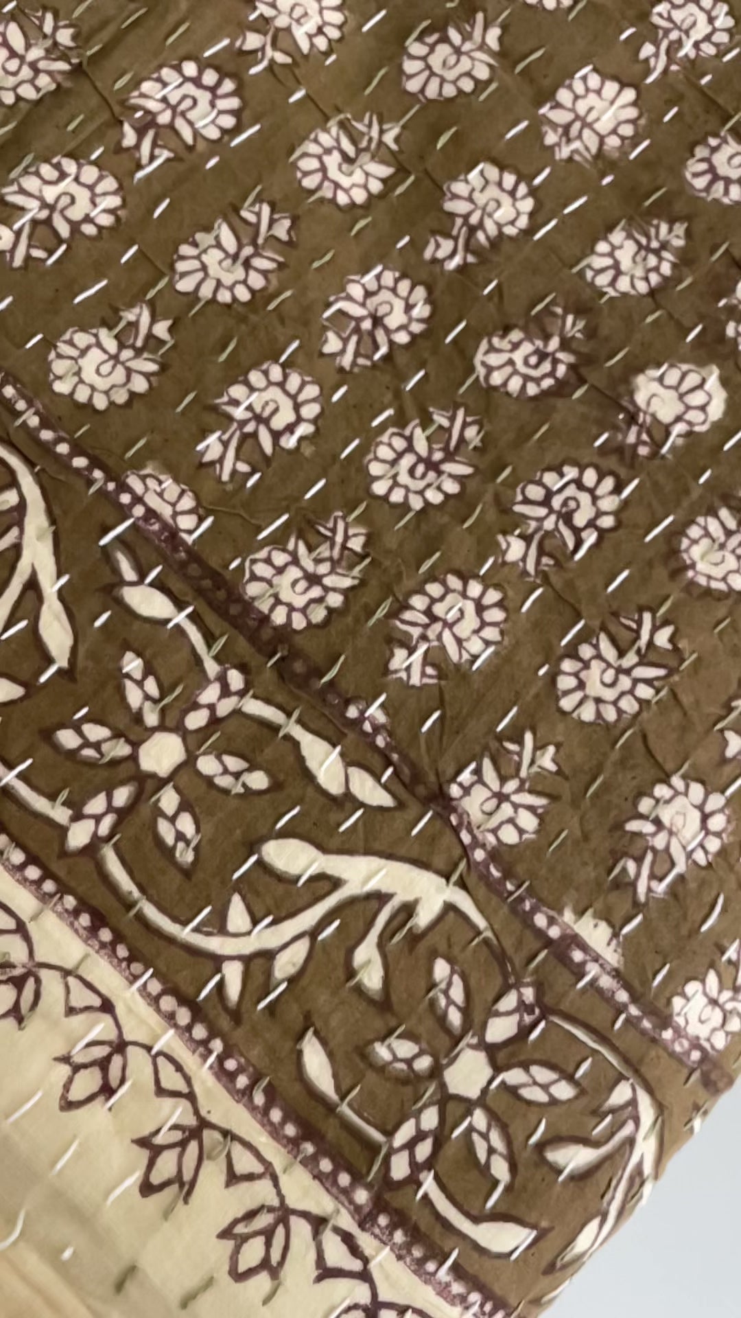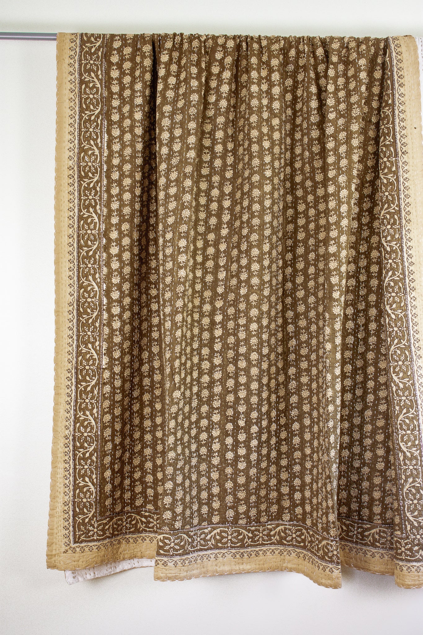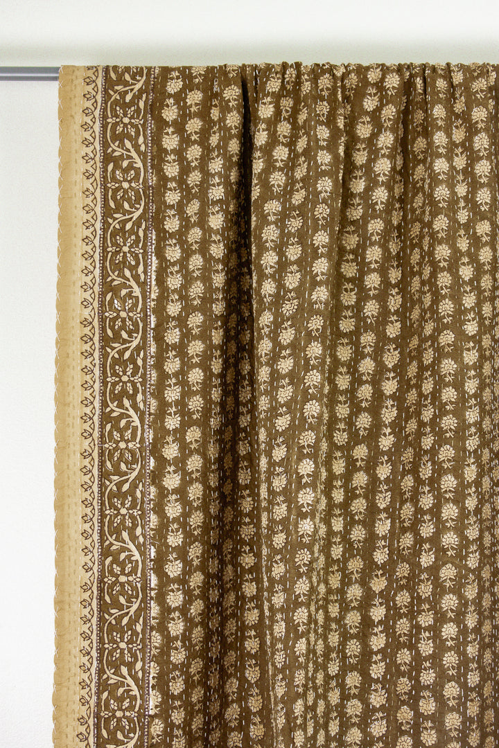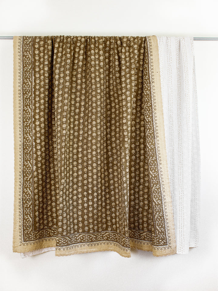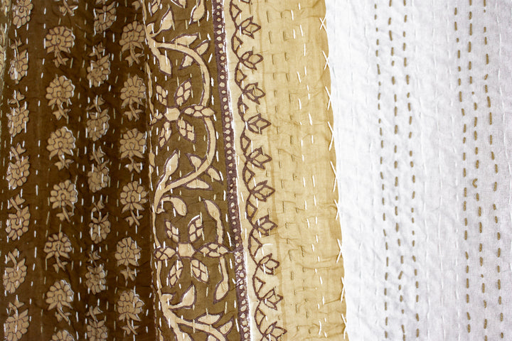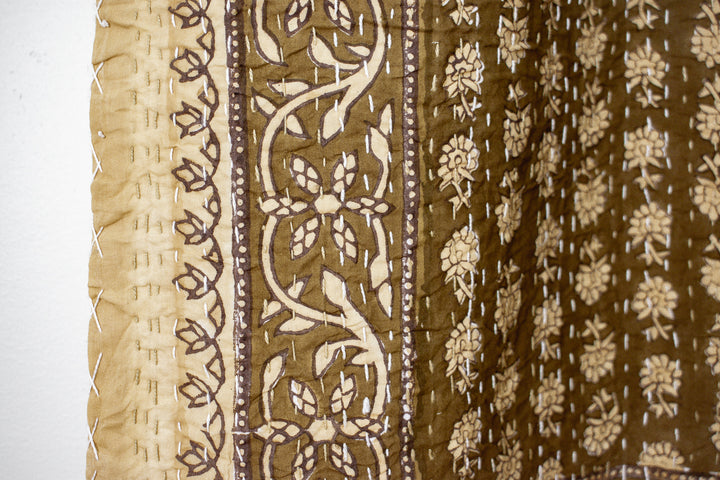 Poppy Kantha Quilt in Ochre, Tan, Earth - King/Queen Sized