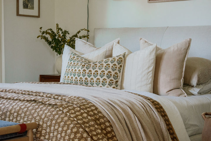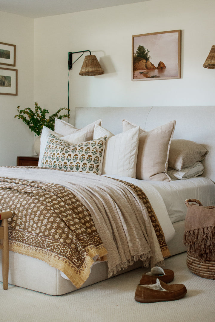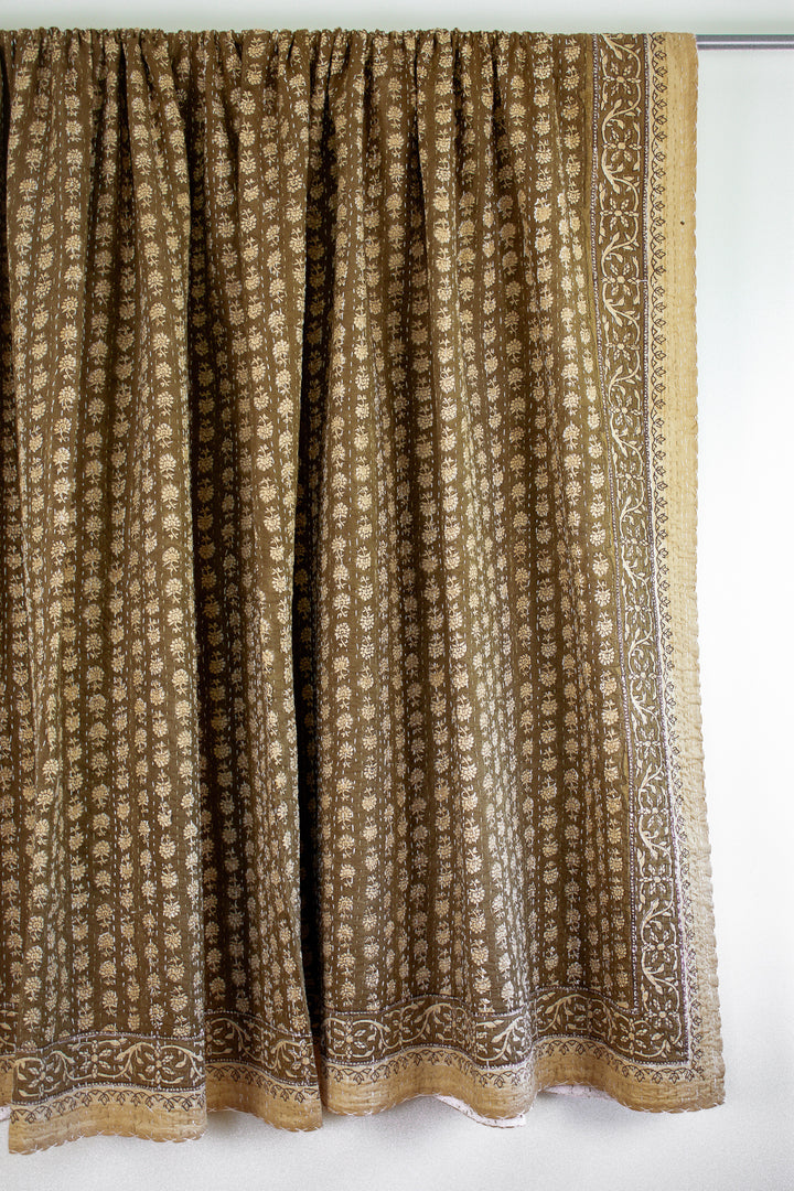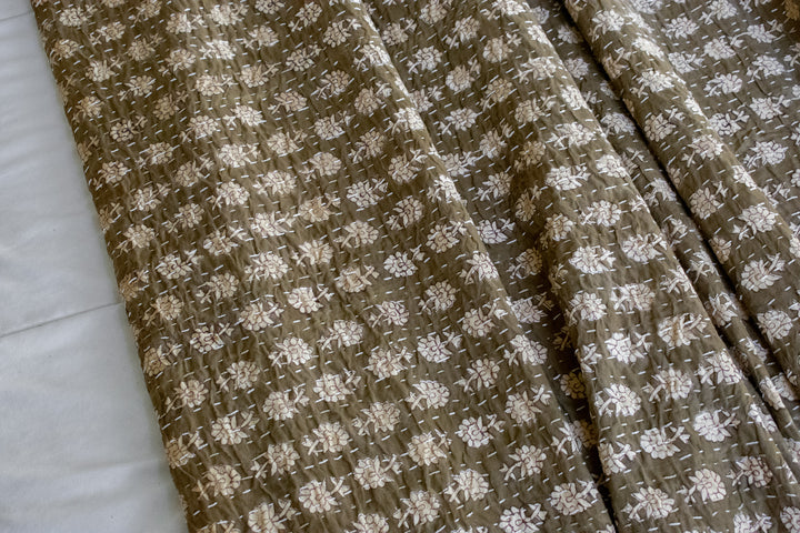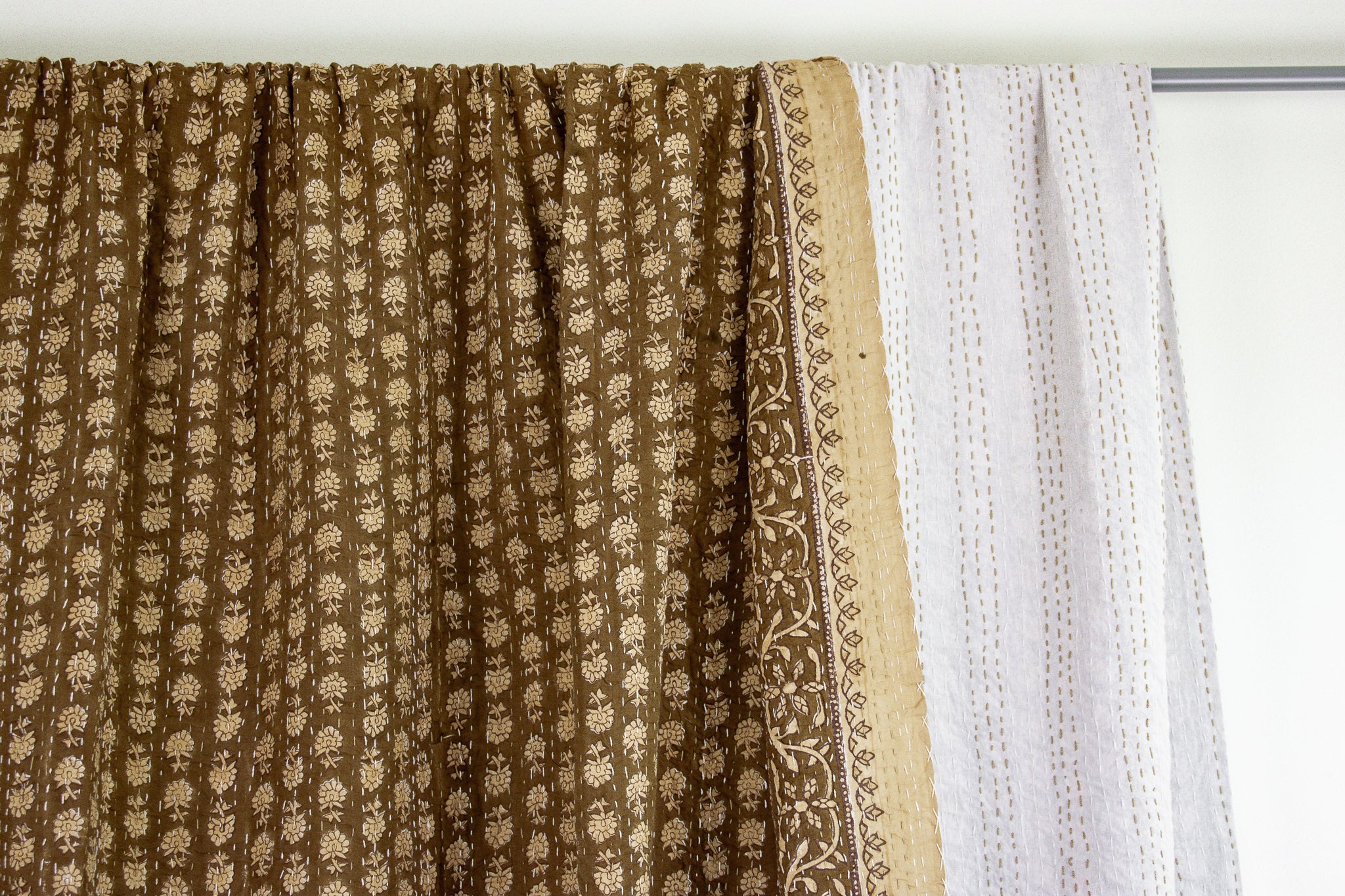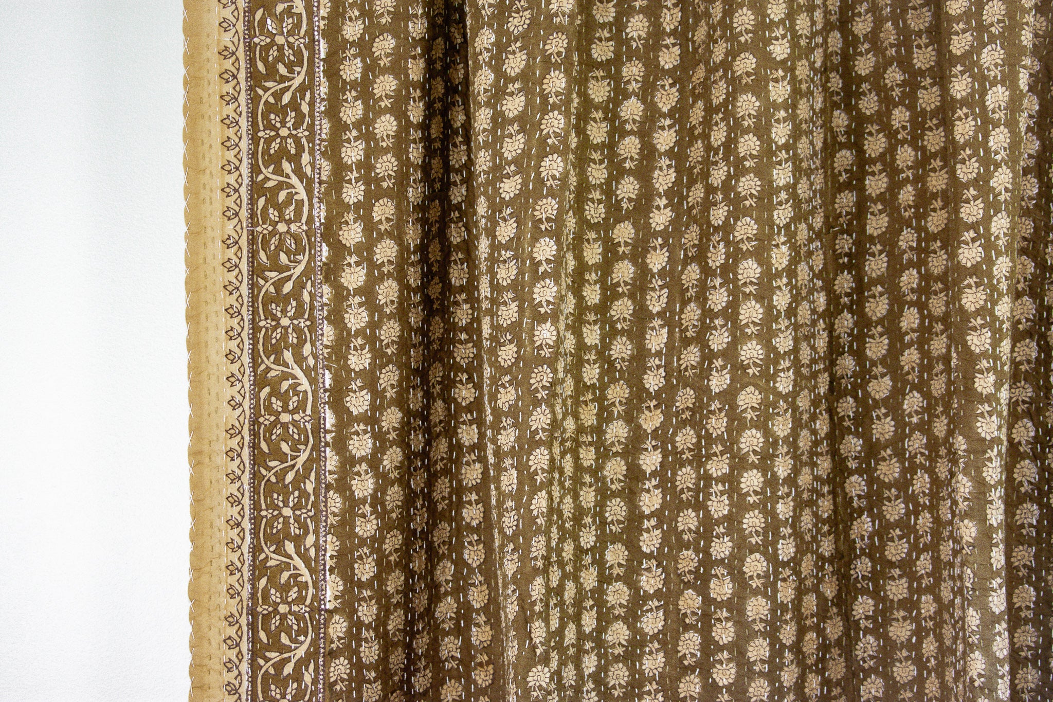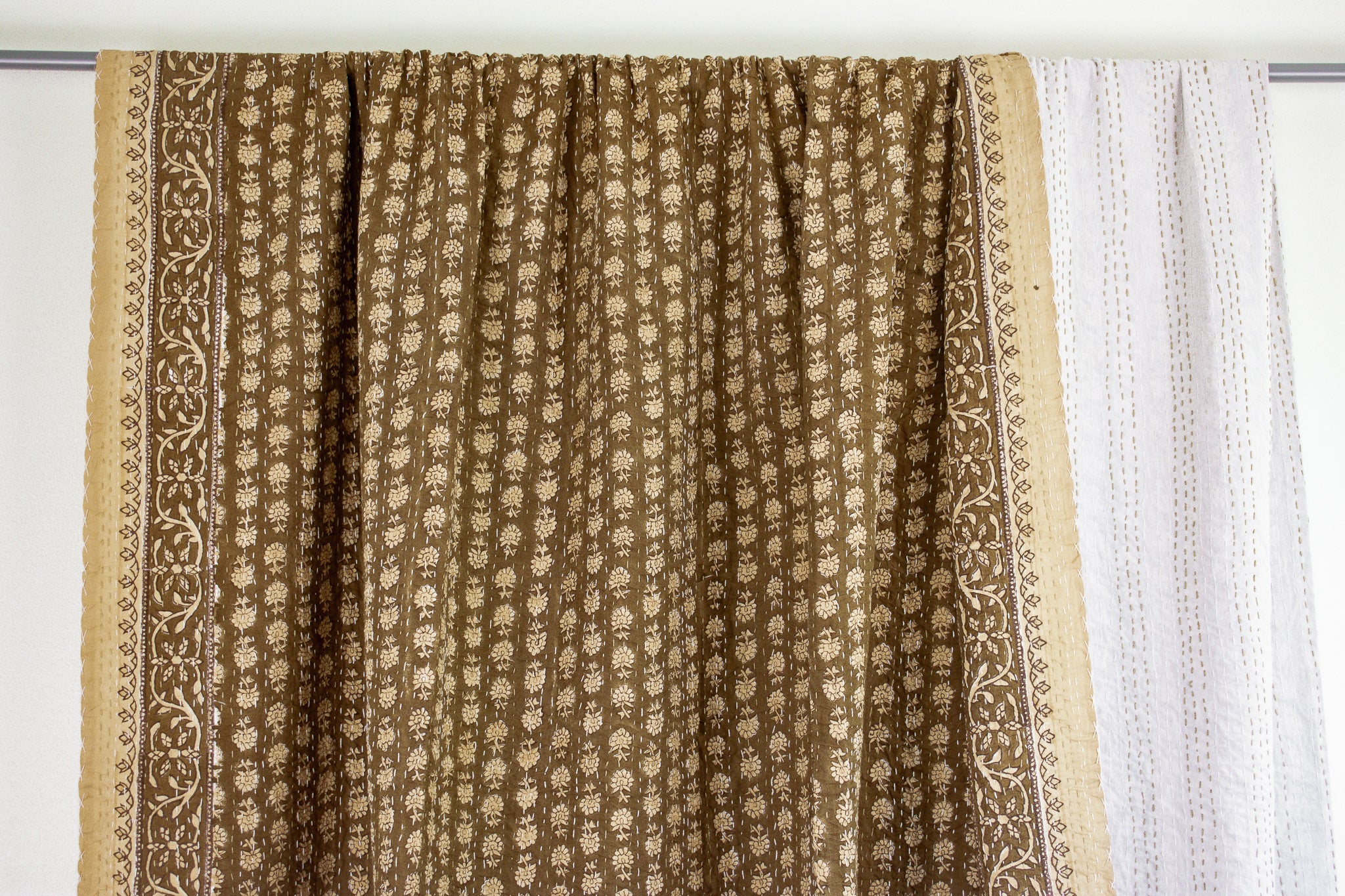 Poppy Kantha Quilt in Ochre, Tan, Earth - King/Queen Sized
