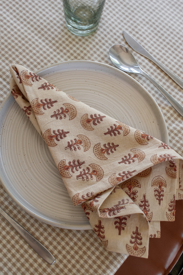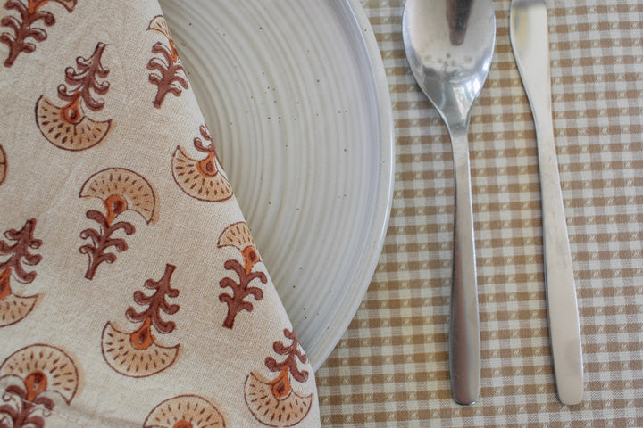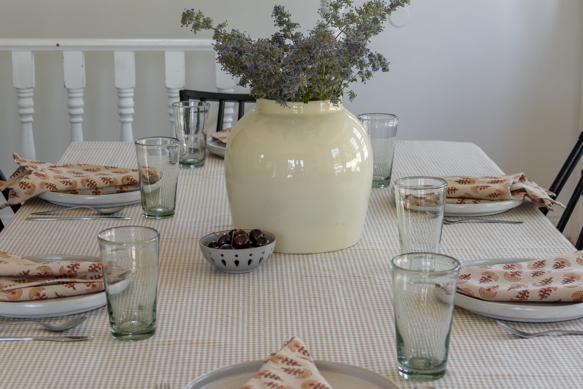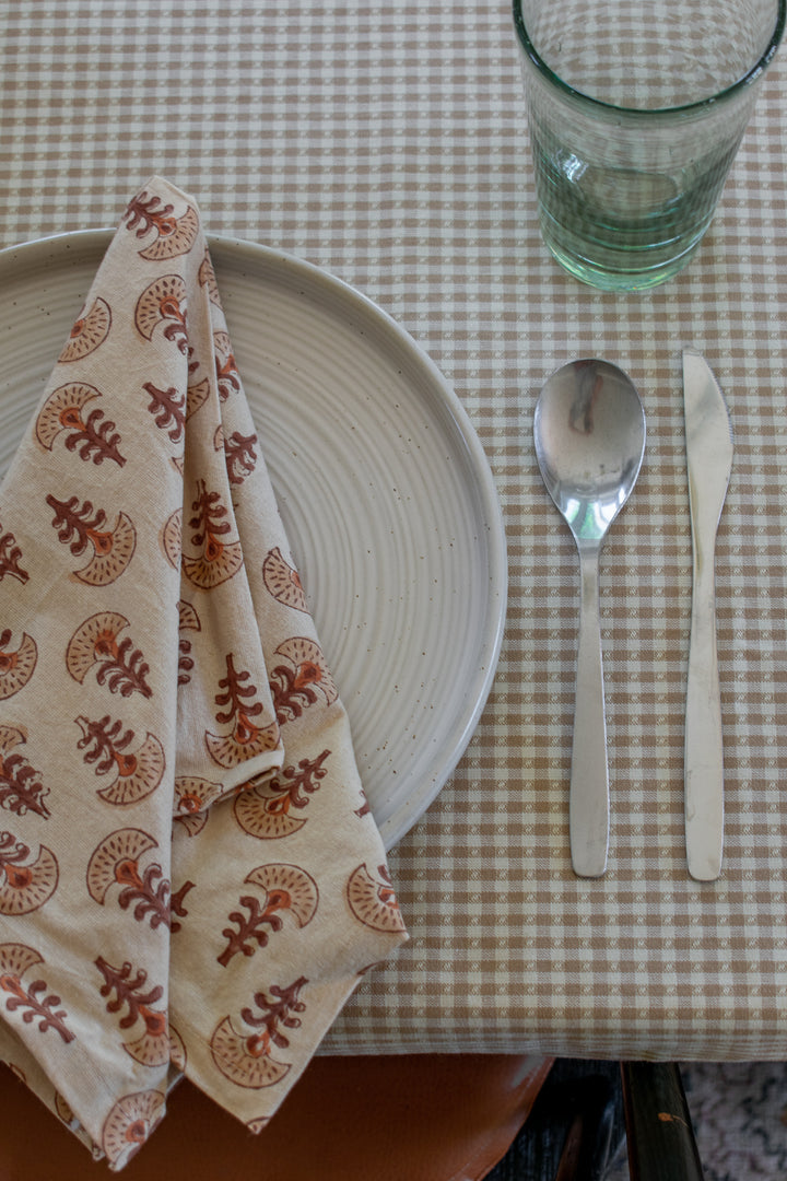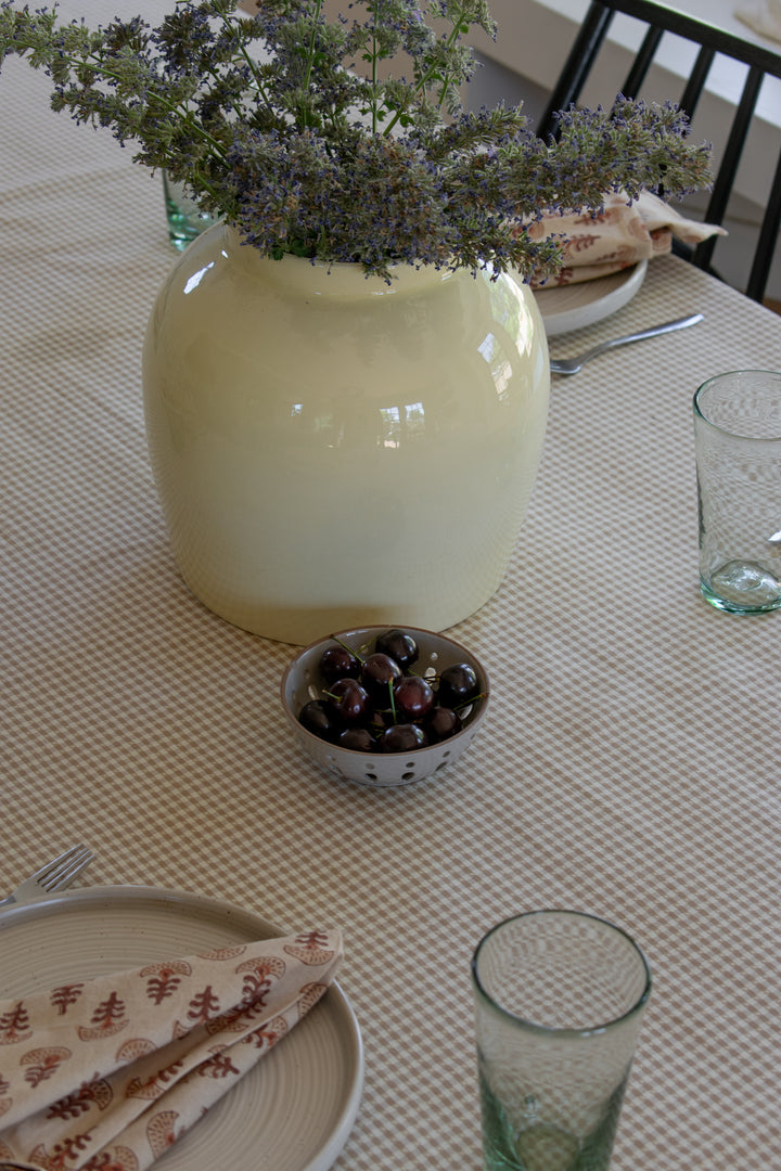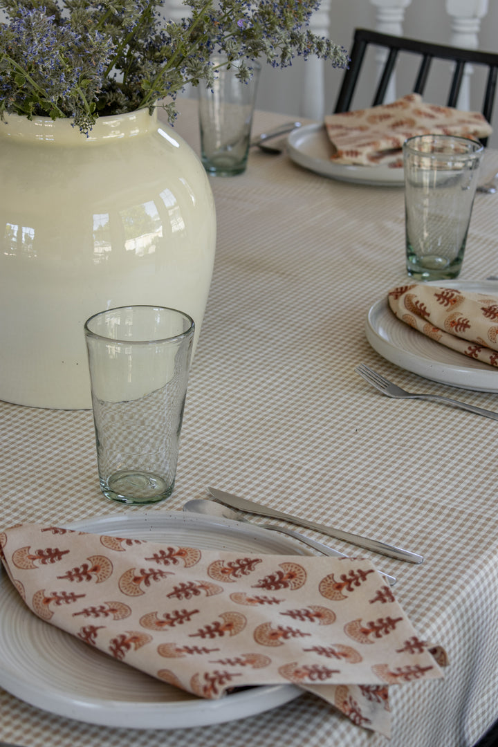 Sammy Tablecloth - Tan and Creme Mini Gingham