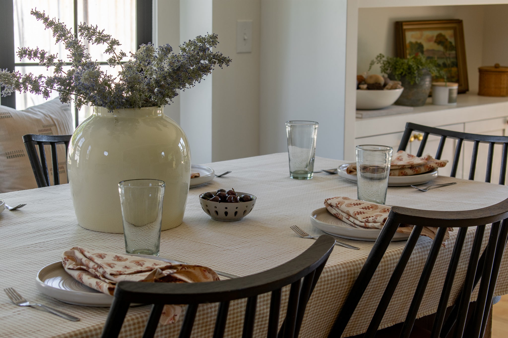 Crafted from a beautiful, durable, woven cotton mini gingham with a subtle fringe hem, the Katie tablecloth brings classic softness and pattern to your dining room.