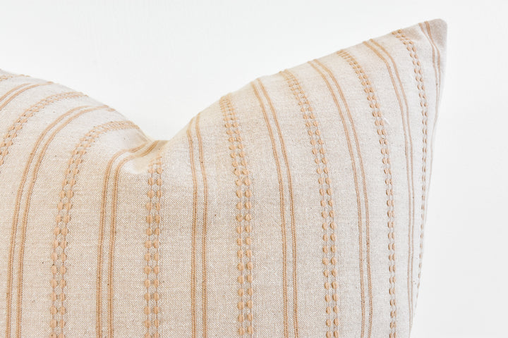 Hmong Floral Block Print Pillow Cover - Oat and Ochre
