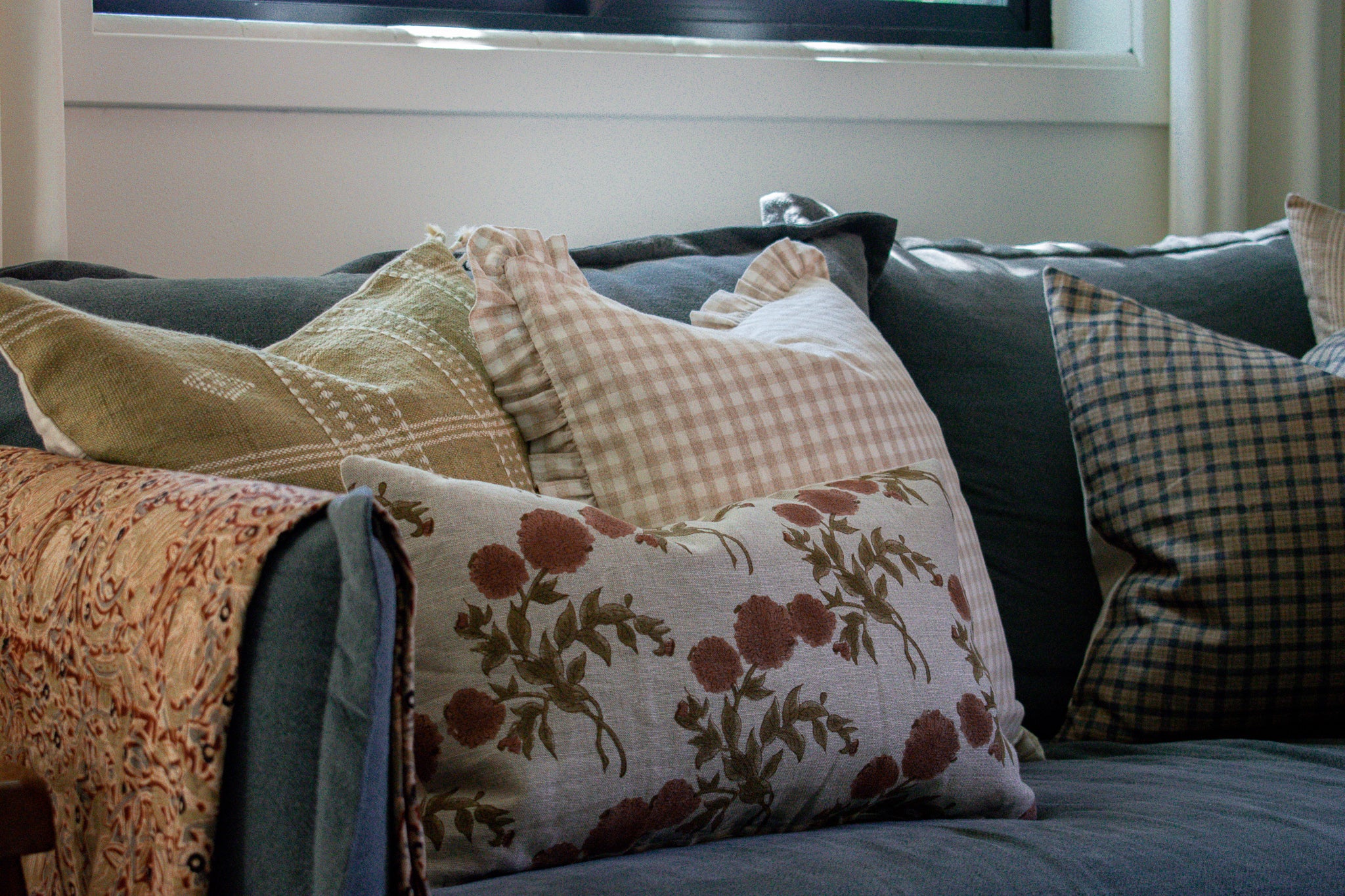 This pillow is crafted from beautifully woven vintage Hmong fabric from the Hmong hill tribe in Northern Thailand. We traveled to Thailand and hand picked each of these gorgeous fabrics to create a collection that is both unique and cohesive, so putting together a combo is effortless. By going straight to the source, we cut out middleman costs, so you get the high end designer look without the high end designer price.