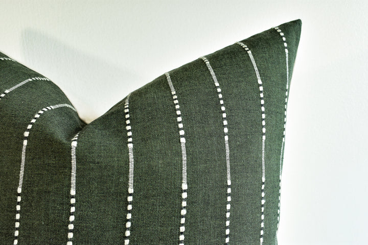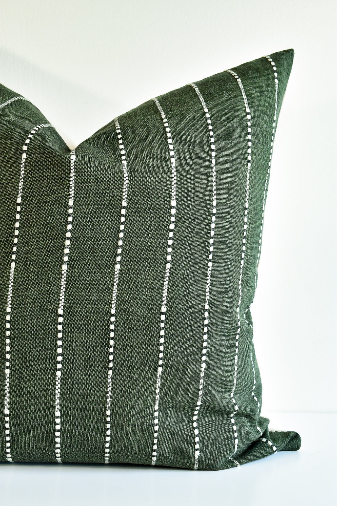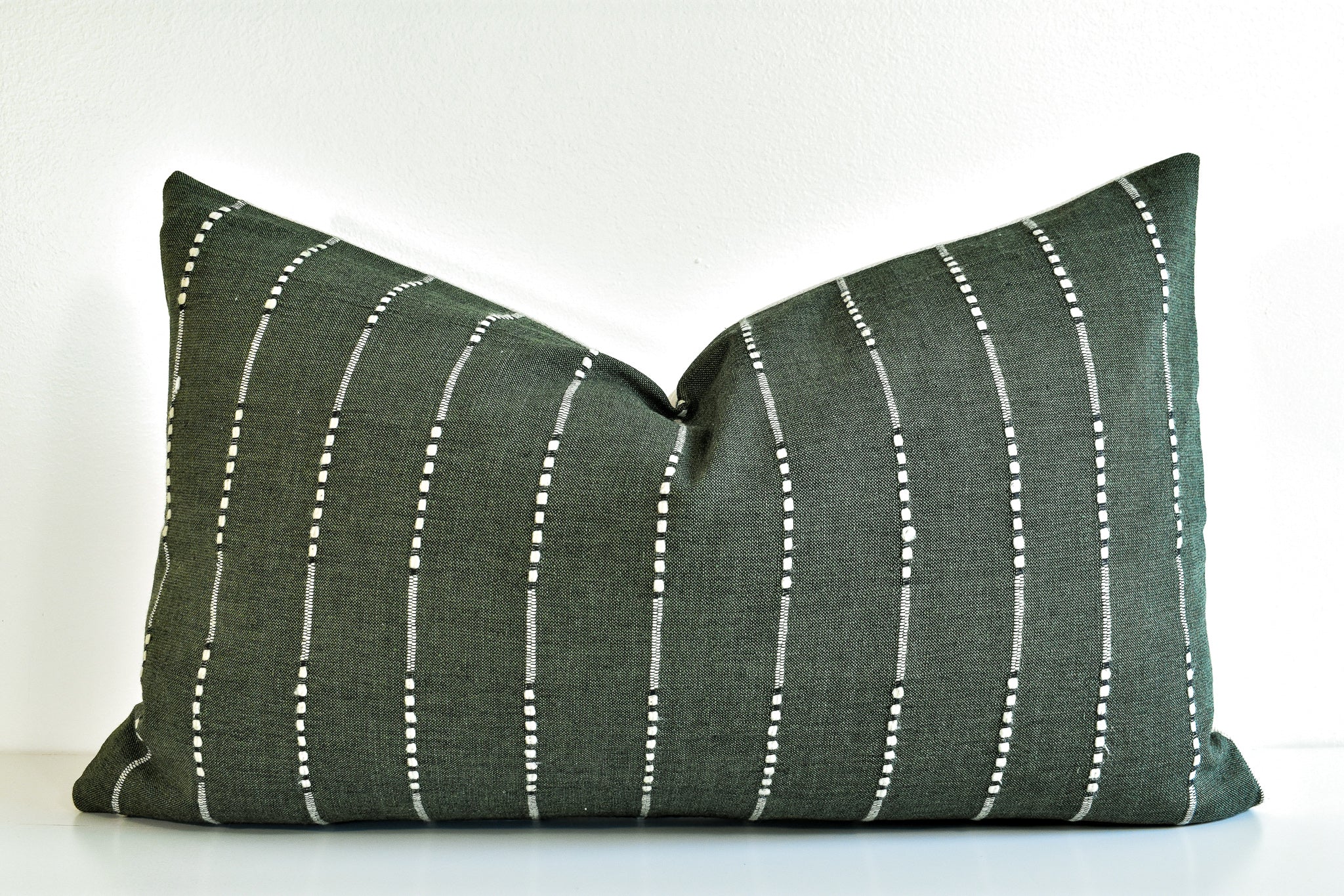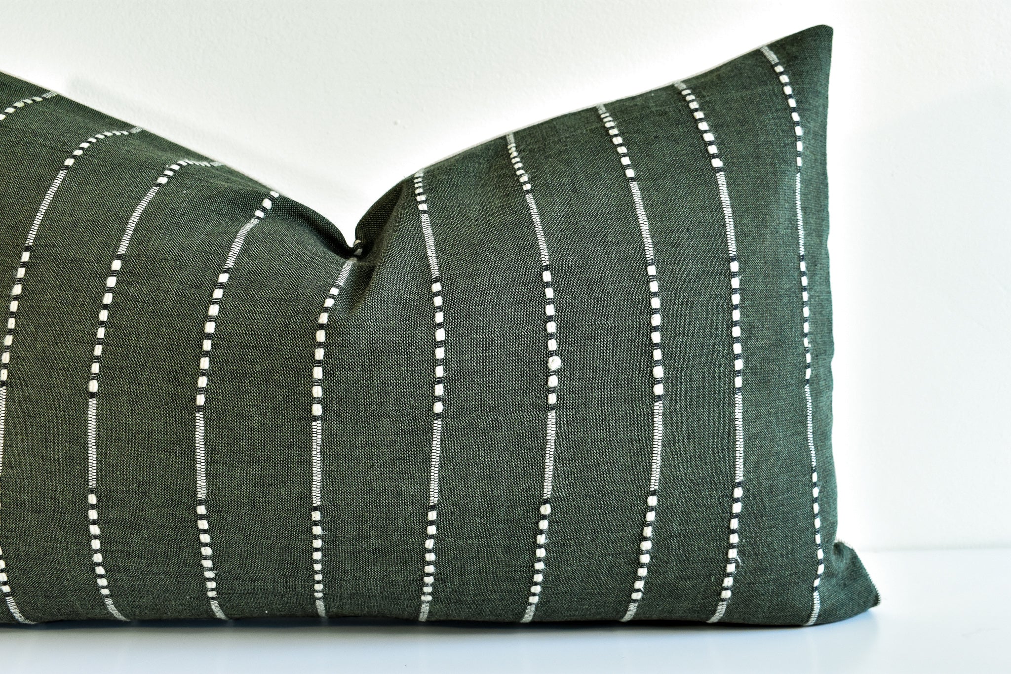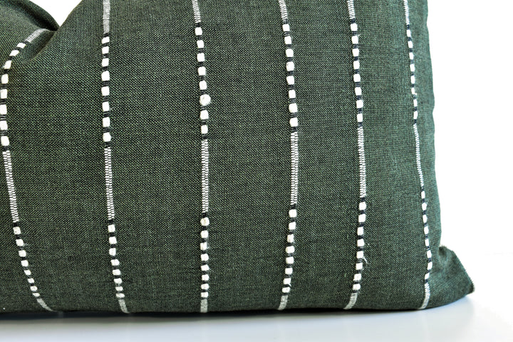 Hmong Organic Woven Striped Pillow Cover - Forest Green