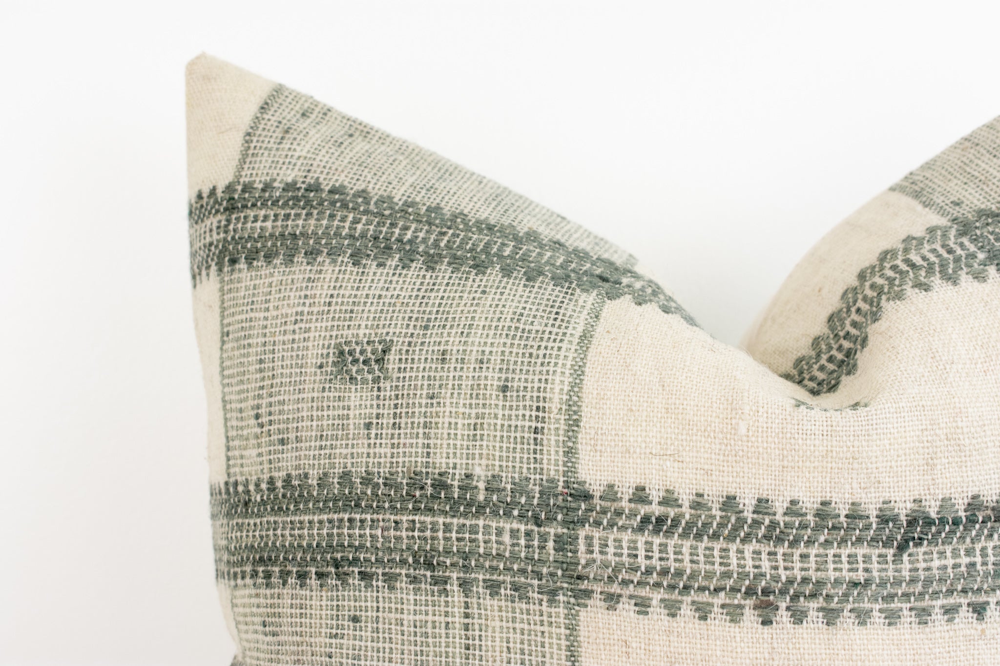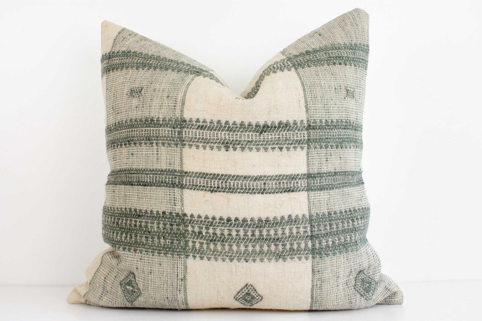 Indian Bhujodi Pillow Cover - Ivory and Sage