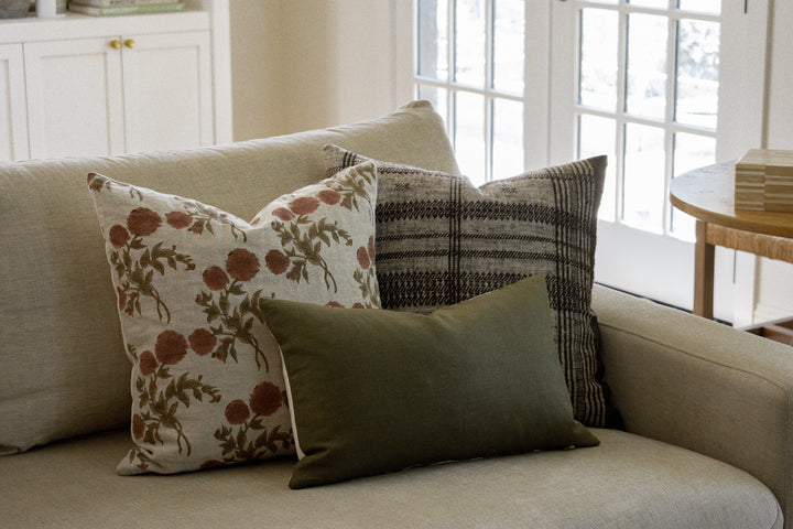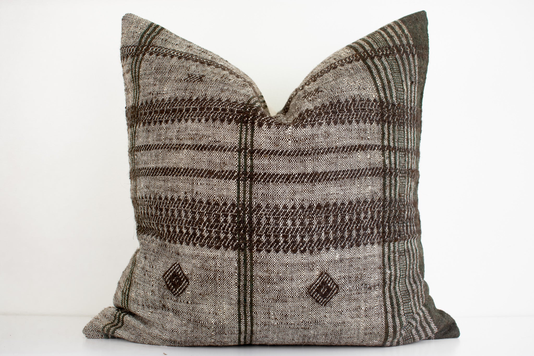 Our Indian Bhujodi Pillows are handwoven by artisans in Northern India from 100% organic, hand-spun wool and natural dyes, making each completely one of a kind. Their rich colors and intricate textural details elevate any space and add a gorgeous cultural dimension to any room!