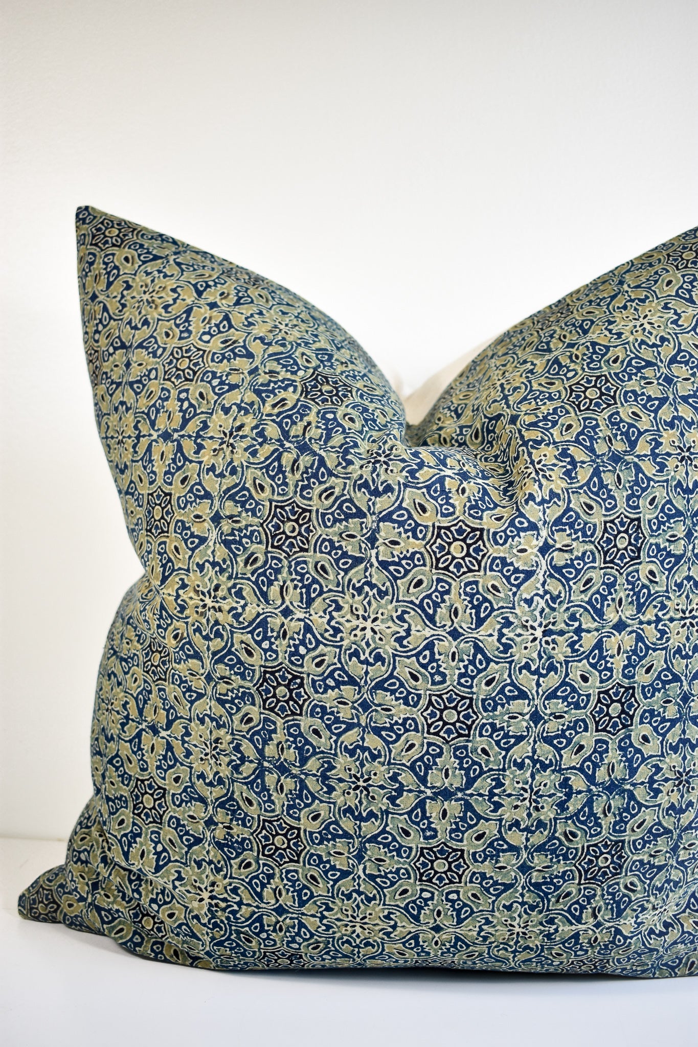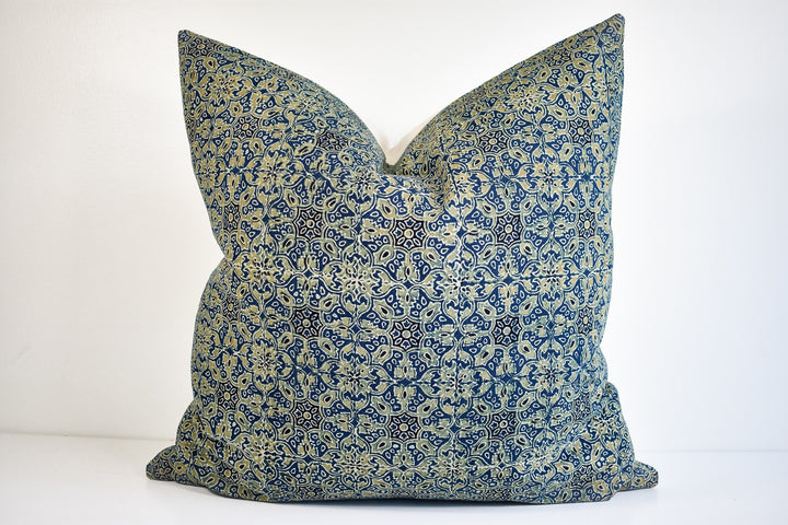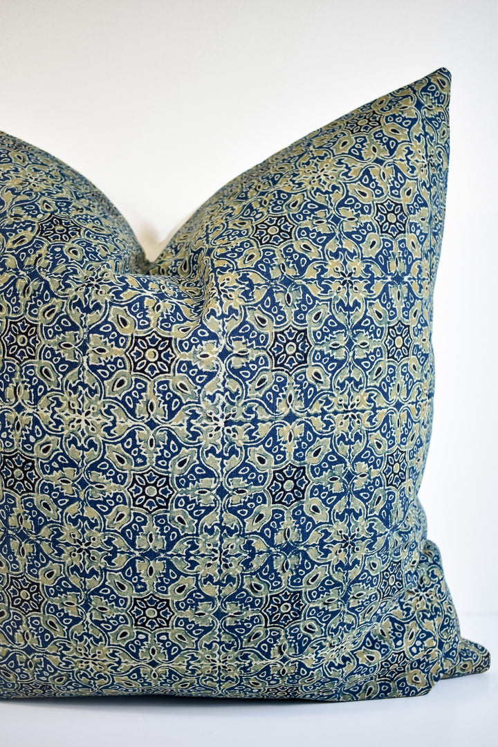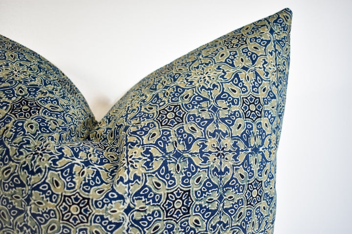 Indian Block Print Pillow Cover - Indigo and Sage