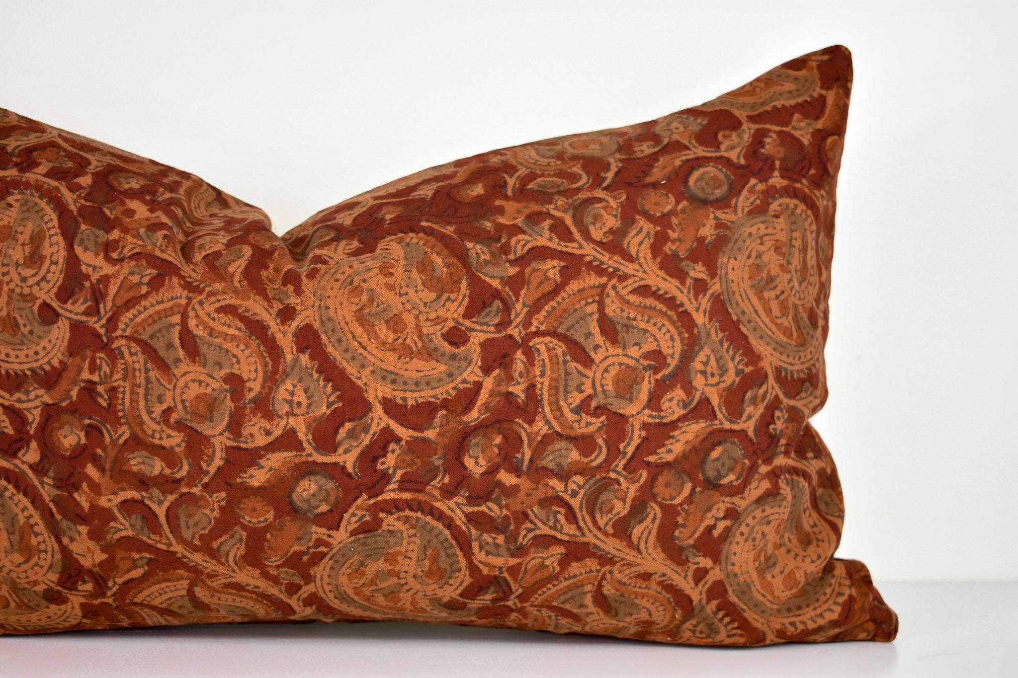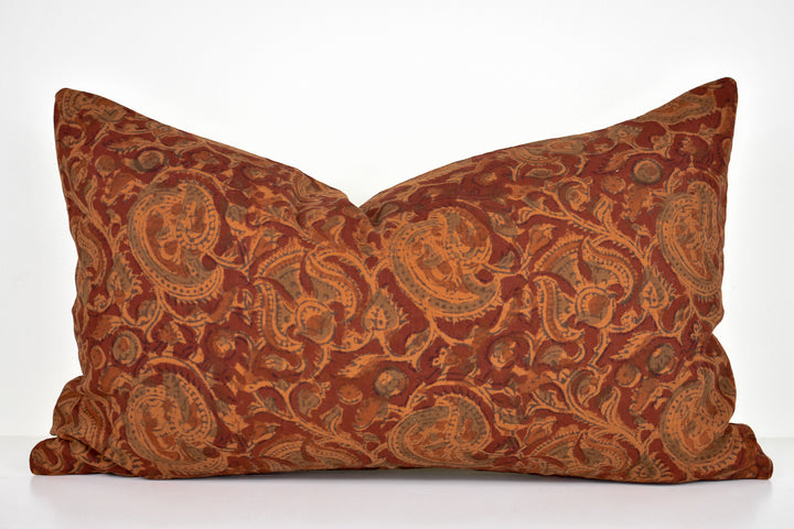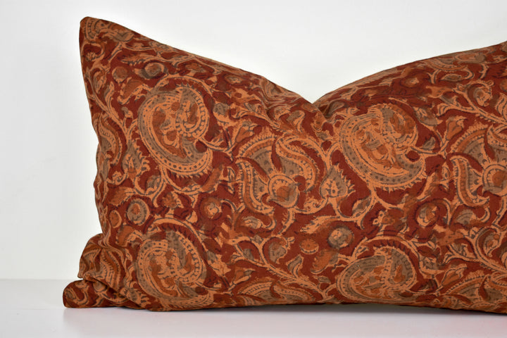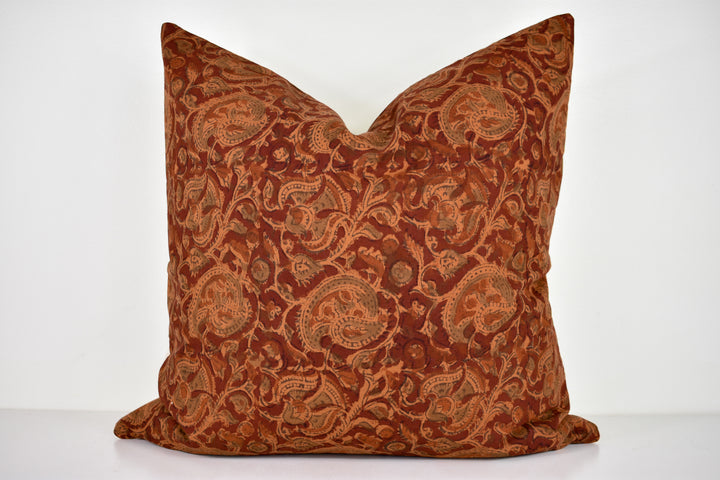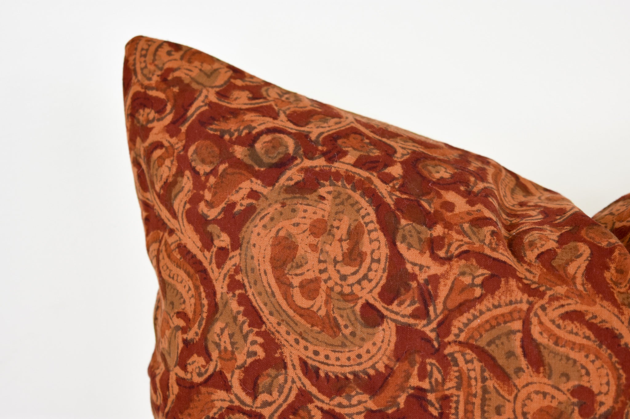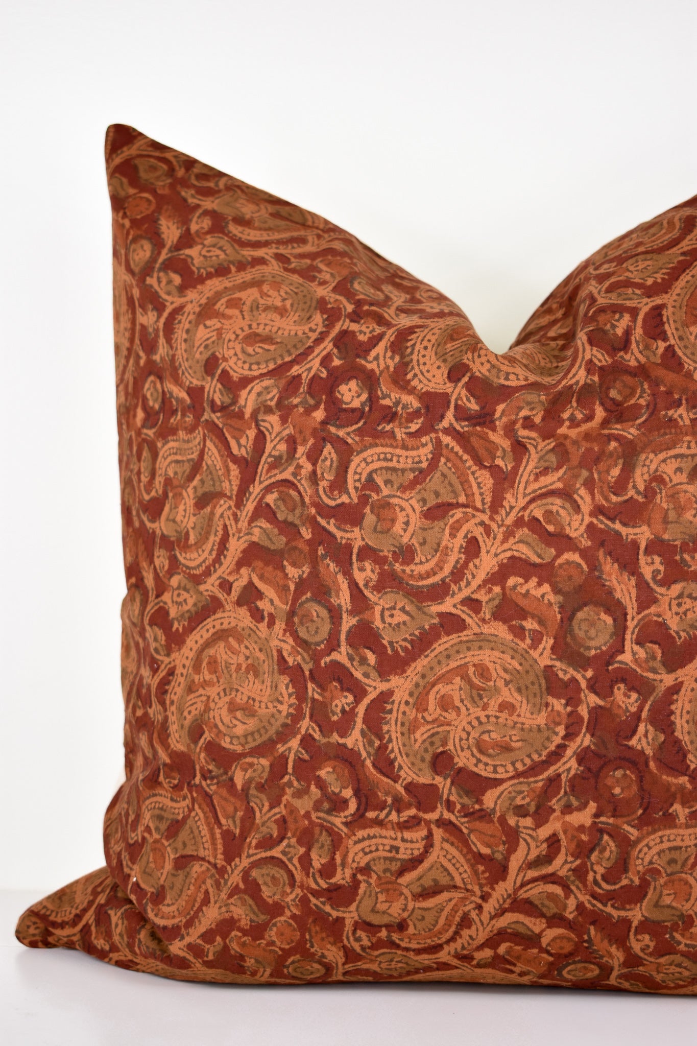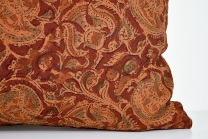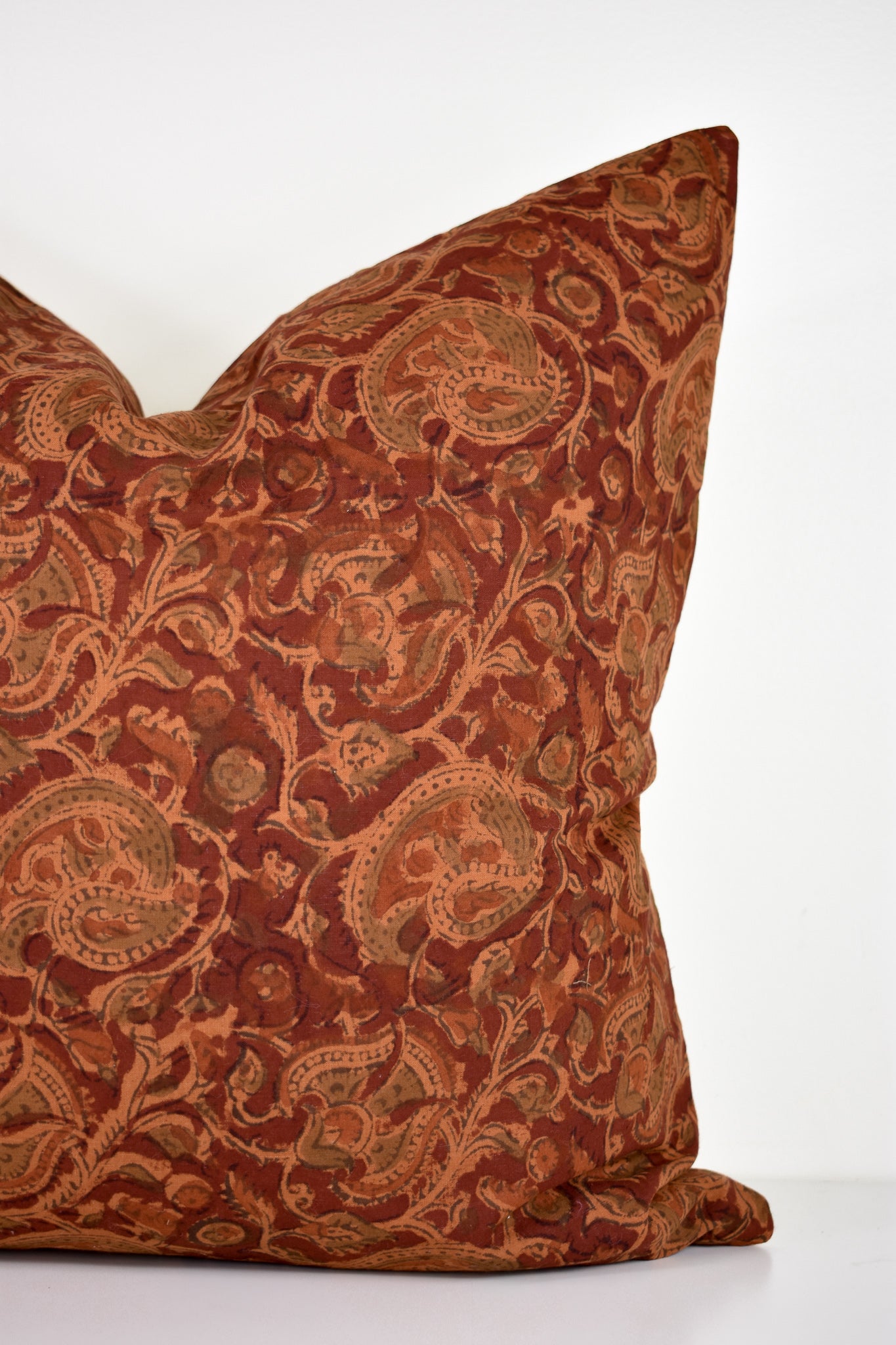 Indian Block Print Pillow Cover - Deep Rust and Olive