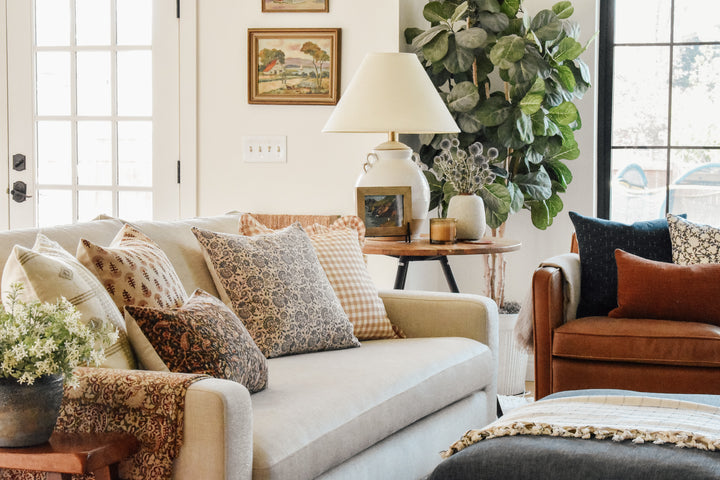 Our Indian Block Print Pillows are a true labor of love. We designed each one and had them hand block printed by our talented artisans on luxuriously soft, 100% natural linen. Their rich colors and intricate details elevate any space and add a gorgeous cultural dimension to any room!