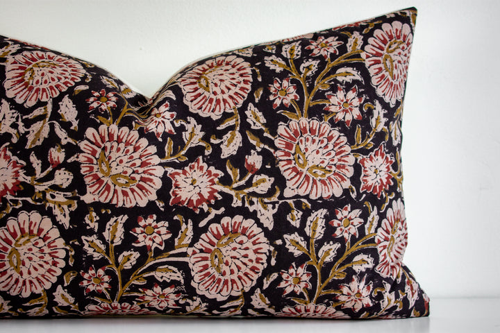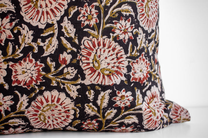 Indian Block Print Pillow Cover - Black, Gold, Rust, Tan