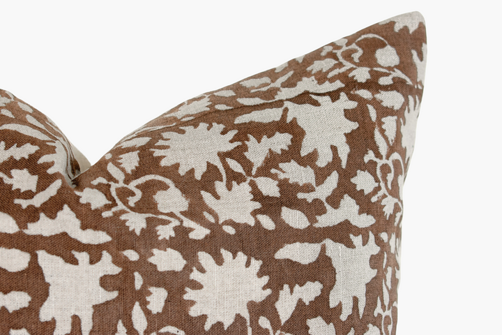 Indian Block Print Pillow Cover - Chocolate Brown and Natural