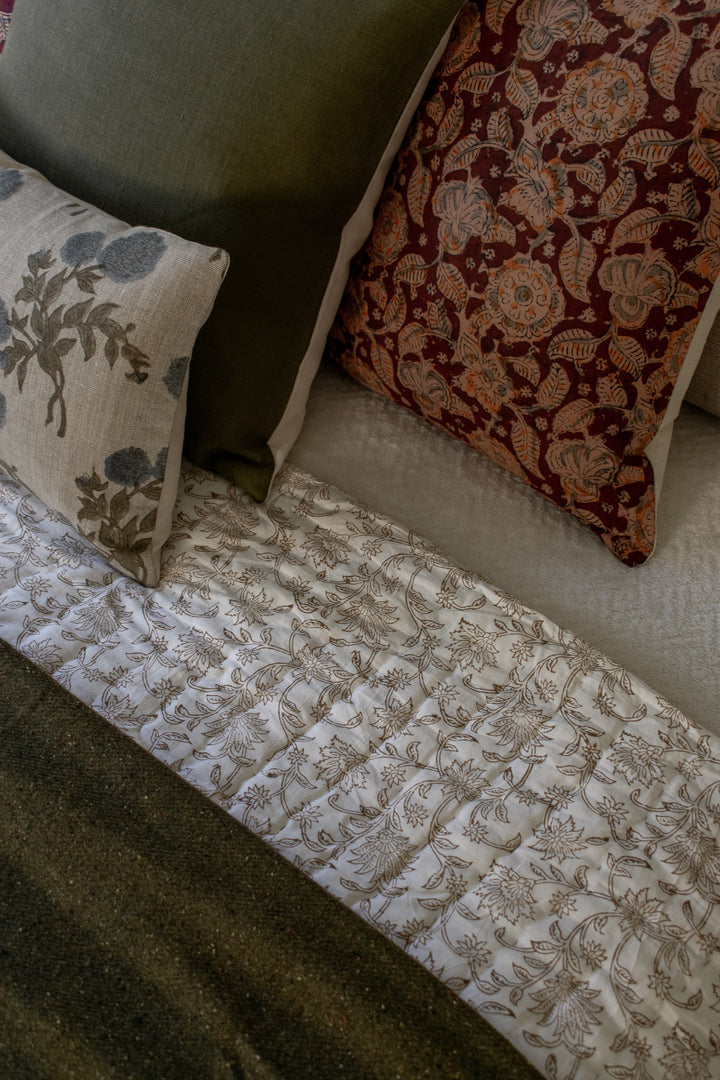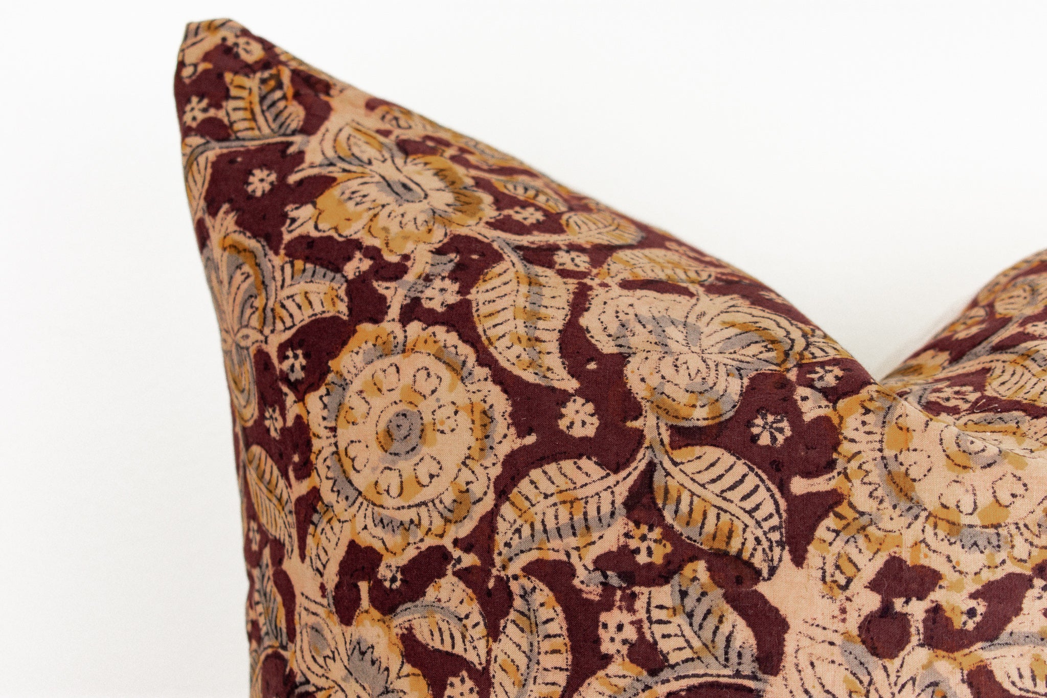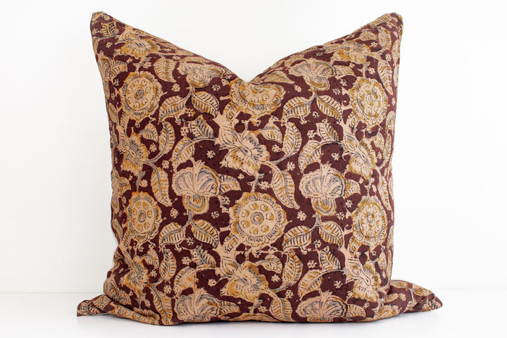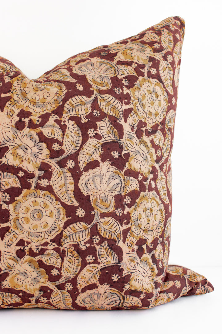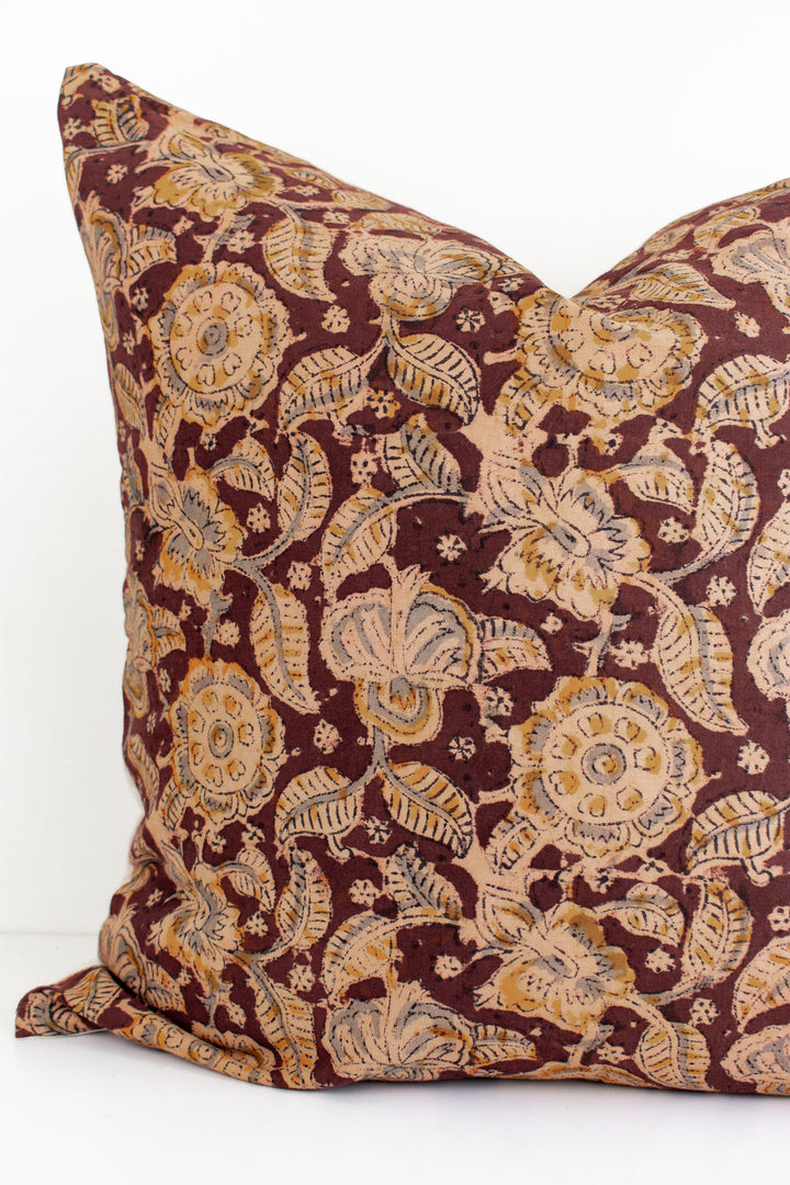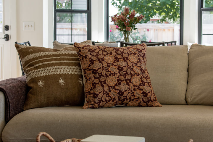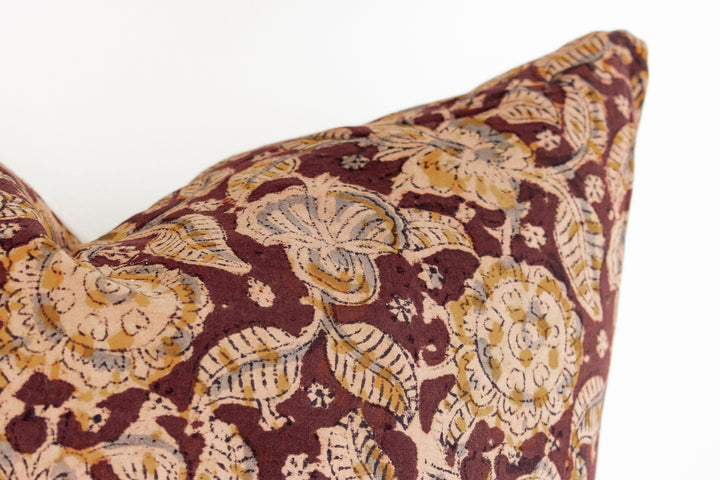 Indian Block Print Pillow Cover - Burnt Rust, Stone, Acorn