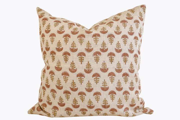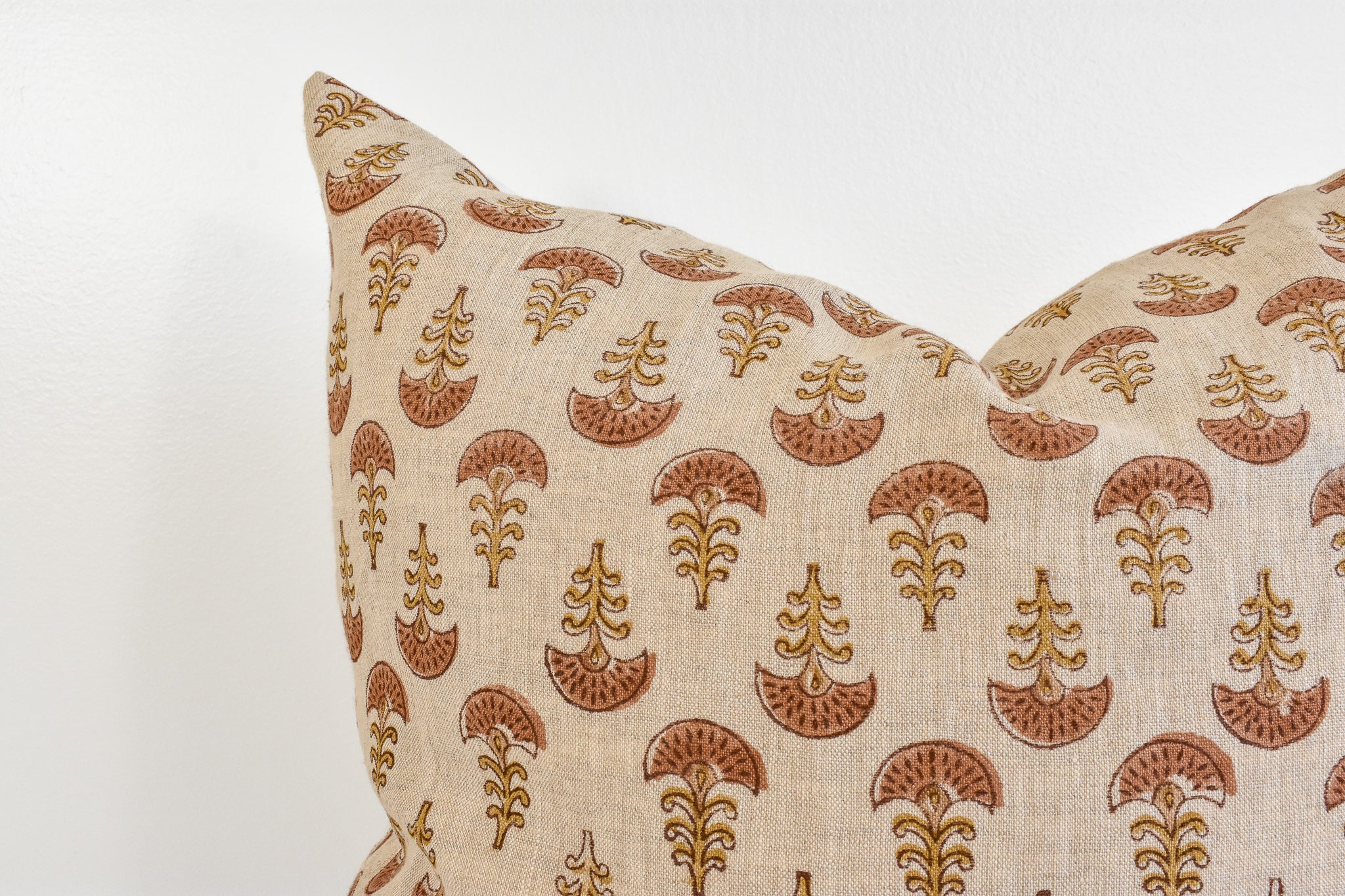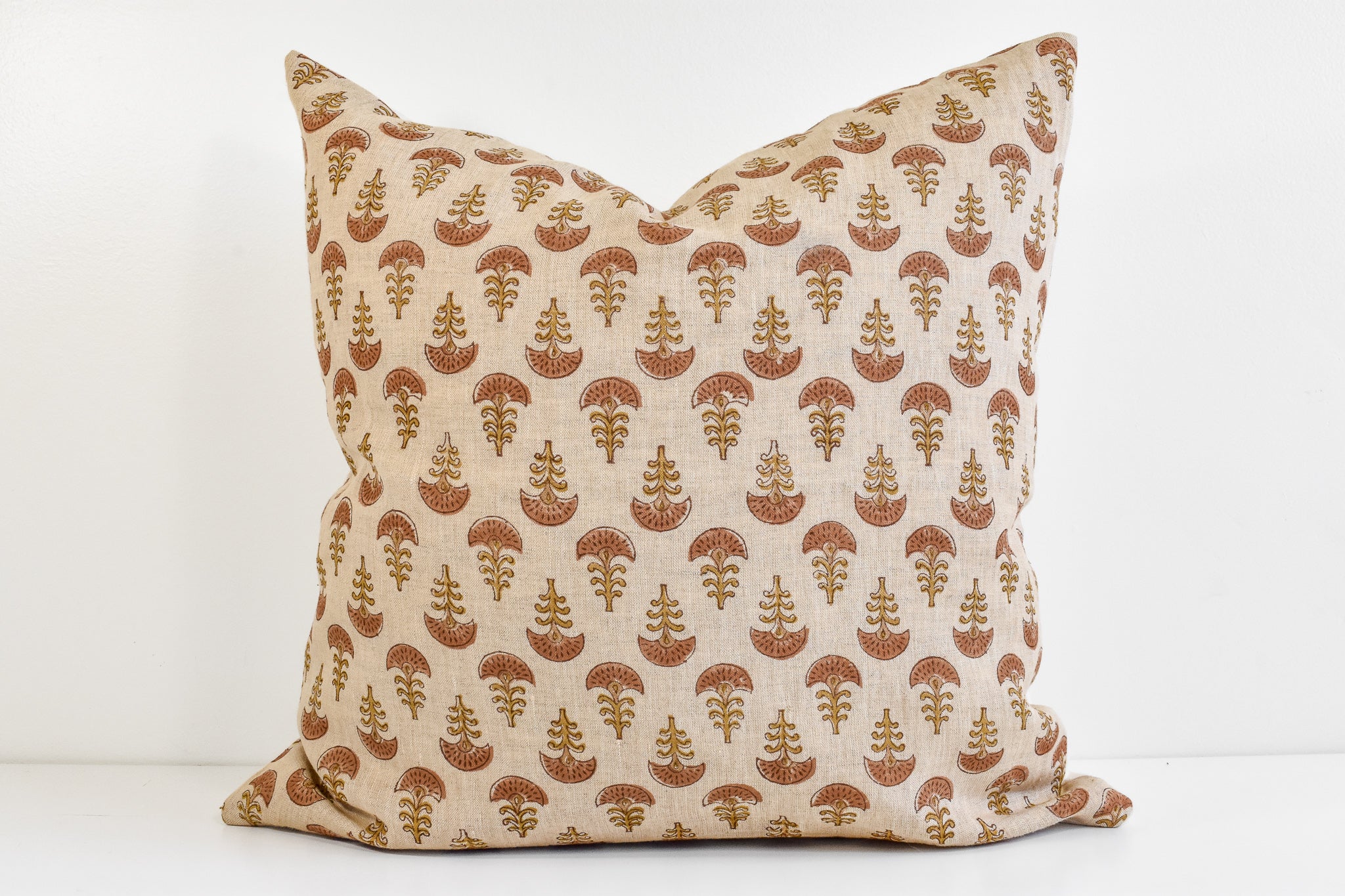 Our Indian Block Print Pillows are a true labor of love. We designed each one and had them hand block printed by our talented artisans on luxuriously soft, 100% natural linen. Their rich colors and intricate details elevate any space and add a gorgeous cultural dimension to any room!