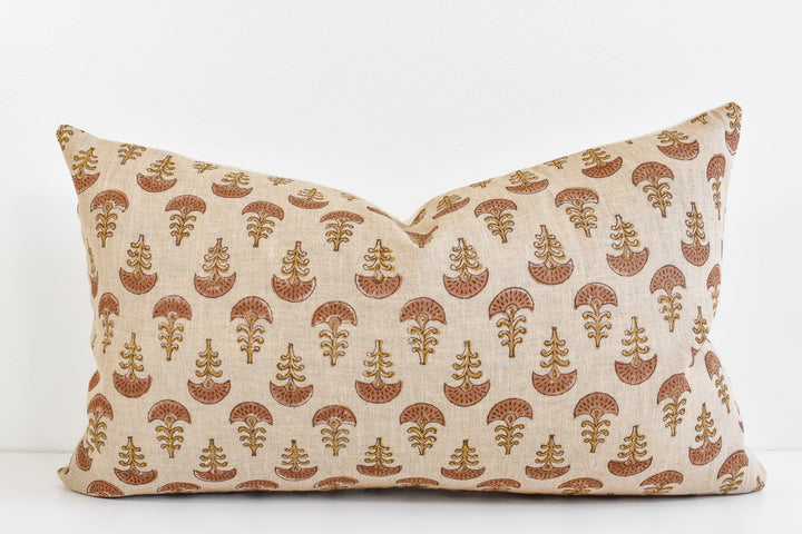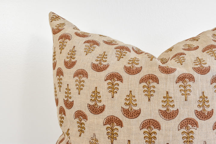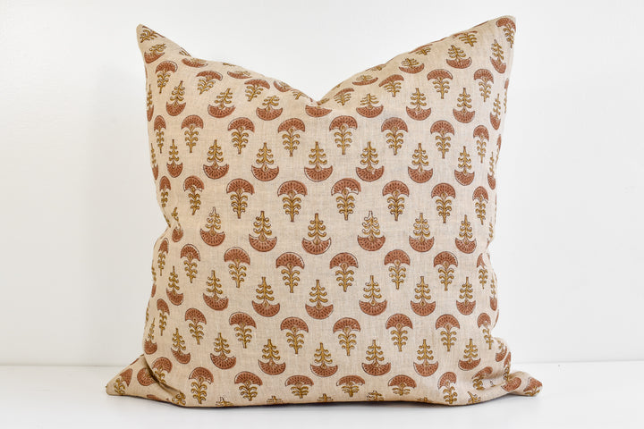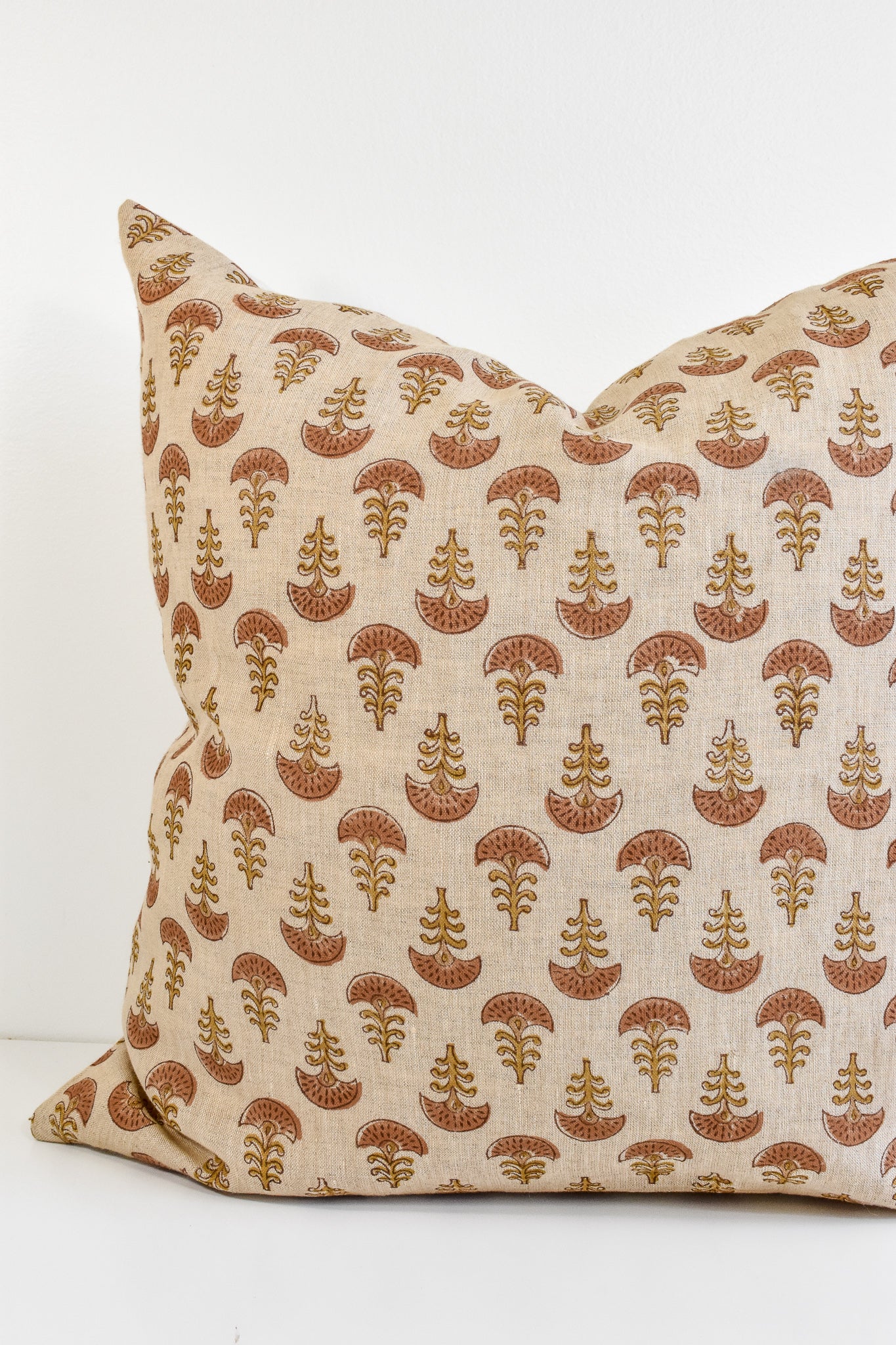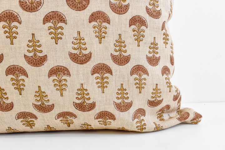 Indian Block Print Pillow Cover - Dusty Rose and Ochre