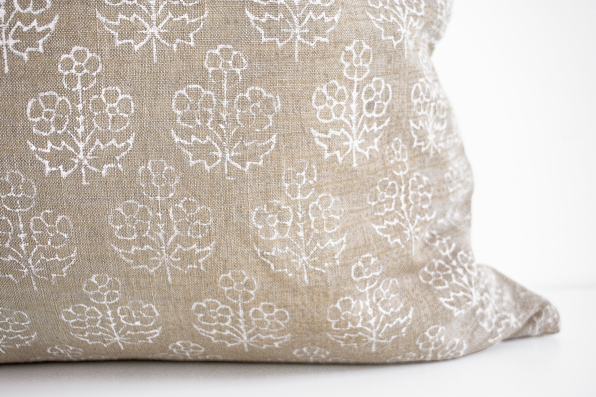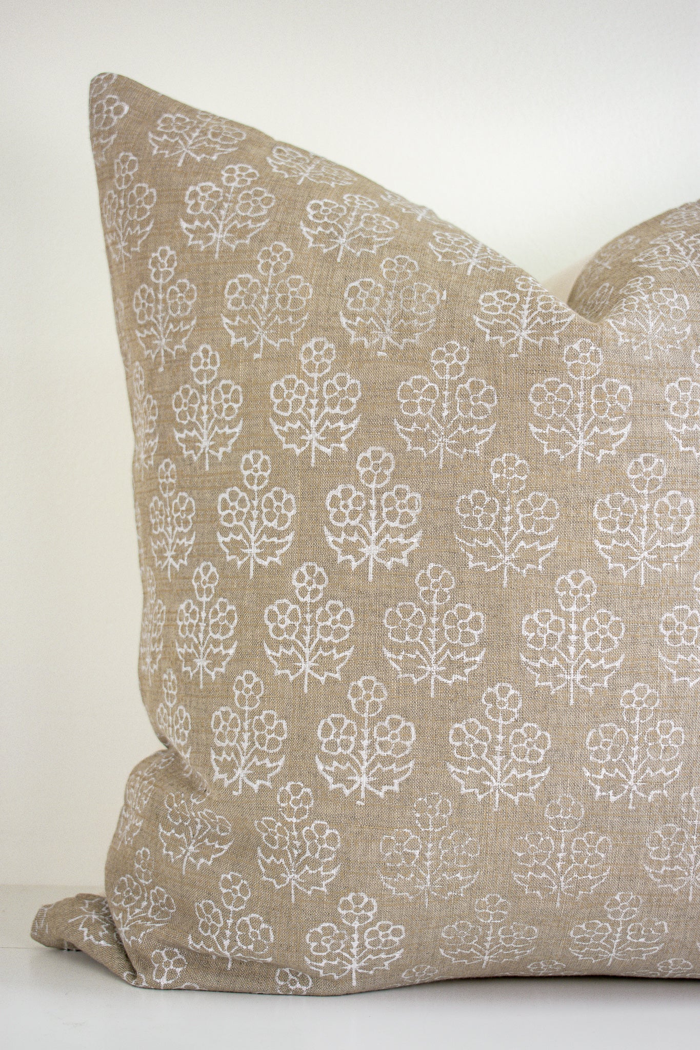 (1) 20" x 20" Indian Block Print Pillow Cover in Taupe, Tan, Ivory