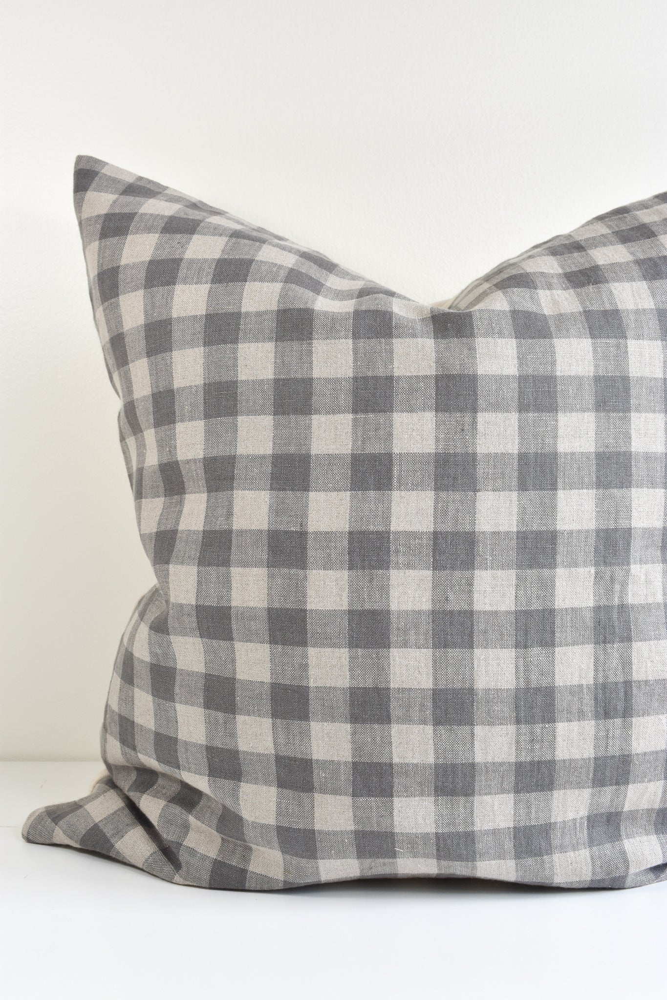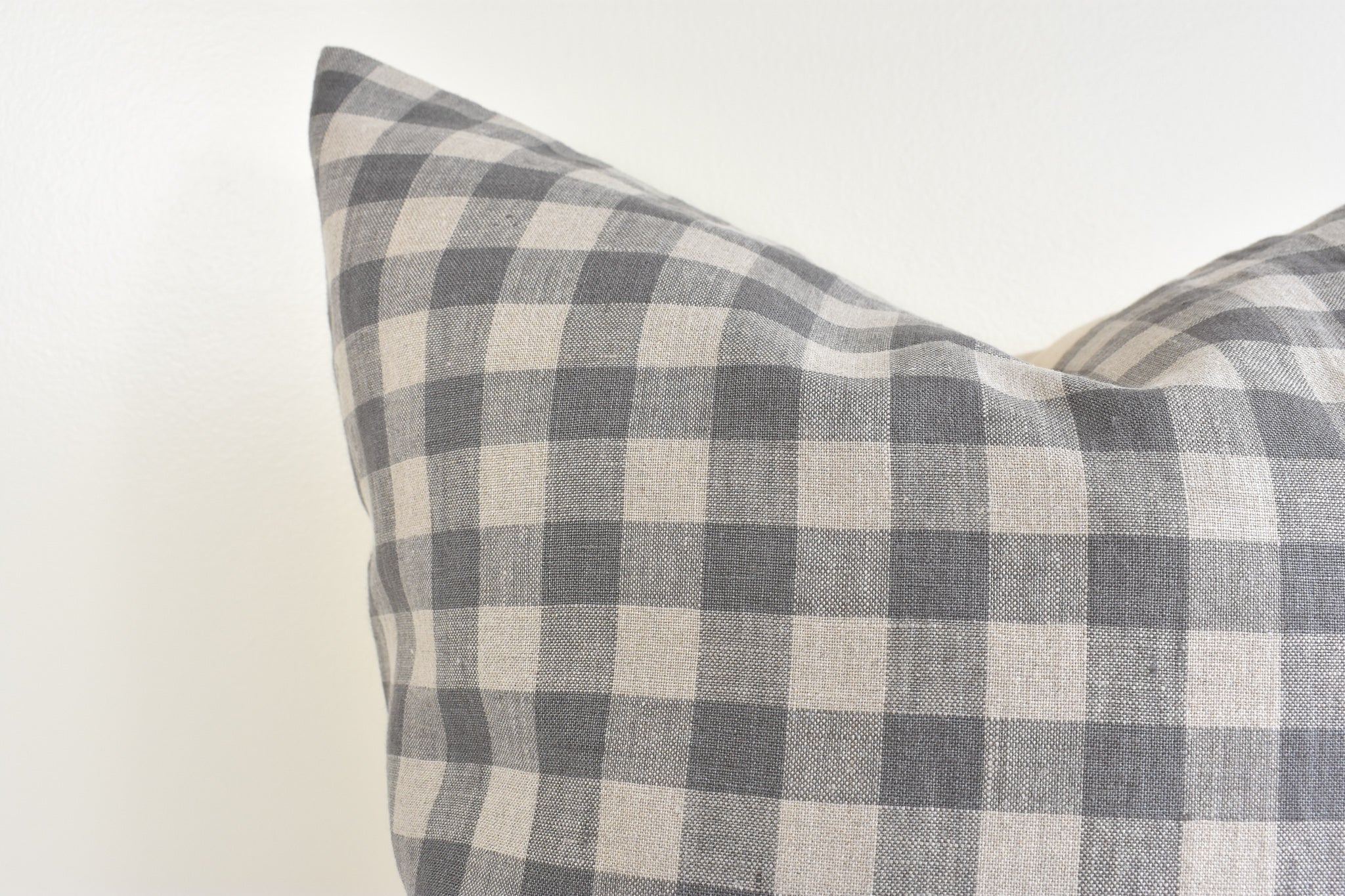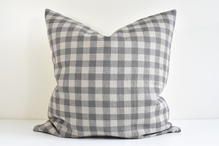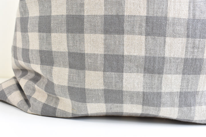 Linen Pillow Cover - Steel Gray and Ivory Gingham