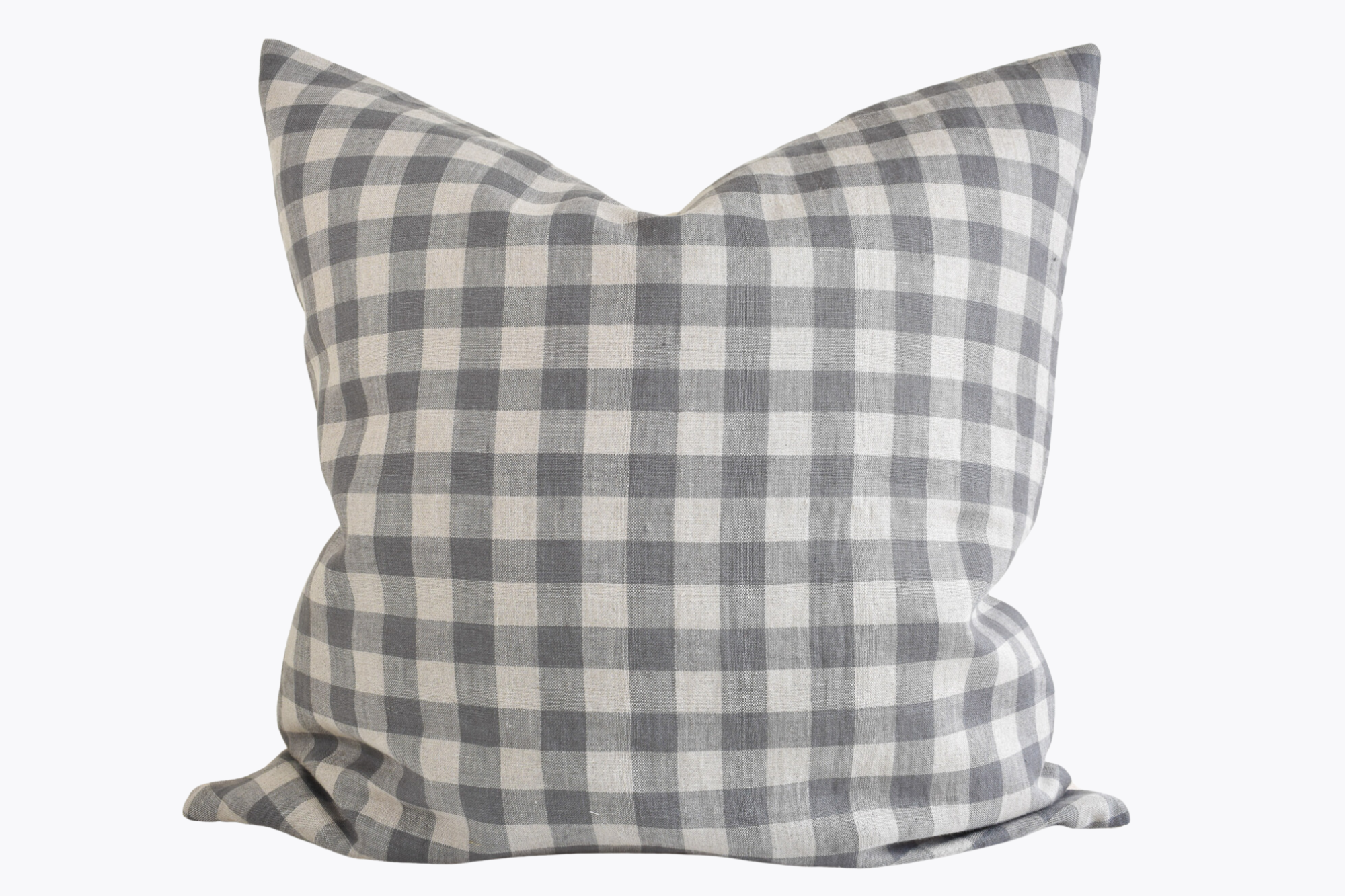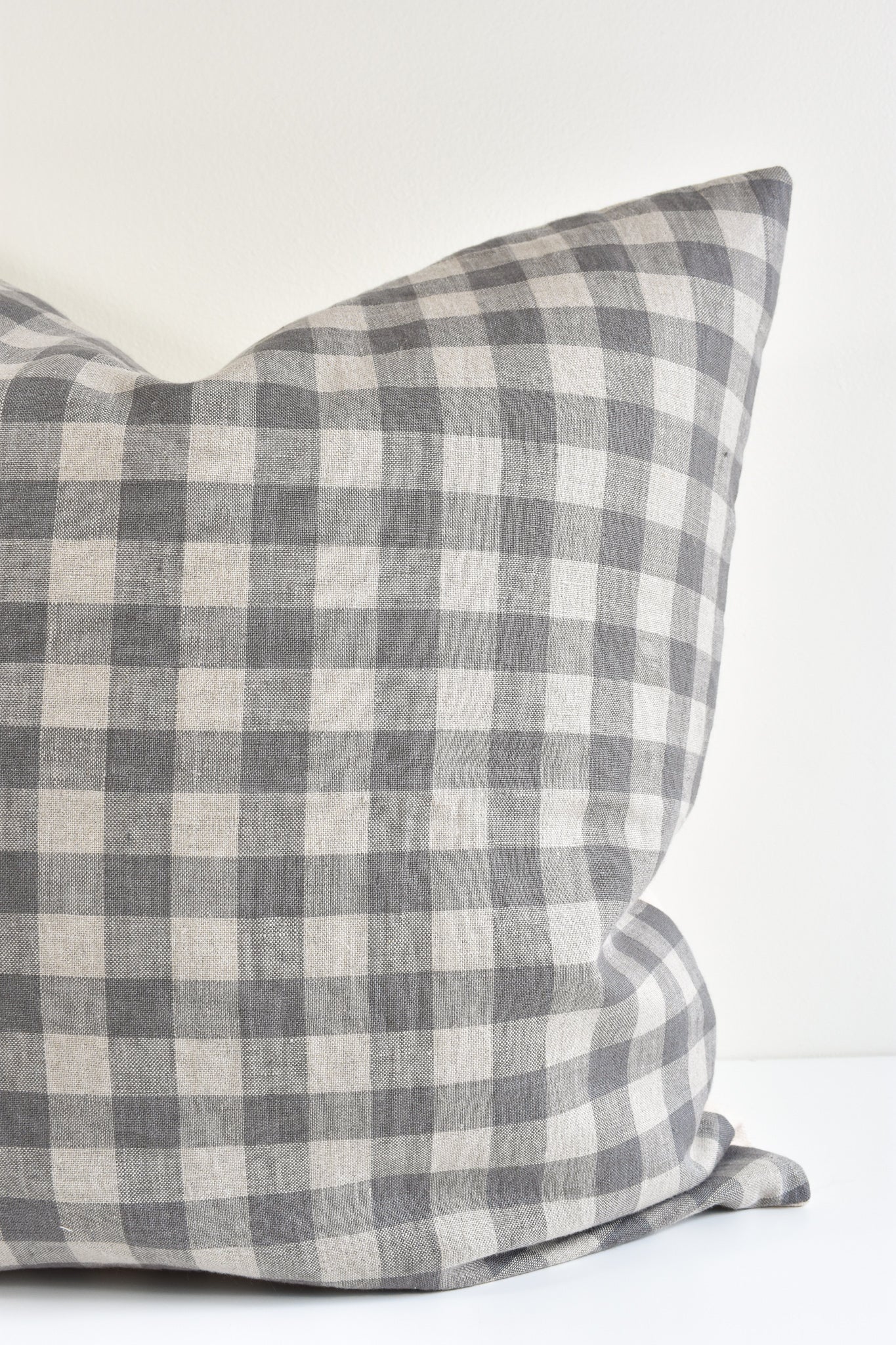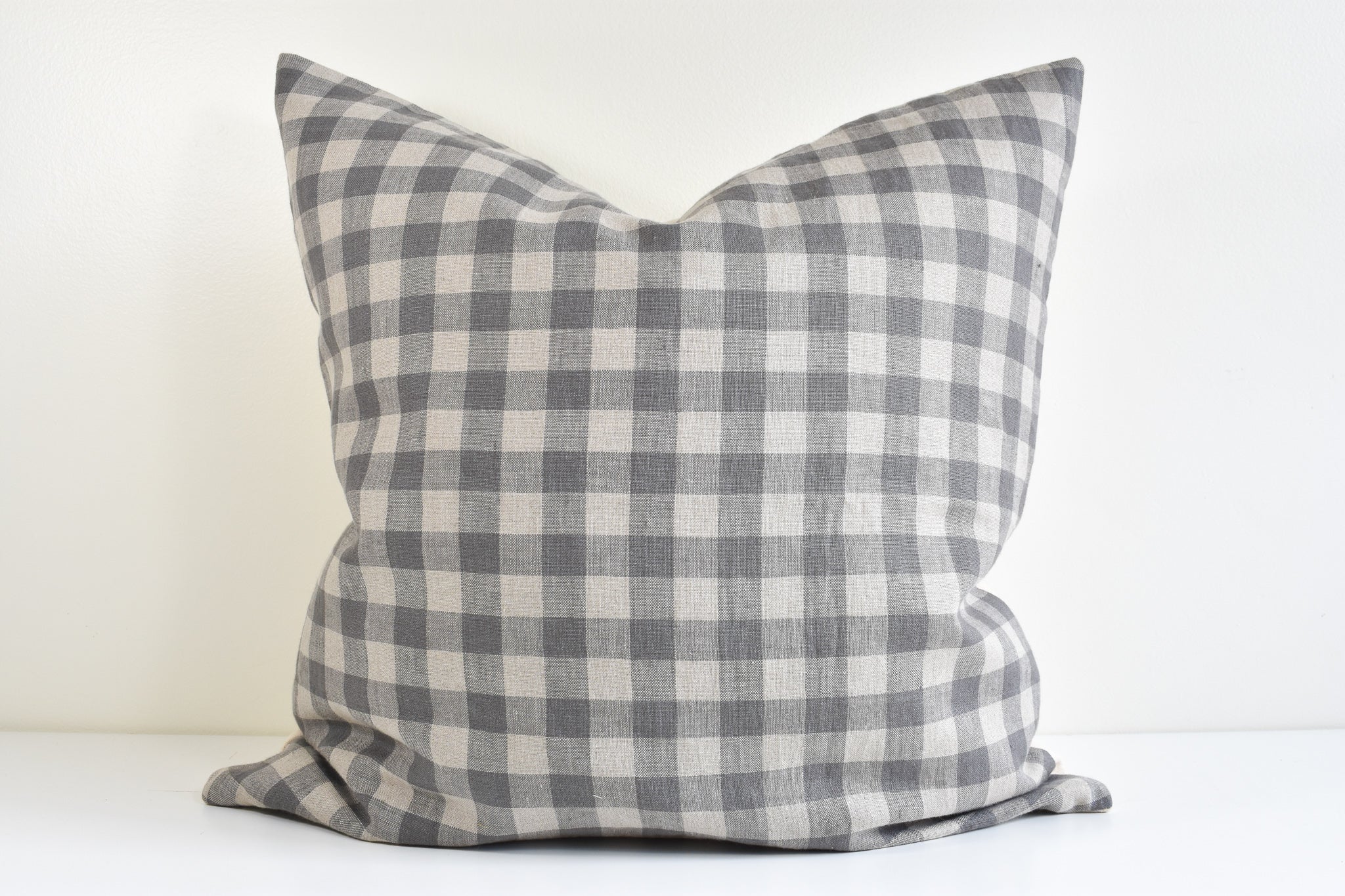 Linen Pillow Cover - Steel Gray and Ivory Gingham