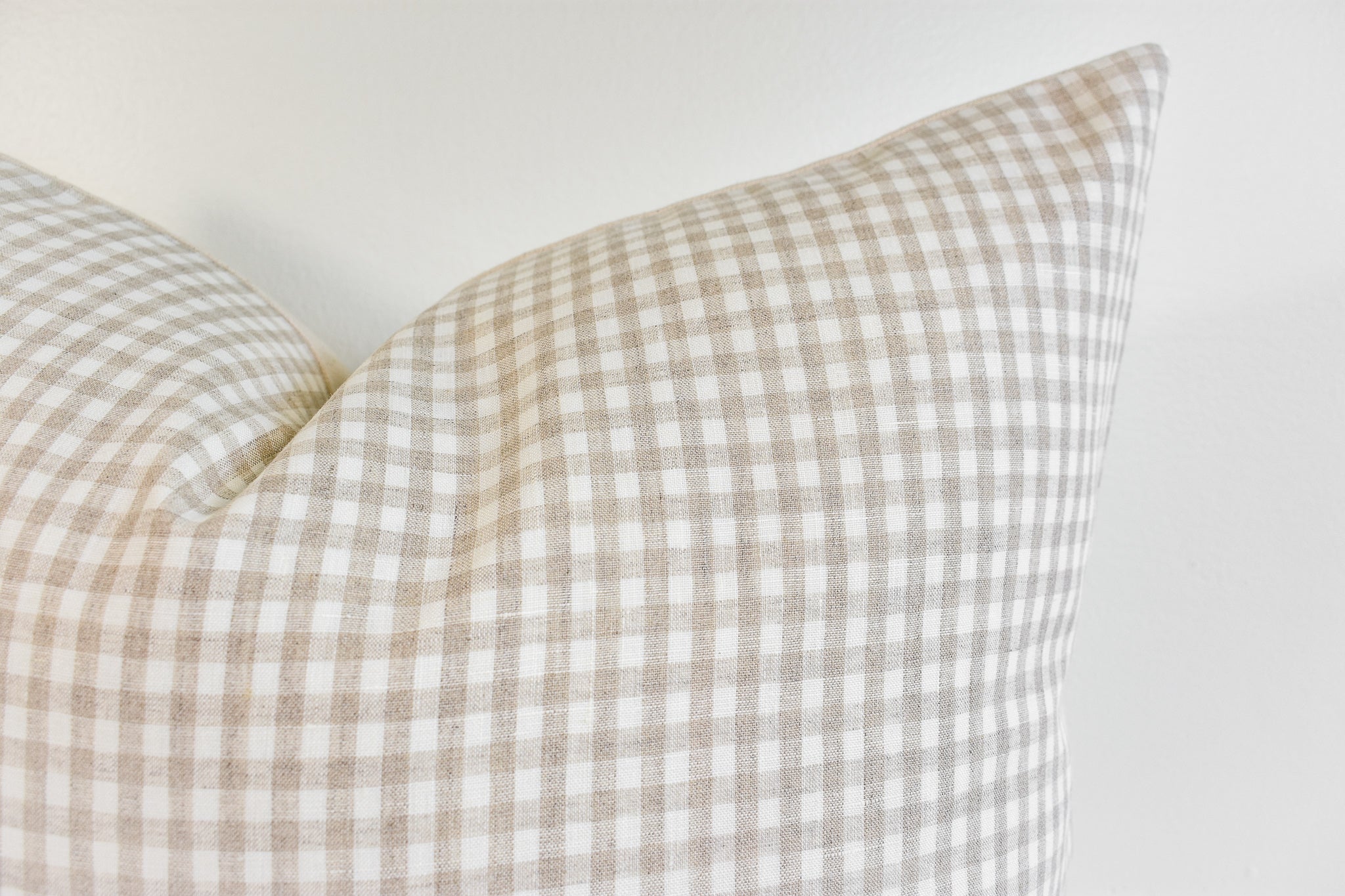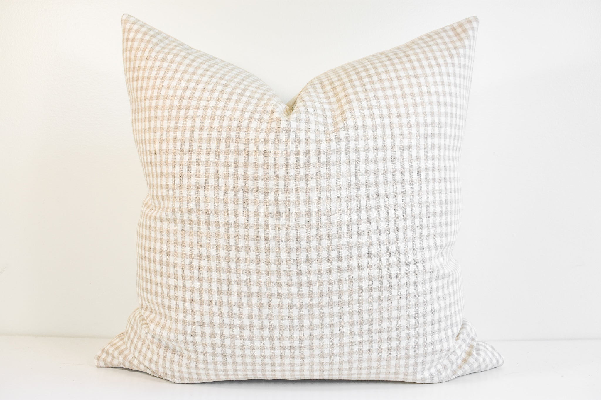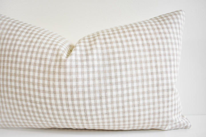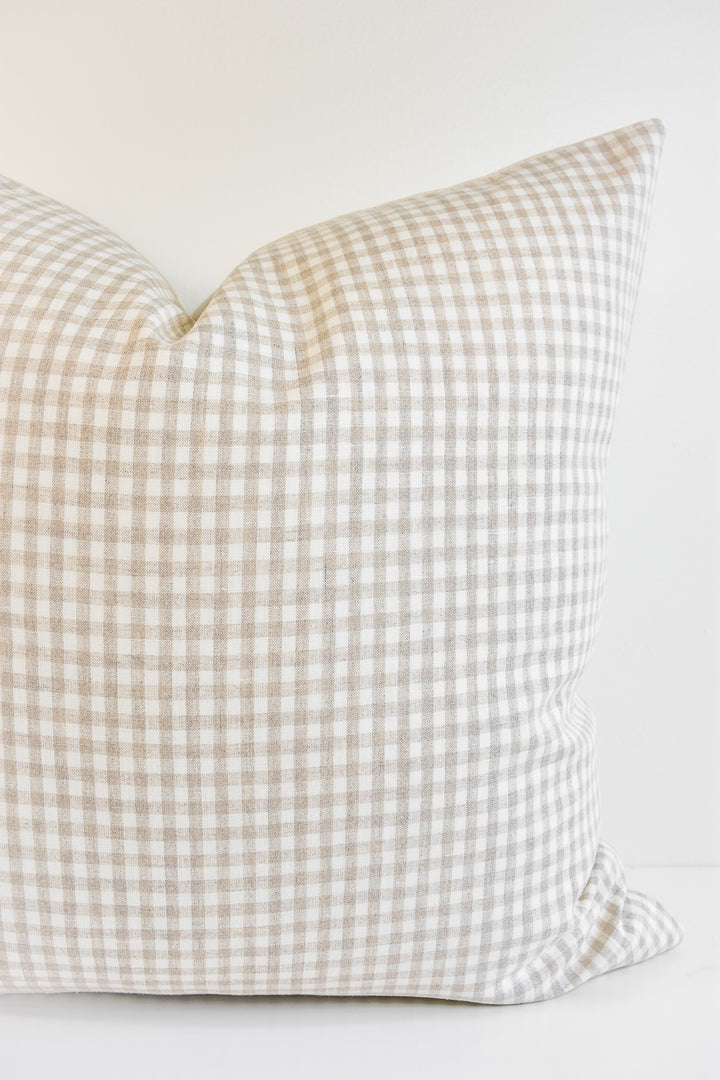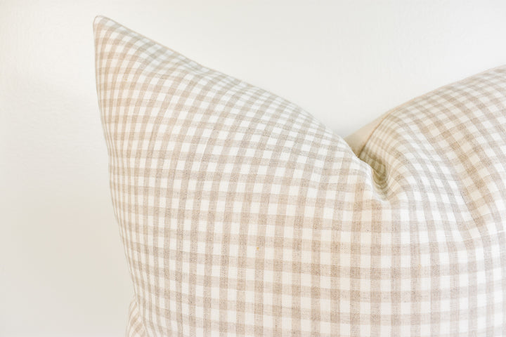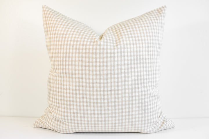 Linen Pillow Cover - Beige and Ivory Mini Gingham