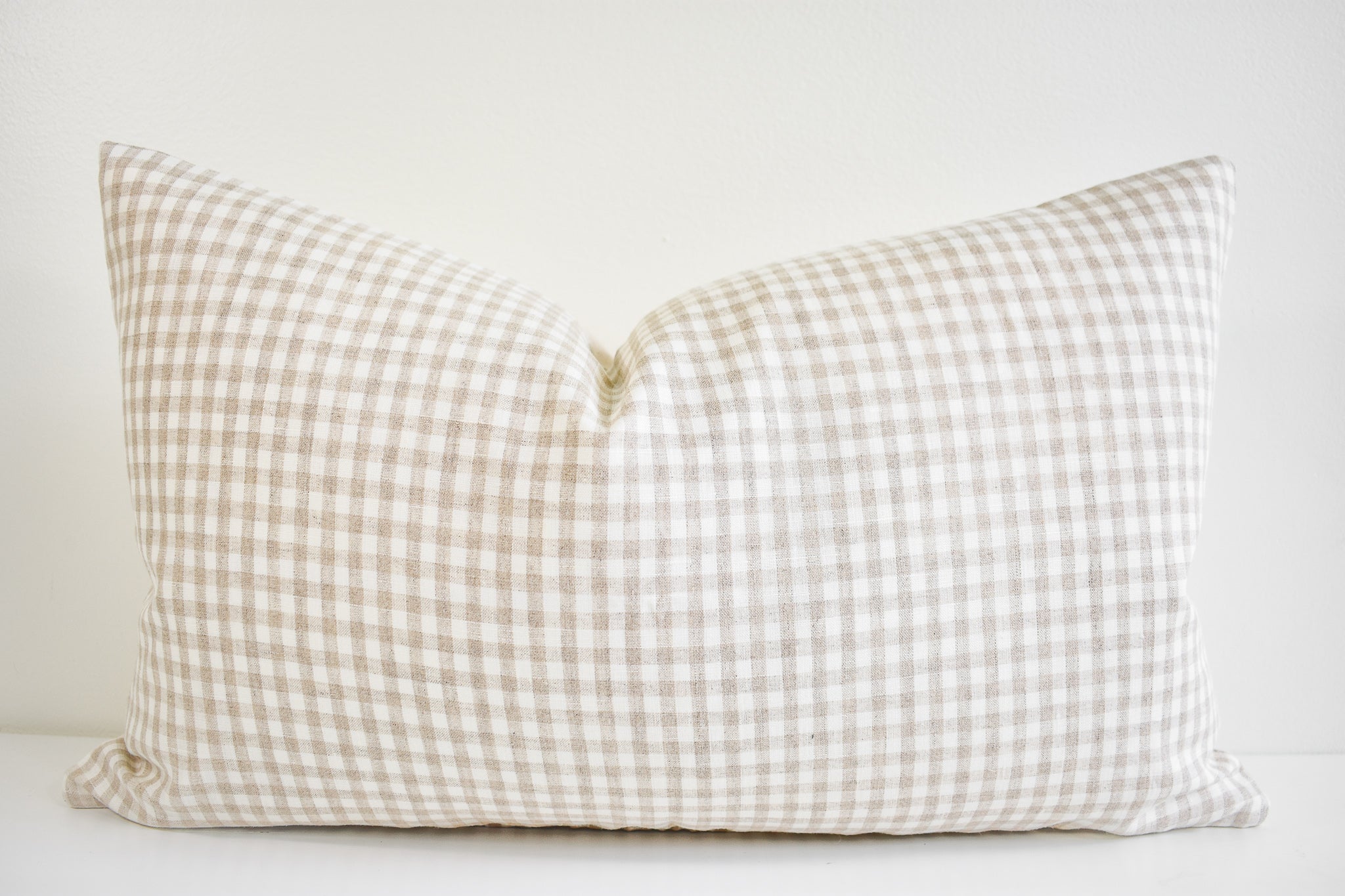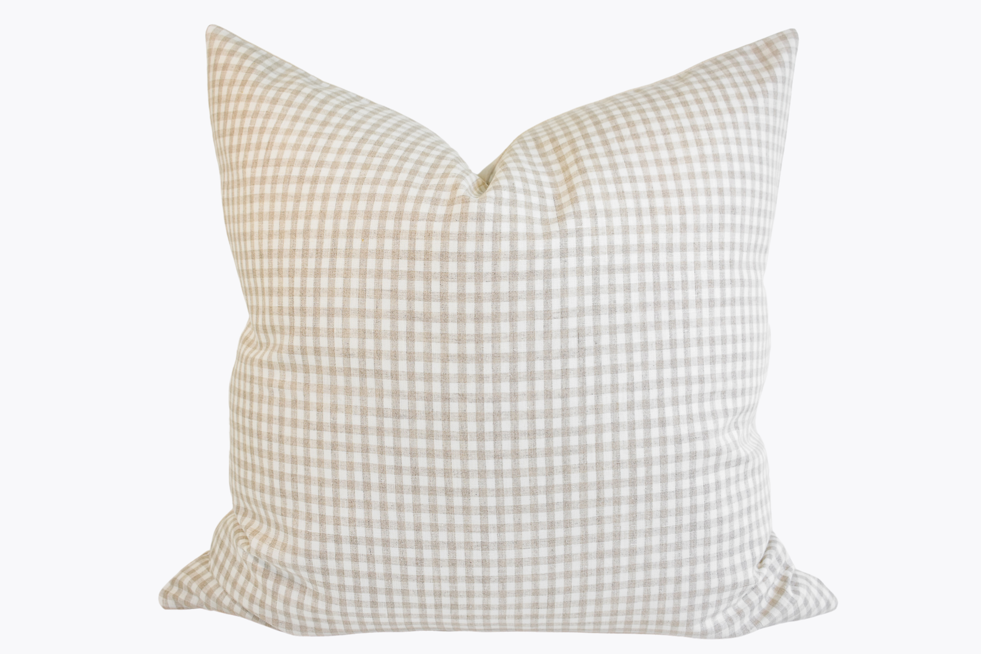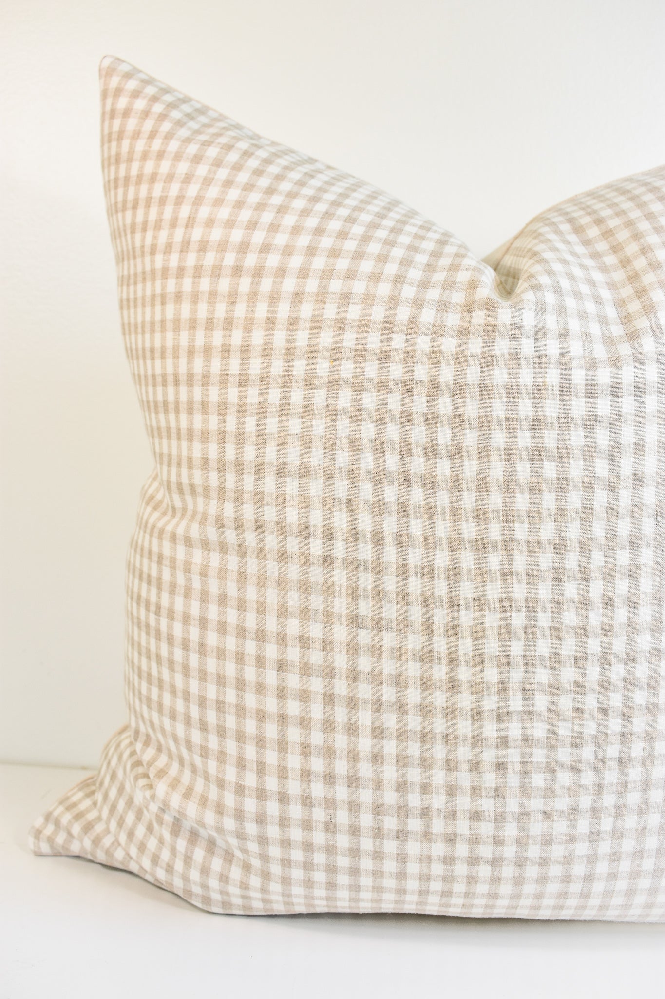 Linen Pillow Cover - Beige and Ivory Mini Gingham
