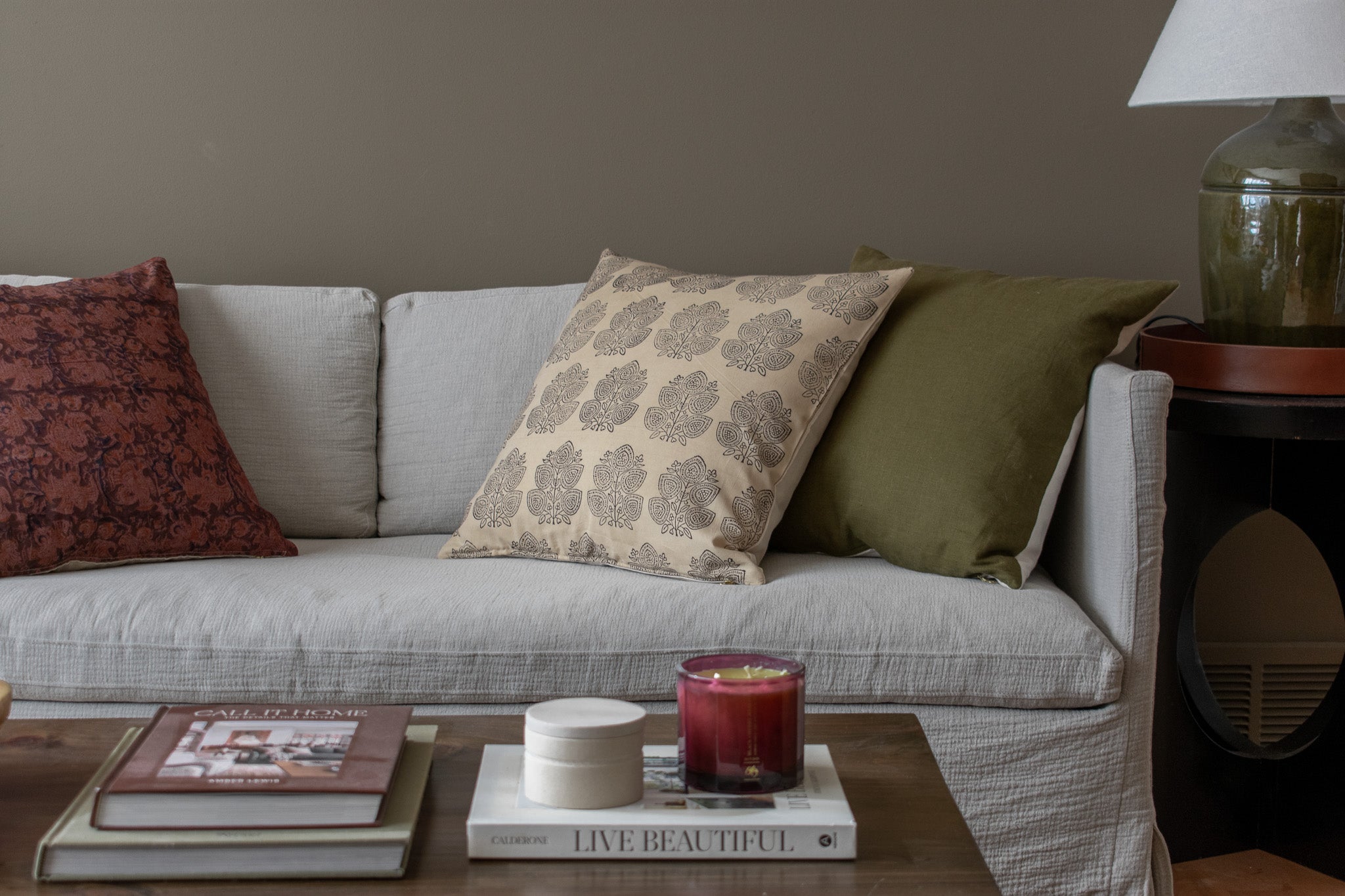 Linen Pillow Cover - Olive Branch
