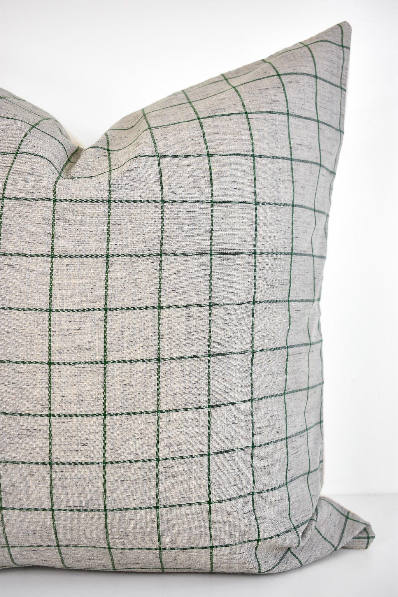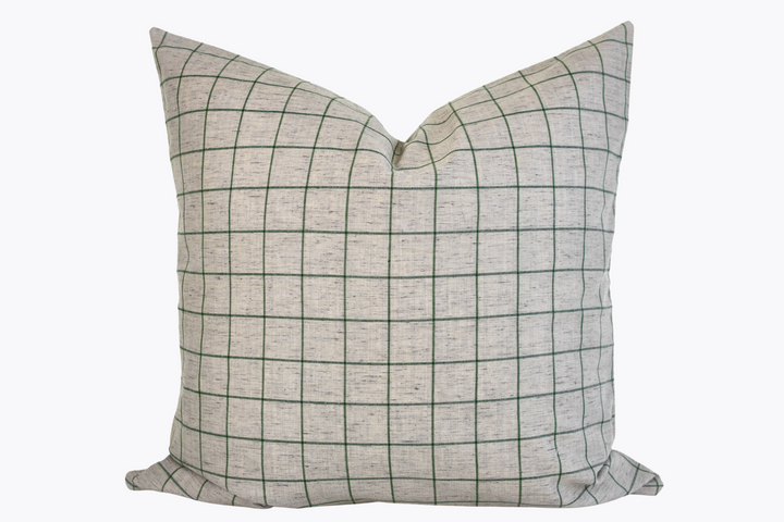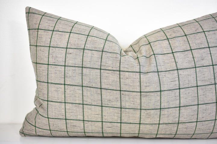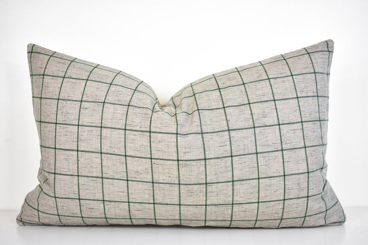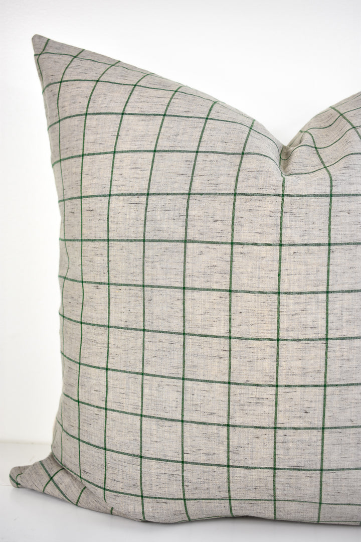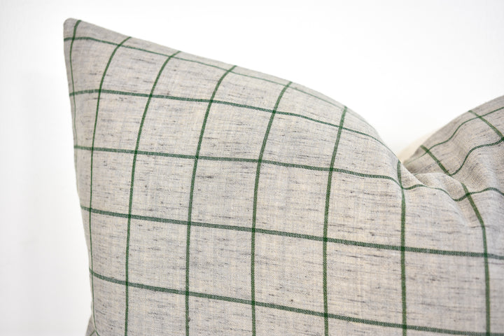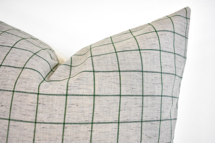 Linen Pillow Cover - Gray and Moss Window Pane
