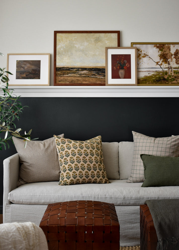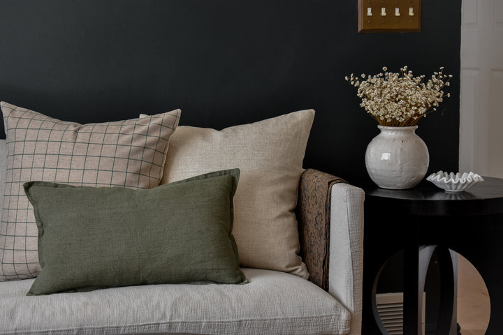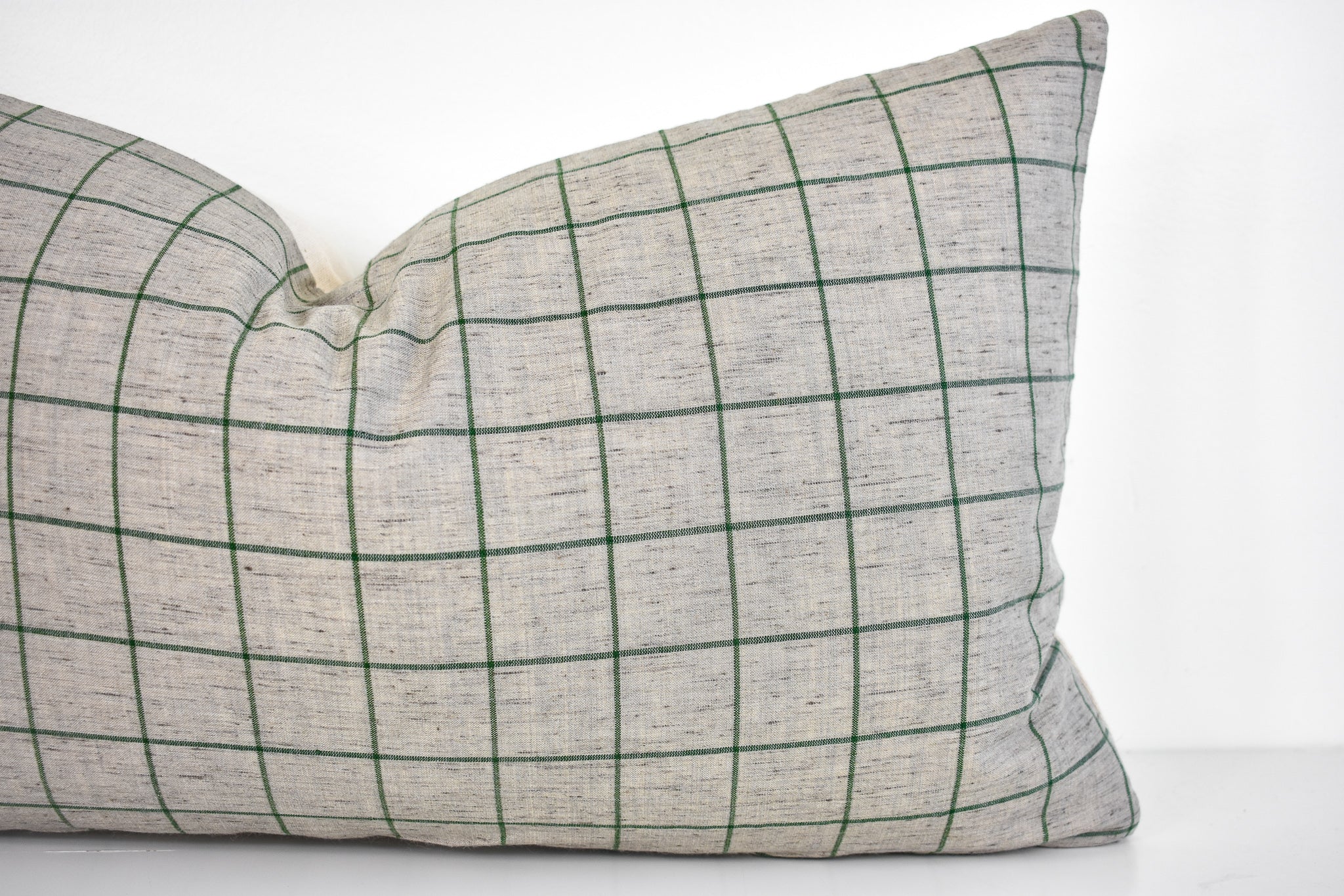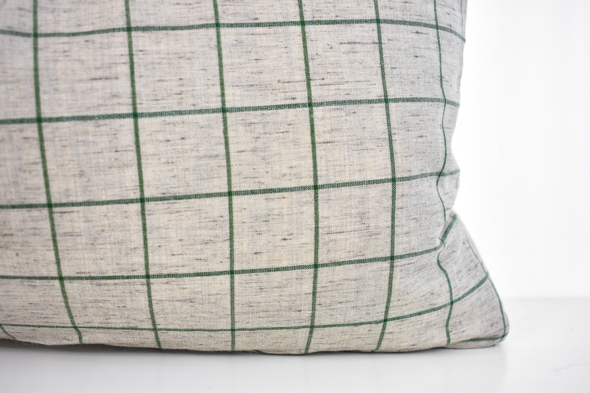Linen Pillow Cover - Gray and Moss Window Pane