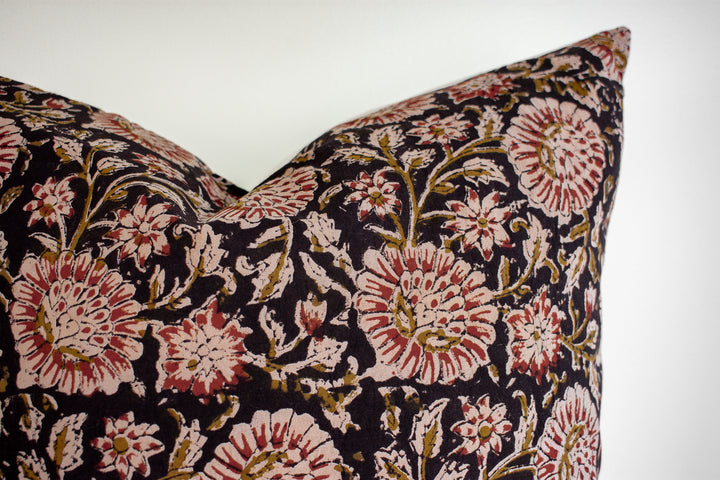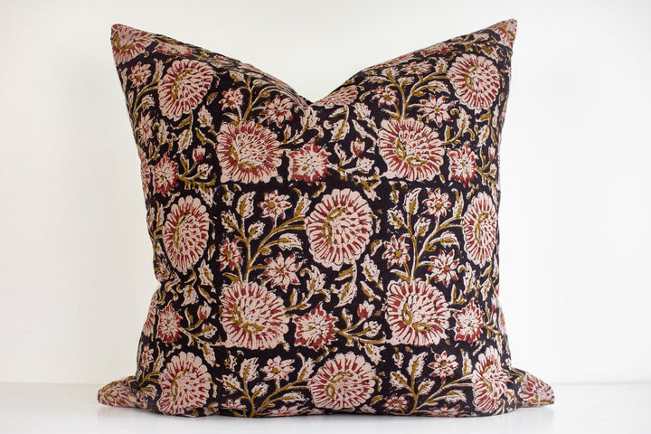 (1) 20" x 20" Indian Block Print Pillow - Black, Gold, Rust, Tan