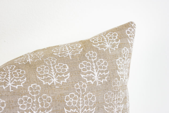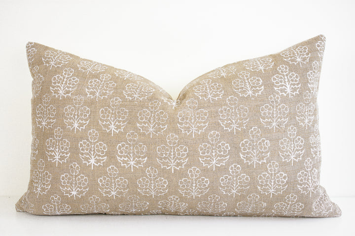 (1) 12" x 20" Indian Block Print Pillow - Taupe, Tan, Ivory