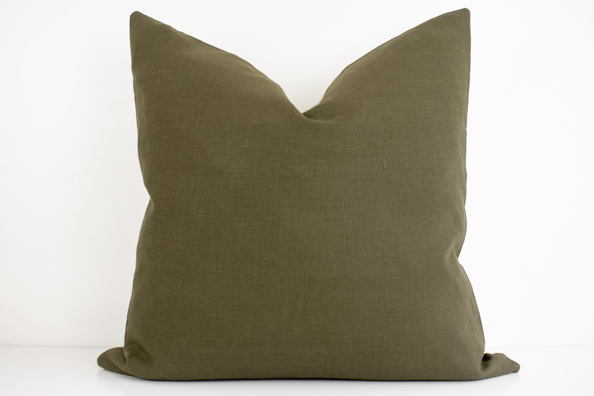 (1) 22” x 22" Designer Linen Pillow - Olive Branch
