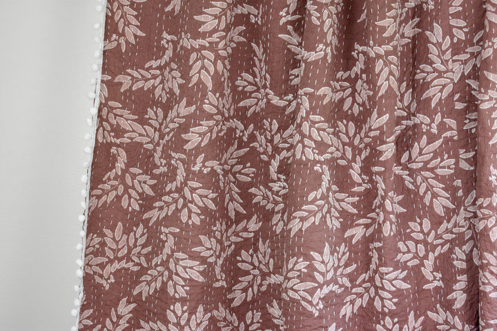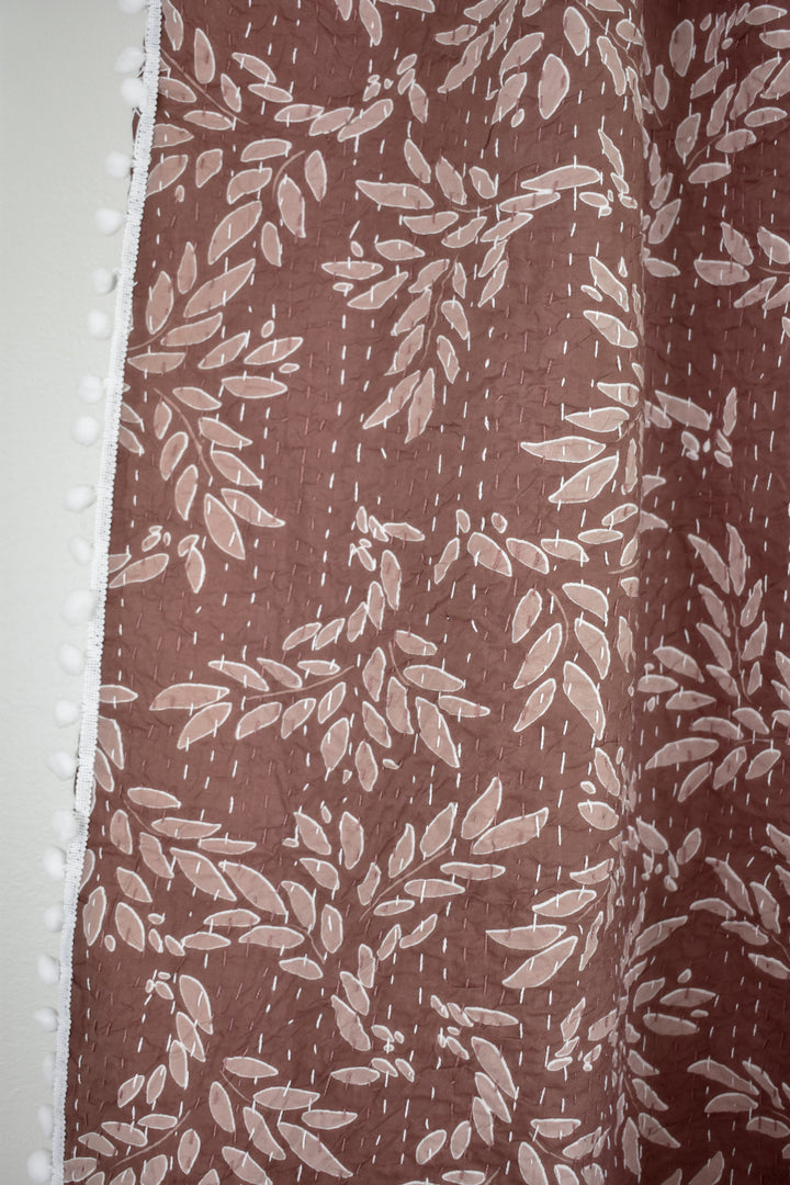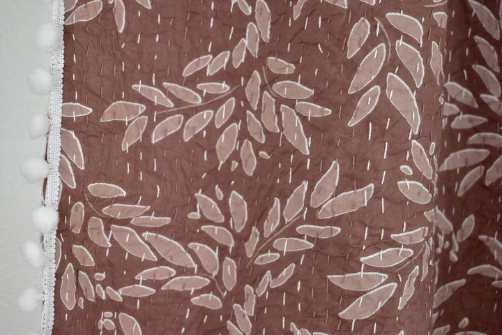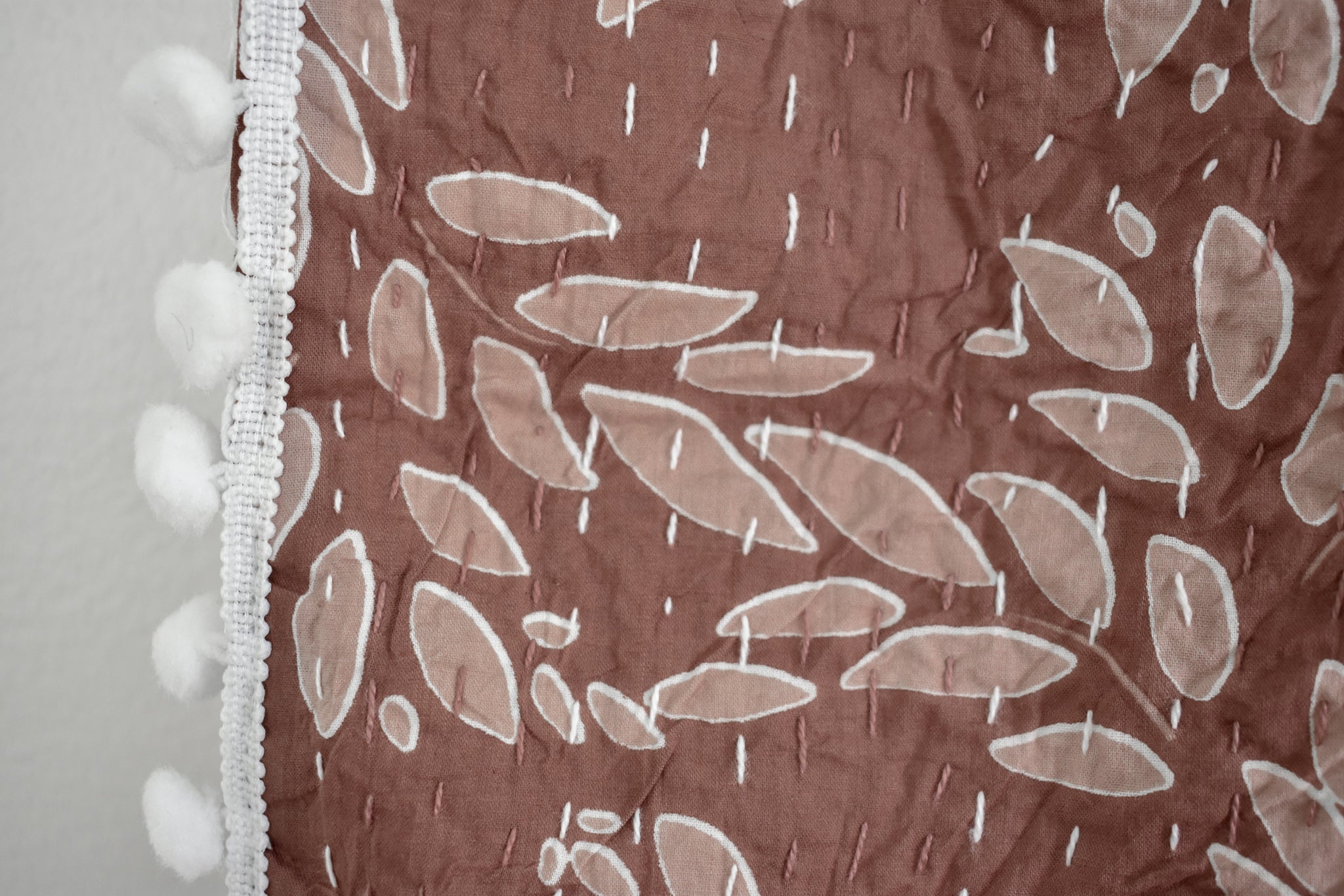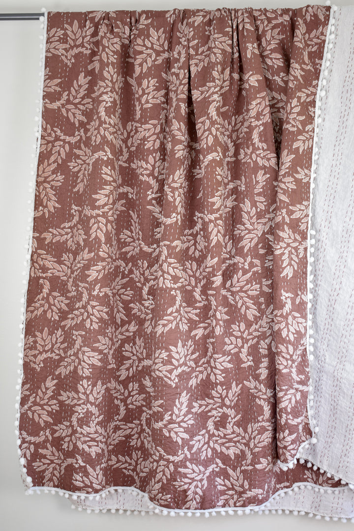Quinn Pom Pom Kantha Quilt in Faded Blush - King/Queen Sized
