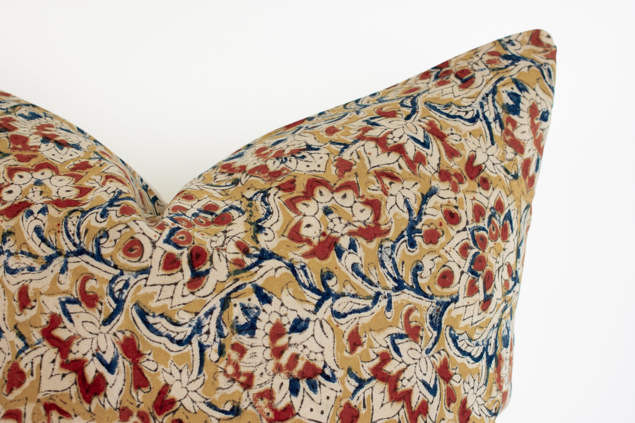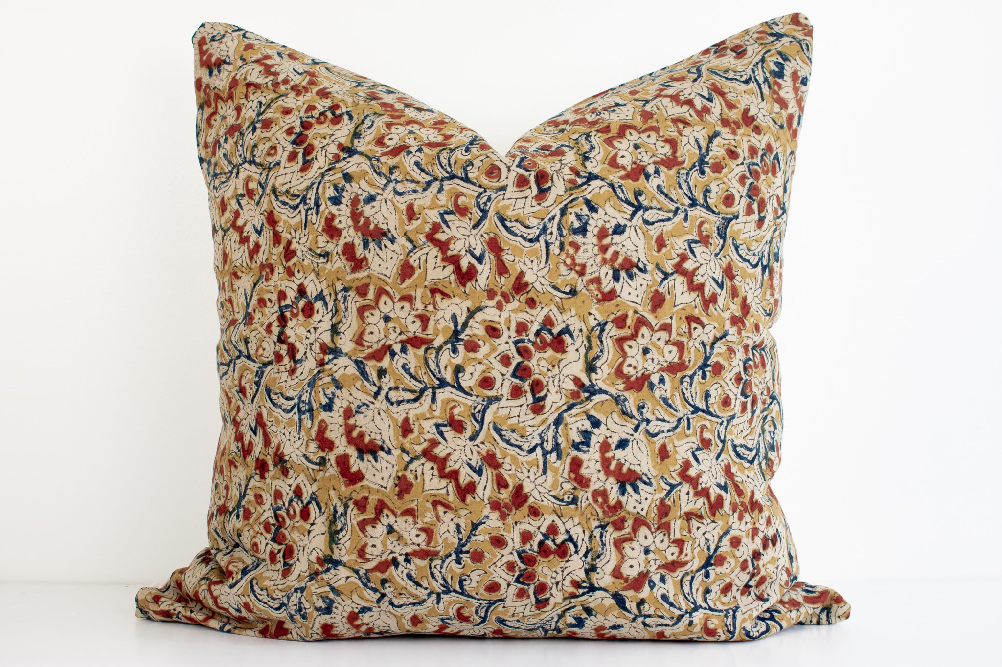 (1) 20" x 20" Indian Block Print Pillow - Ochre, Rust, Indigo