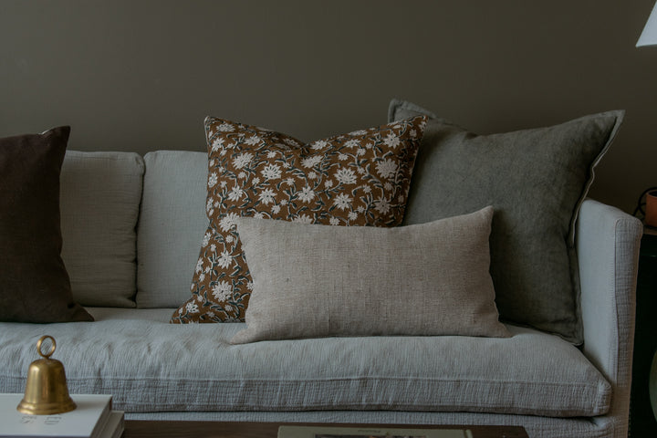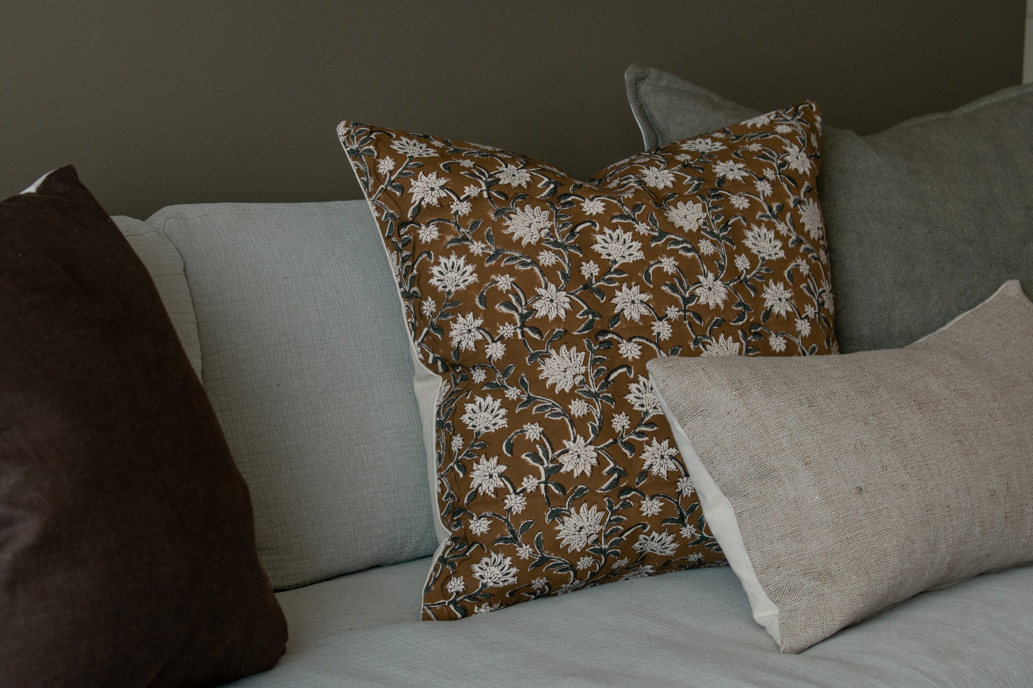 Our Indian Block Print Pillows are a true labor of love. We designed each one and had them hand block printed by our talented artisans on luxuriously soft, 100% natural linen. Their rich colors and intricate details elevate any space and add a gorgeous cultural dimension to any room!