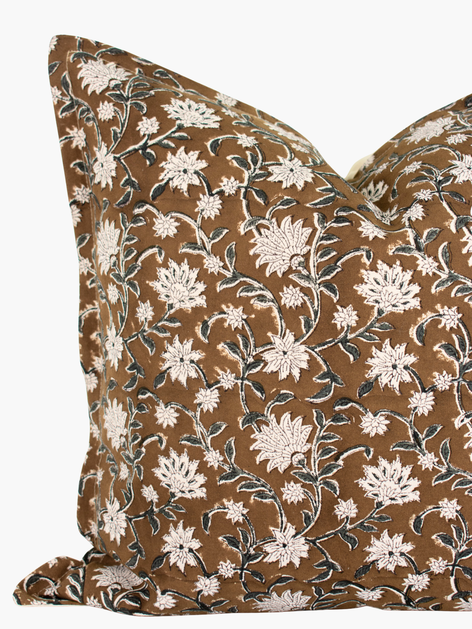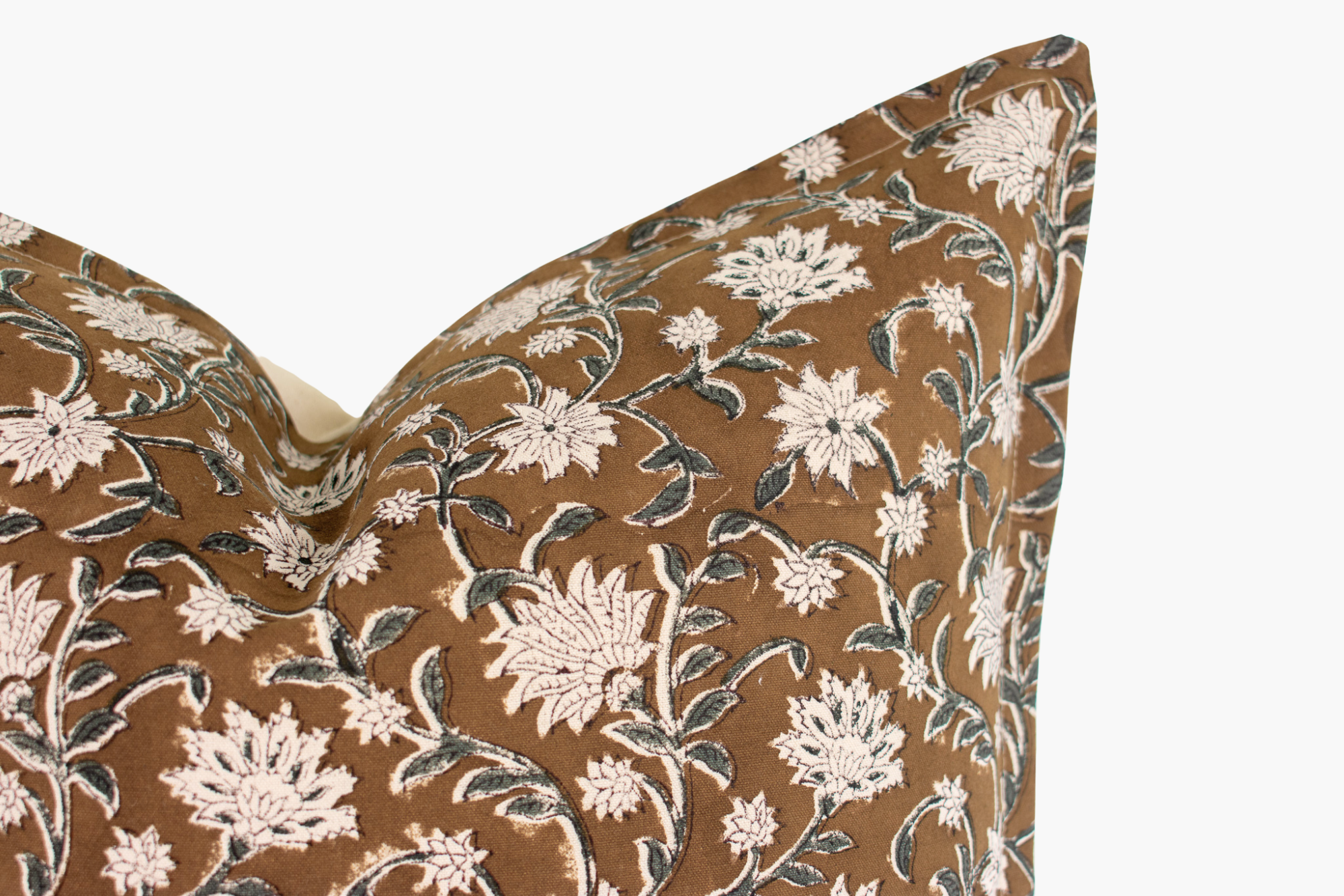Carla Indian Block Print Pillow Cover - Tan, Sage, Natural