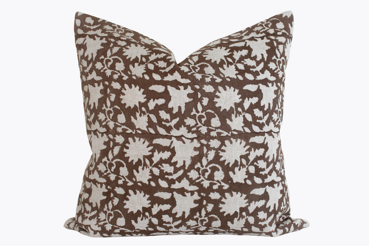 (1) 20" x 20" Indian Block Print Pillow Cover - Chocolate Brown and Natural