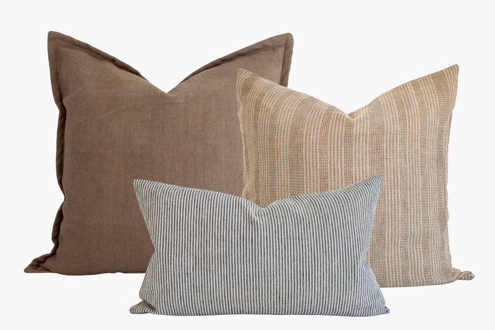 (1) 20" x 20" Striped Sashiko Pillow Cover - Tan