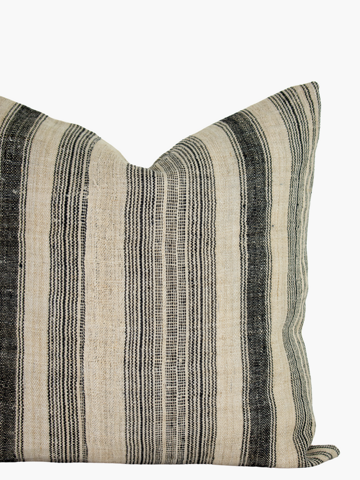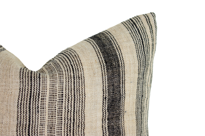 Hmong Vintage Hemp Pillow Cover - Natural and Charcoal
