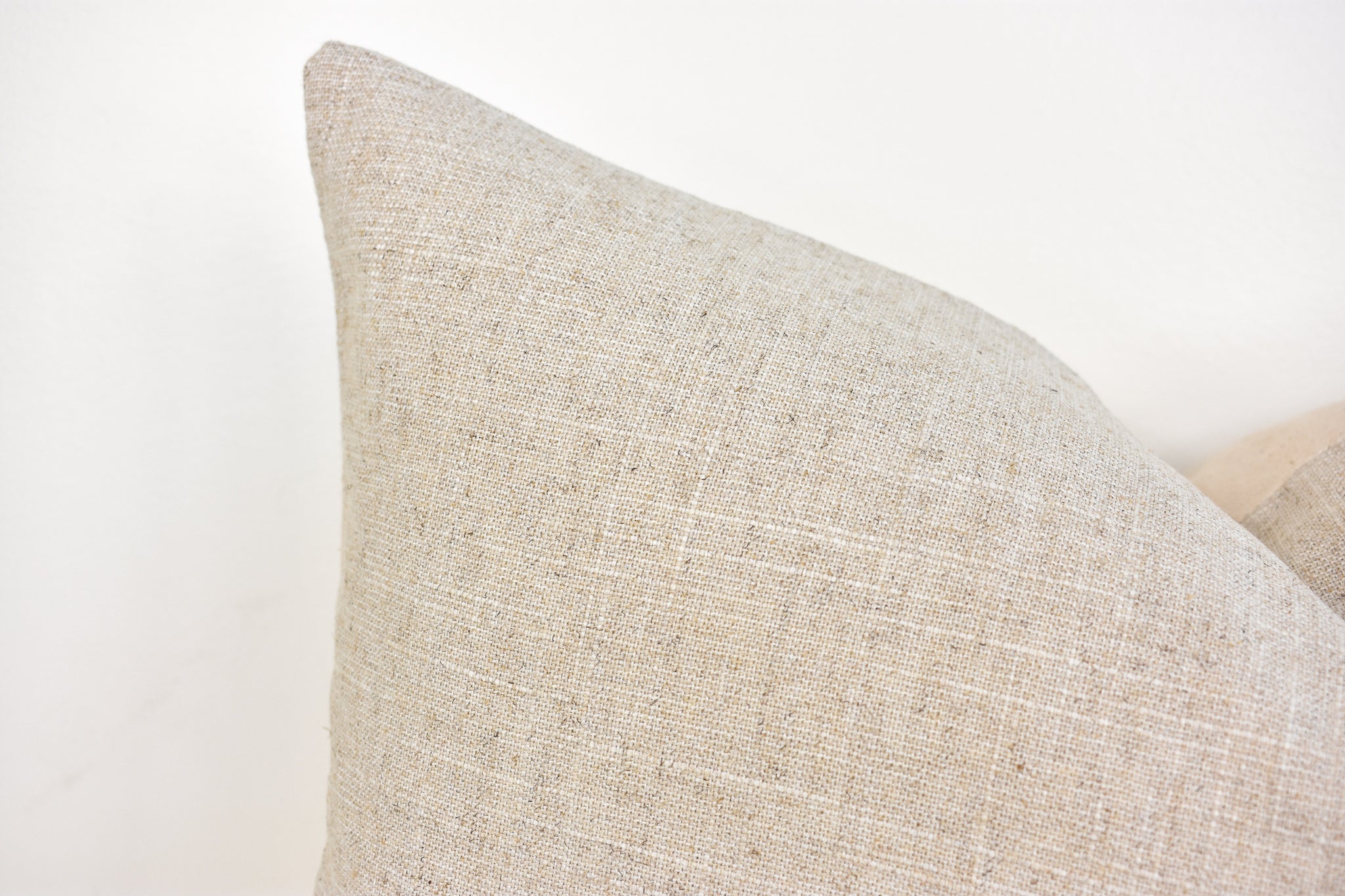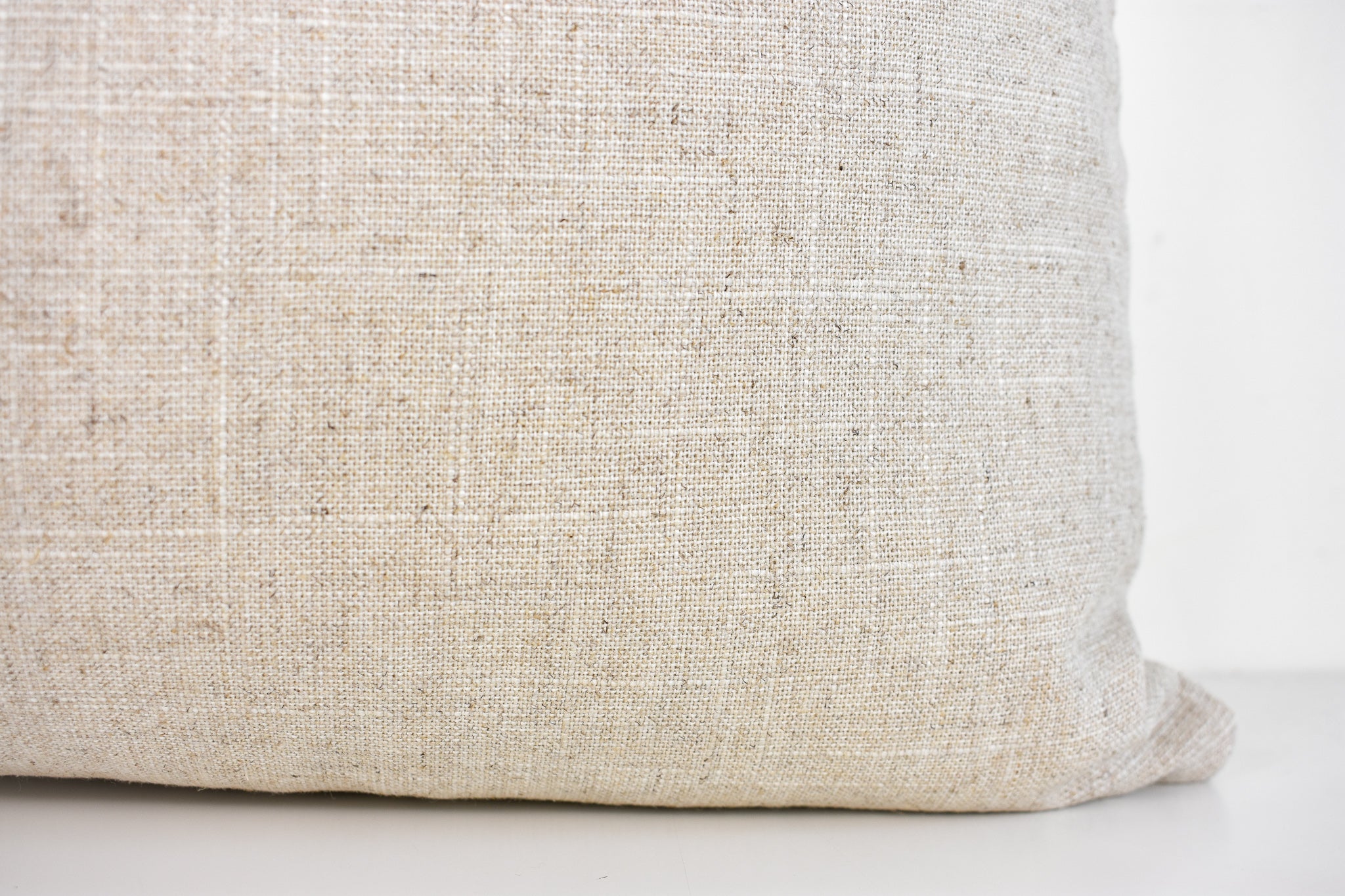 This pillow is crafted from a beautiful, soft, natural colored hemp fabric. We traveled to Thailand and hand picked each of these gorgeous fabrics to create a collection that is both unique and cohesive, so putting together a combo is effortless. By going straight to the source, we cut out middleman costs, so you get the high end designer look without the high end designer price.
