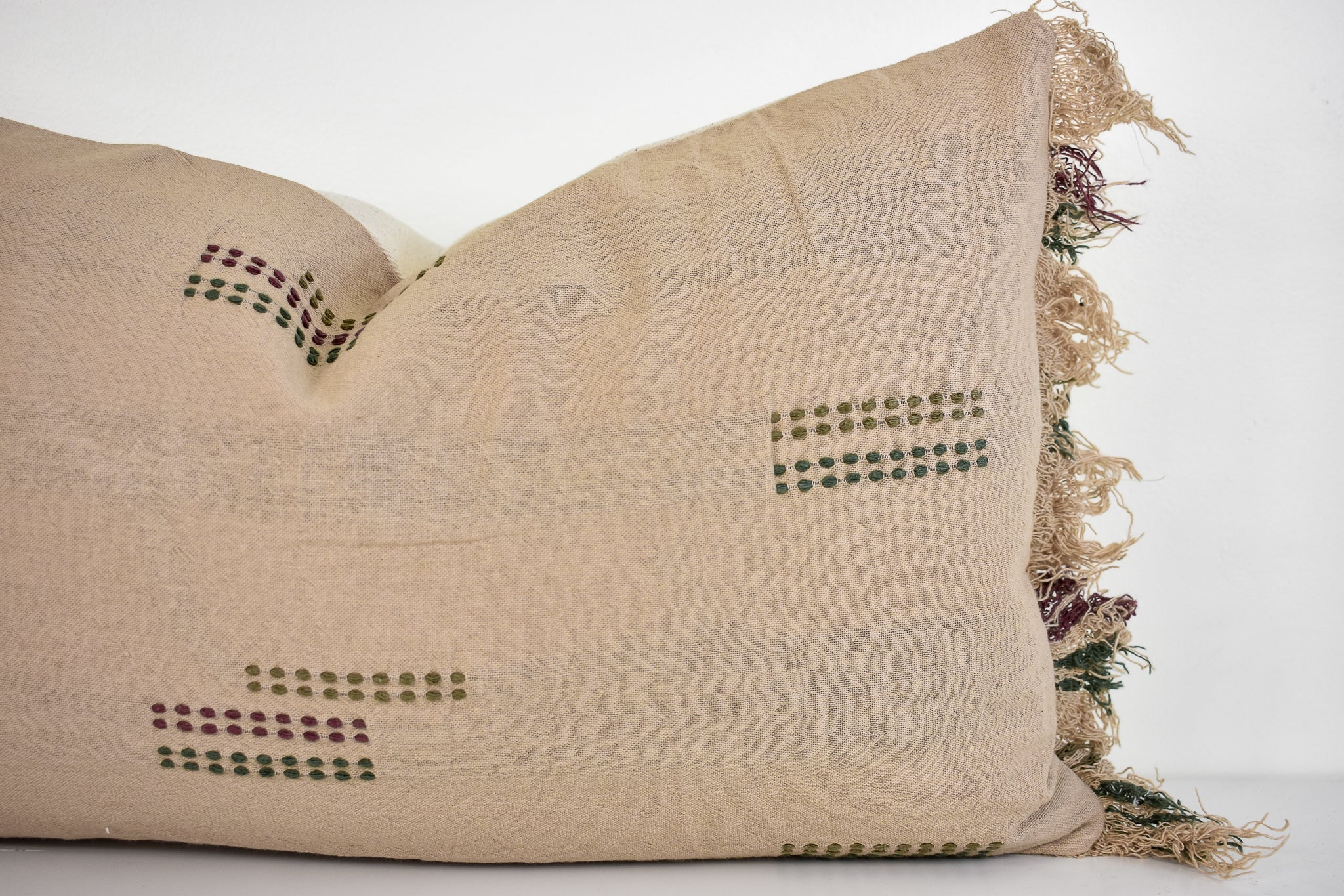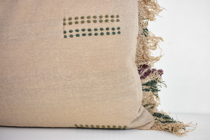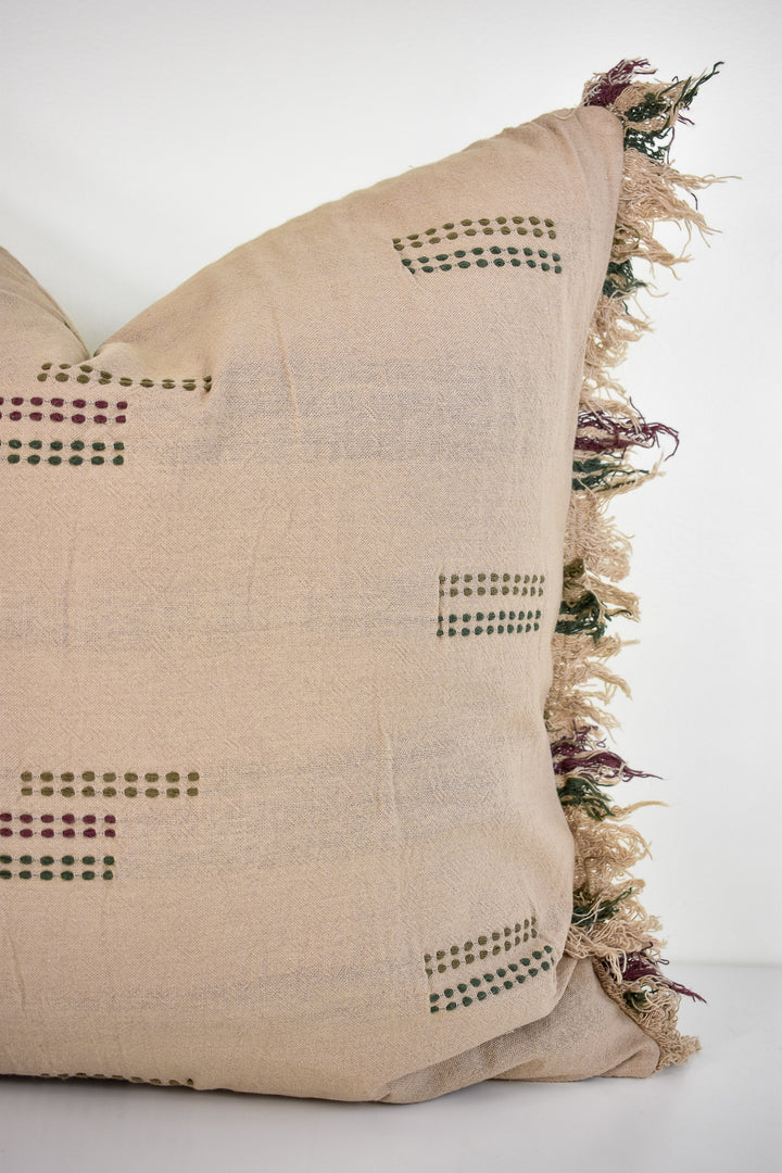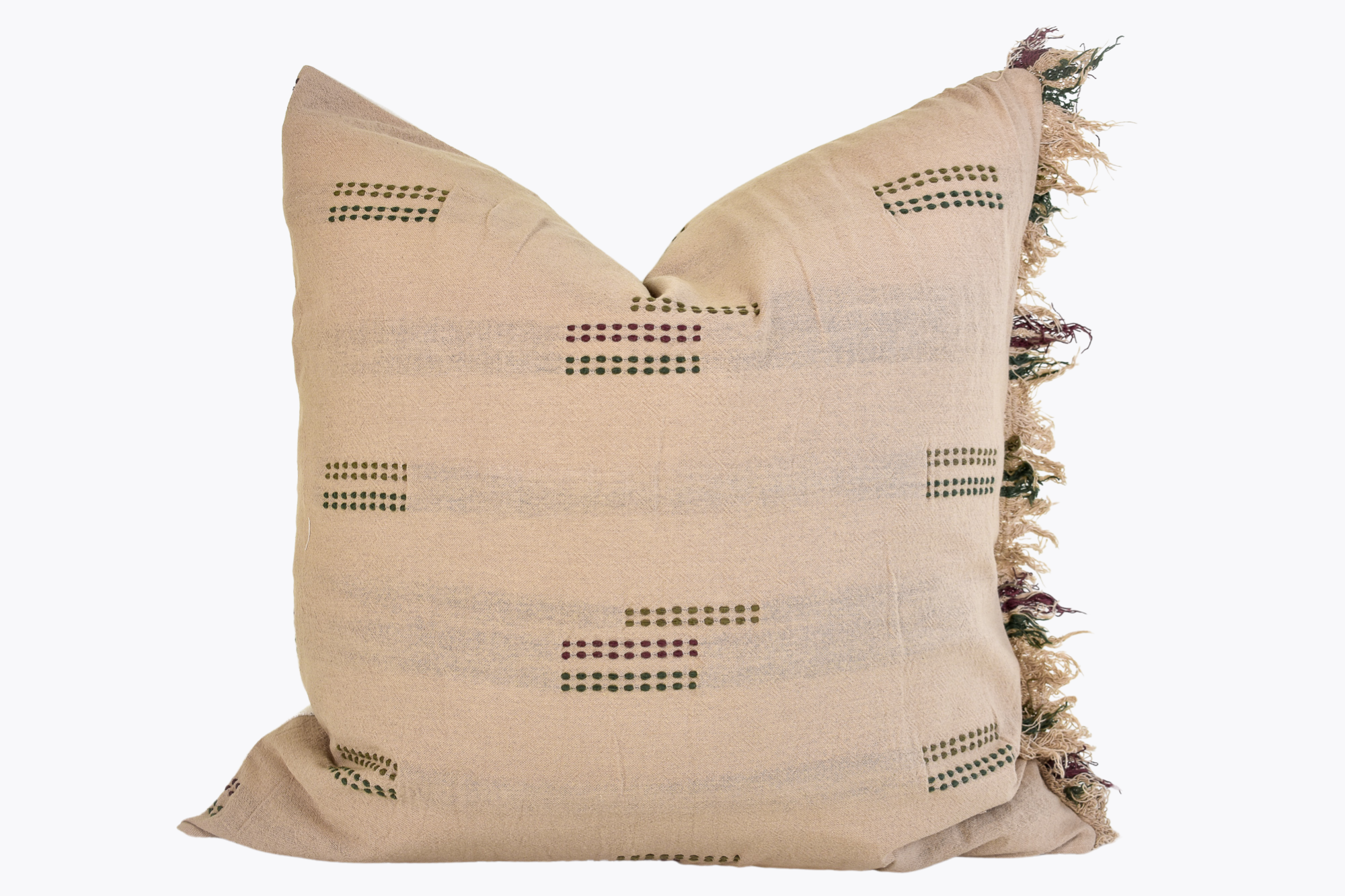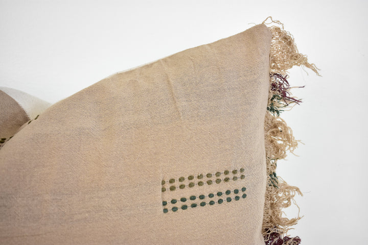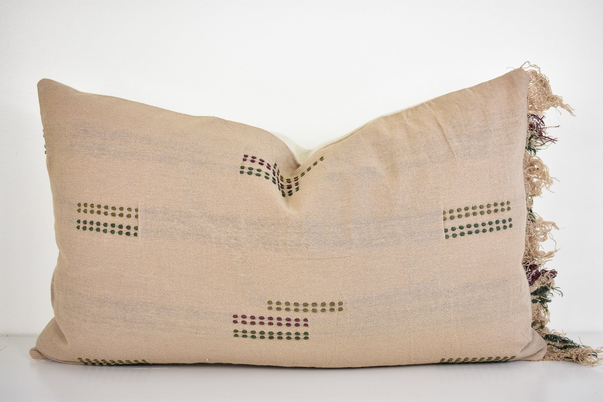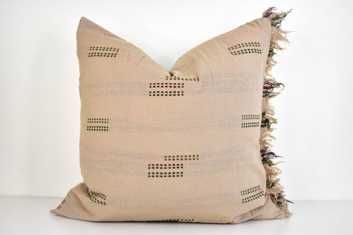 Hmong Organic Woven Fringe Pillow Cover - Tan