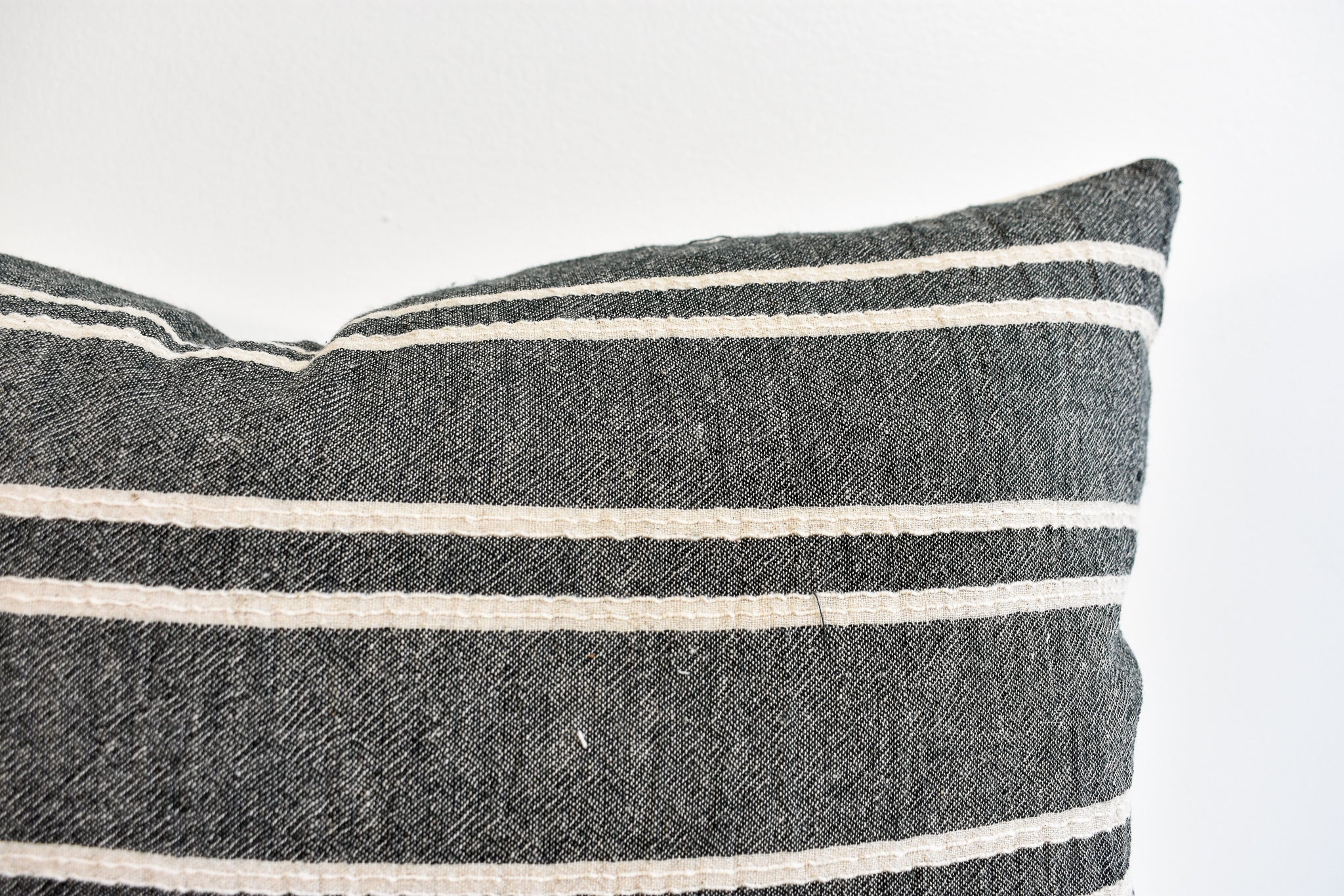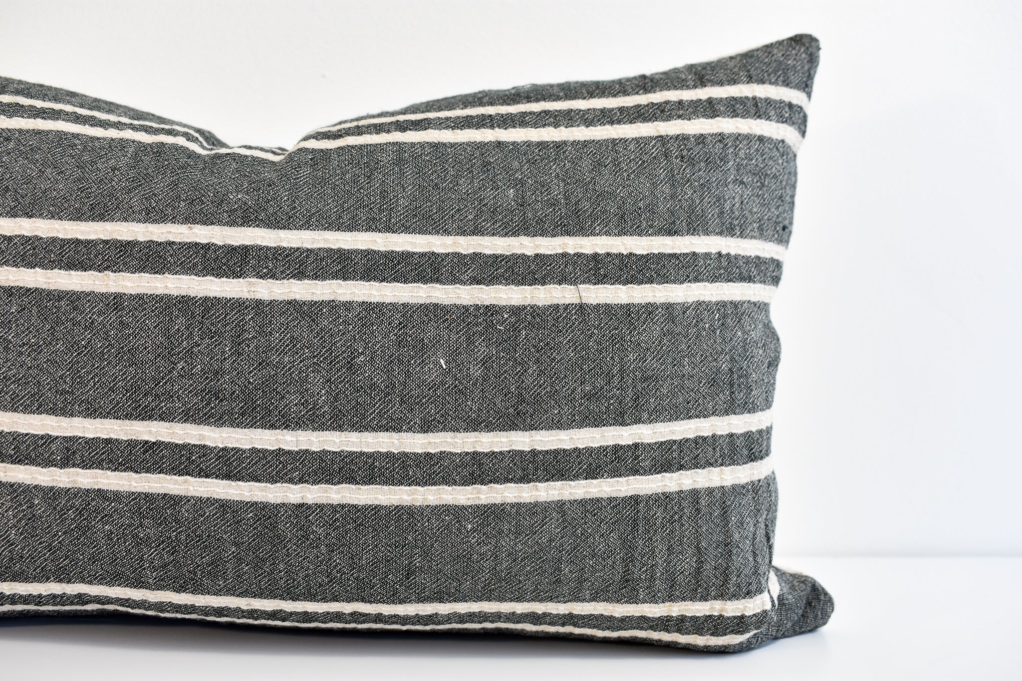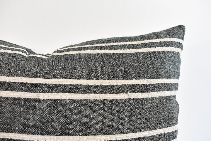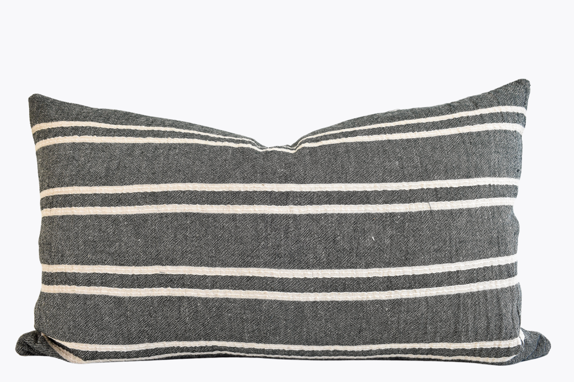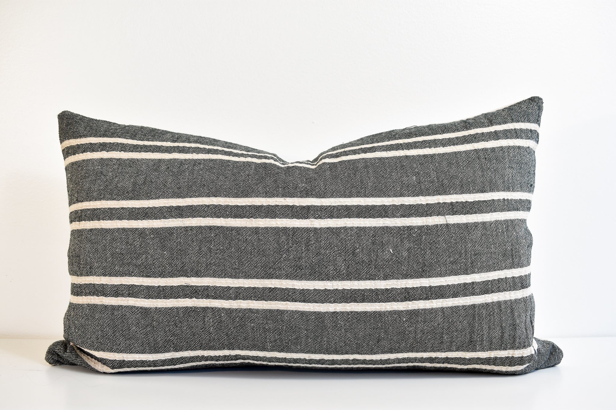 Hmong Organic Woven Lumbar Pillow Cover - Charcoal Stripe