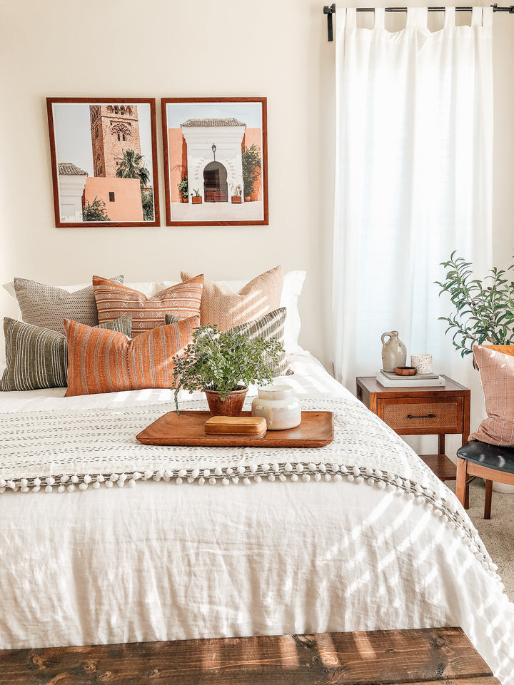 This pillow is crafted from beautifully woven vintage Hmong fabric from the Hmong hill tribe in Northern Thailand. We traveled to Thailand and hand picked each of these gorgeous fabrics to create a collection that is both unique and cohesive, so putting together a combo is effortless. By going straight to the source, we cut out middleman costs, so you get the high end designer look without the high end designer price.