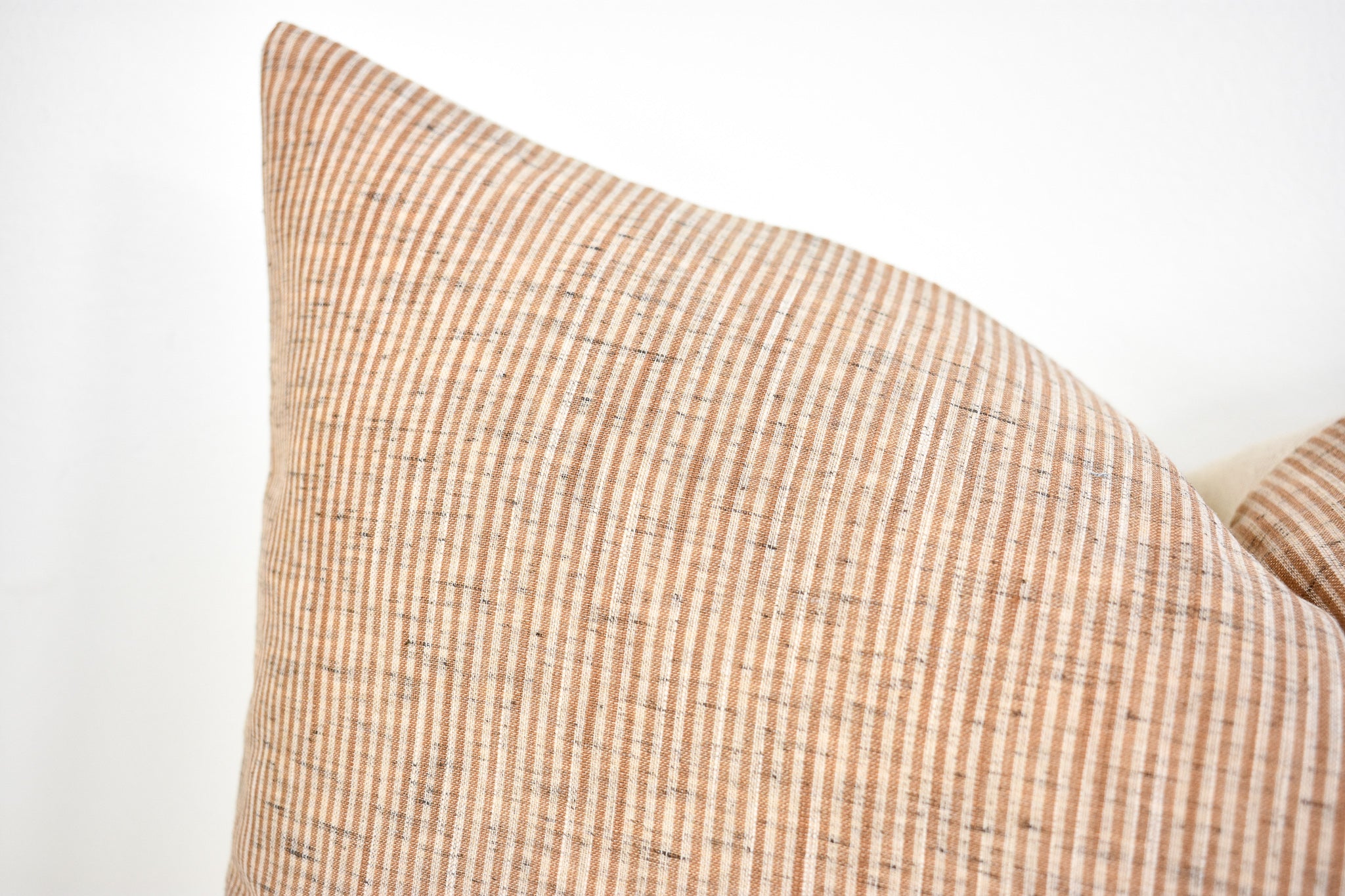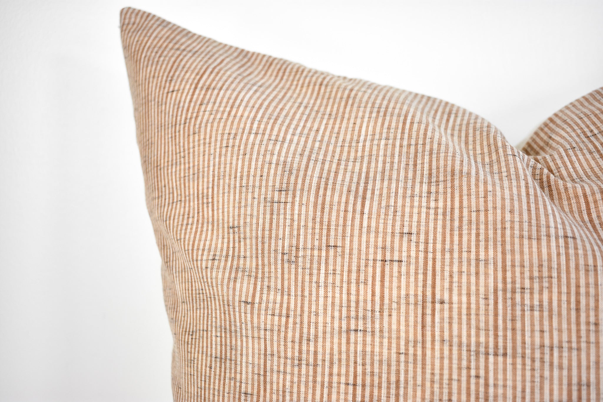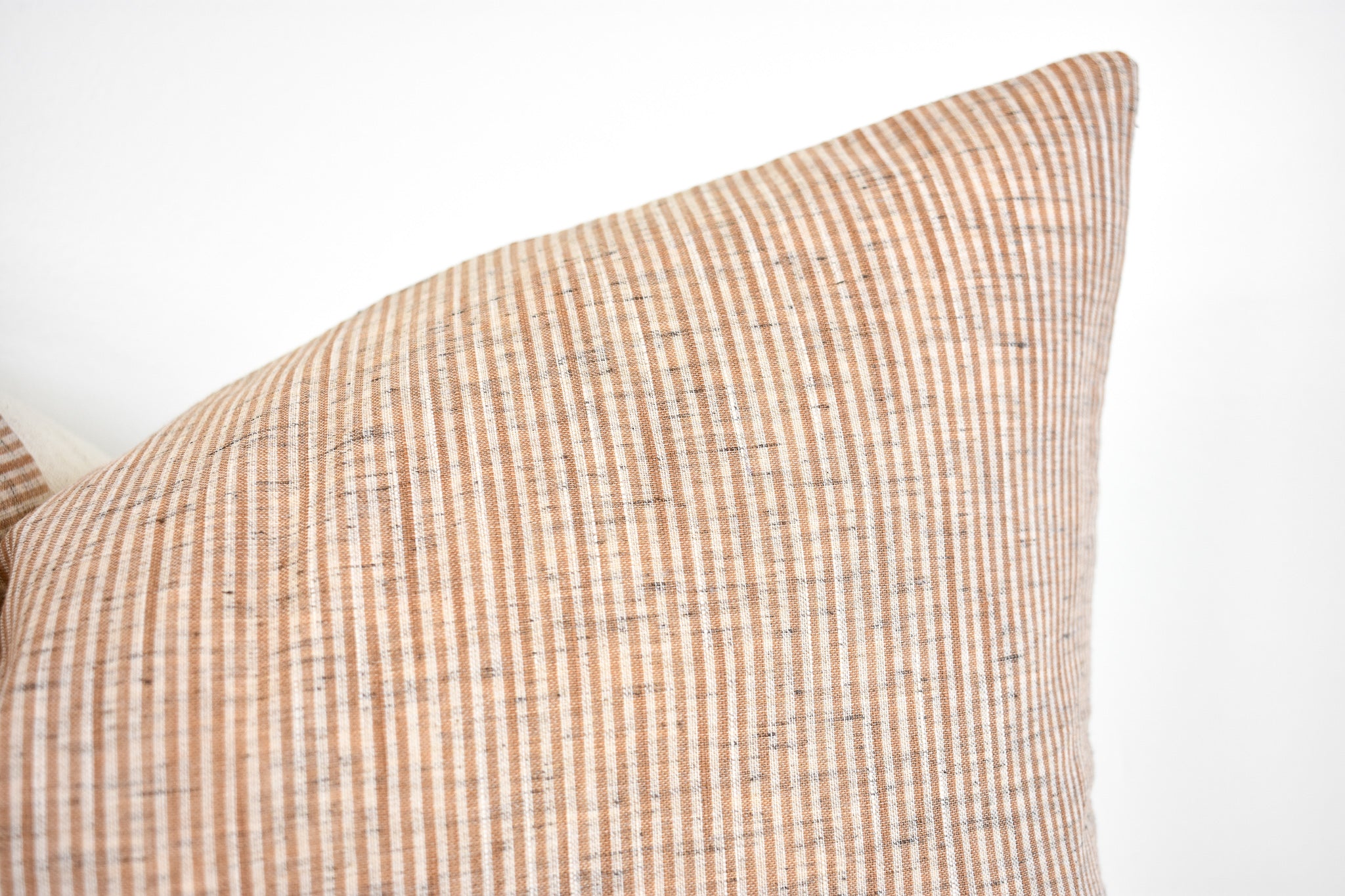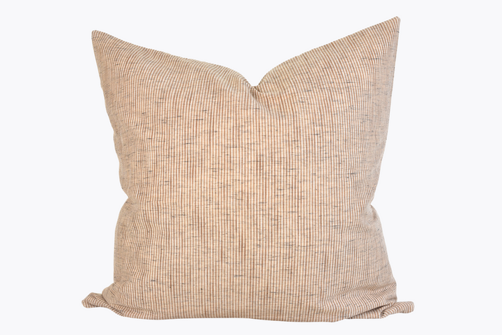 This pillow is crafted from a beautiful and ivory pinstripe fabric. We traveled to Thailand and hand picked each of these gorgeous fabrics to create a collection that is both unique and cohesive, so putting together a combo is effortless. By going straight to the source, we cut out middleman costs, so you get the high end designer look without the high end designer price.
