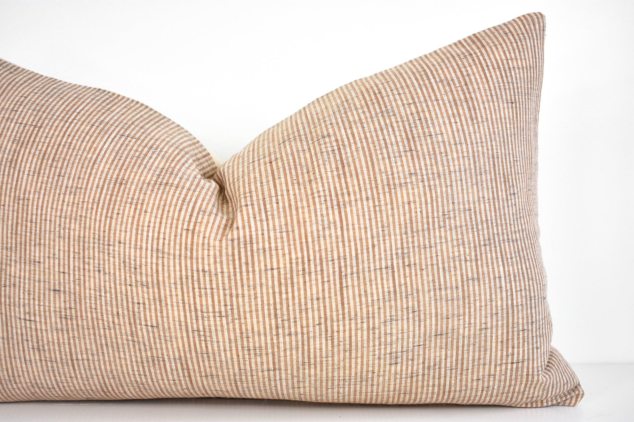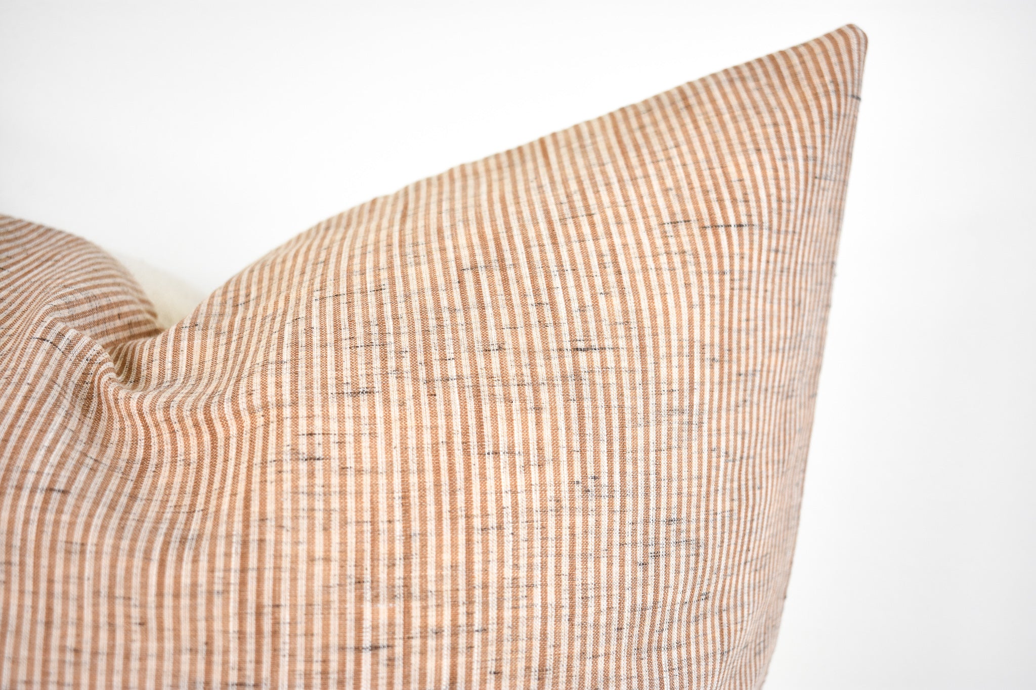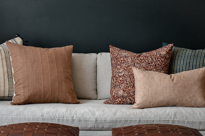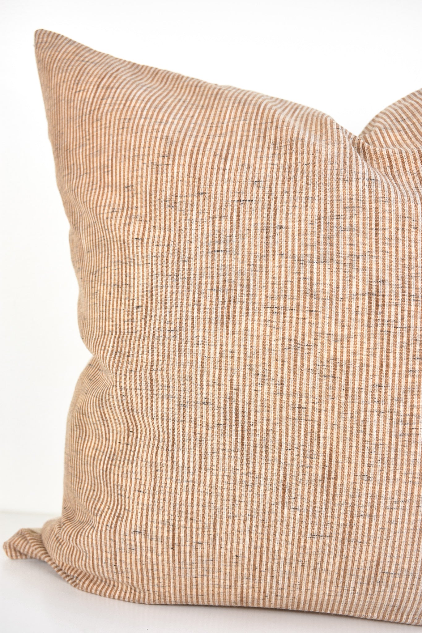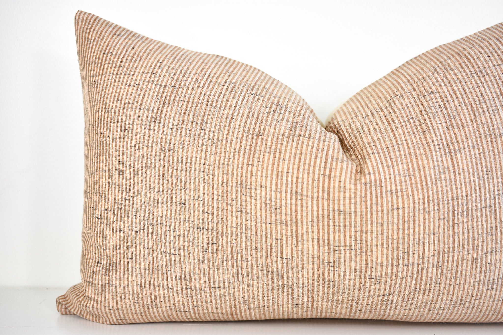 This pillow is crafted from a beautiful and ivory pinstripe fabric. We traveled to Thailand and hand picked each of these gorgeous fabrics to create a collection that is both unique and cohesive, so putting together a combo is effortless. By going straight to the source, we cut out middleman costs, so you get the high end designer look without the high end designer price.