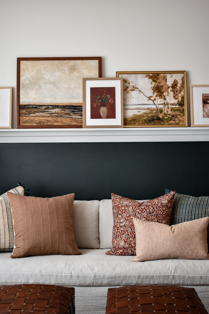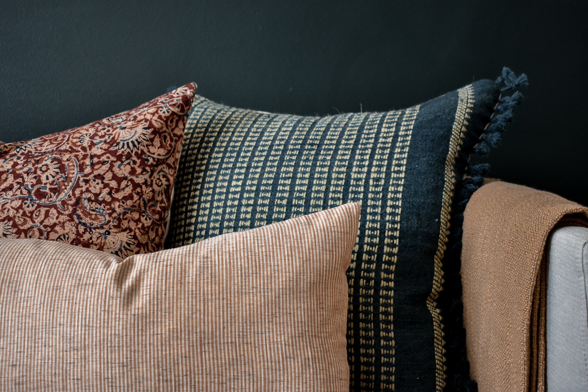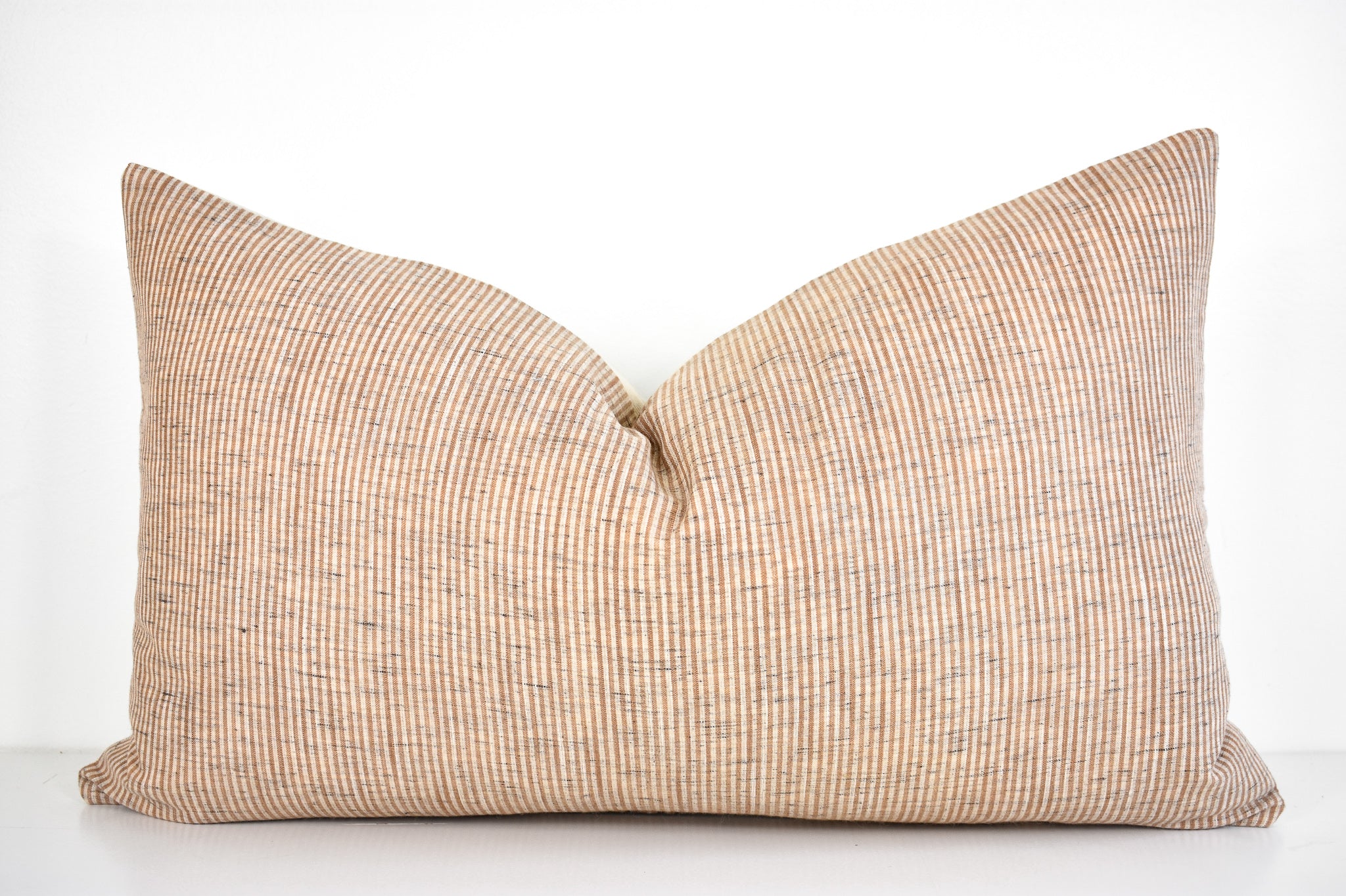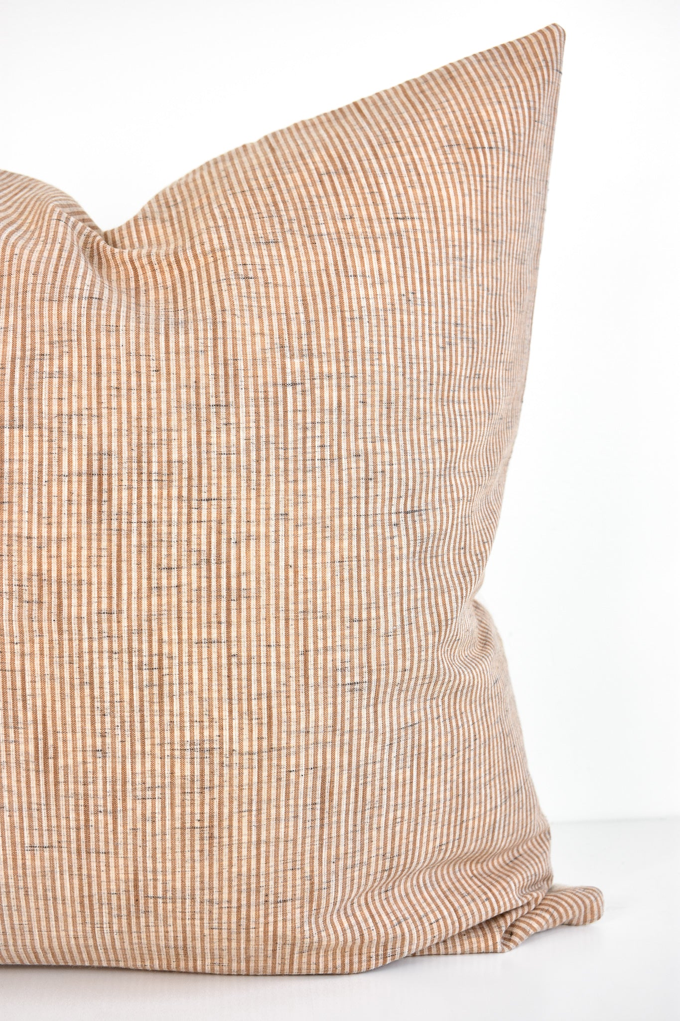This pillow is crafted from a beautiful and ivory pinstripe fabric. We traveled to Thailand and hand picked each of these gorgeous fabrics to create a collection that is both unique and cohesive, so putting together a combo is effortless. By going straight to the source, we cut out middleman costs, so you get the high end designer look without the high end designer price.