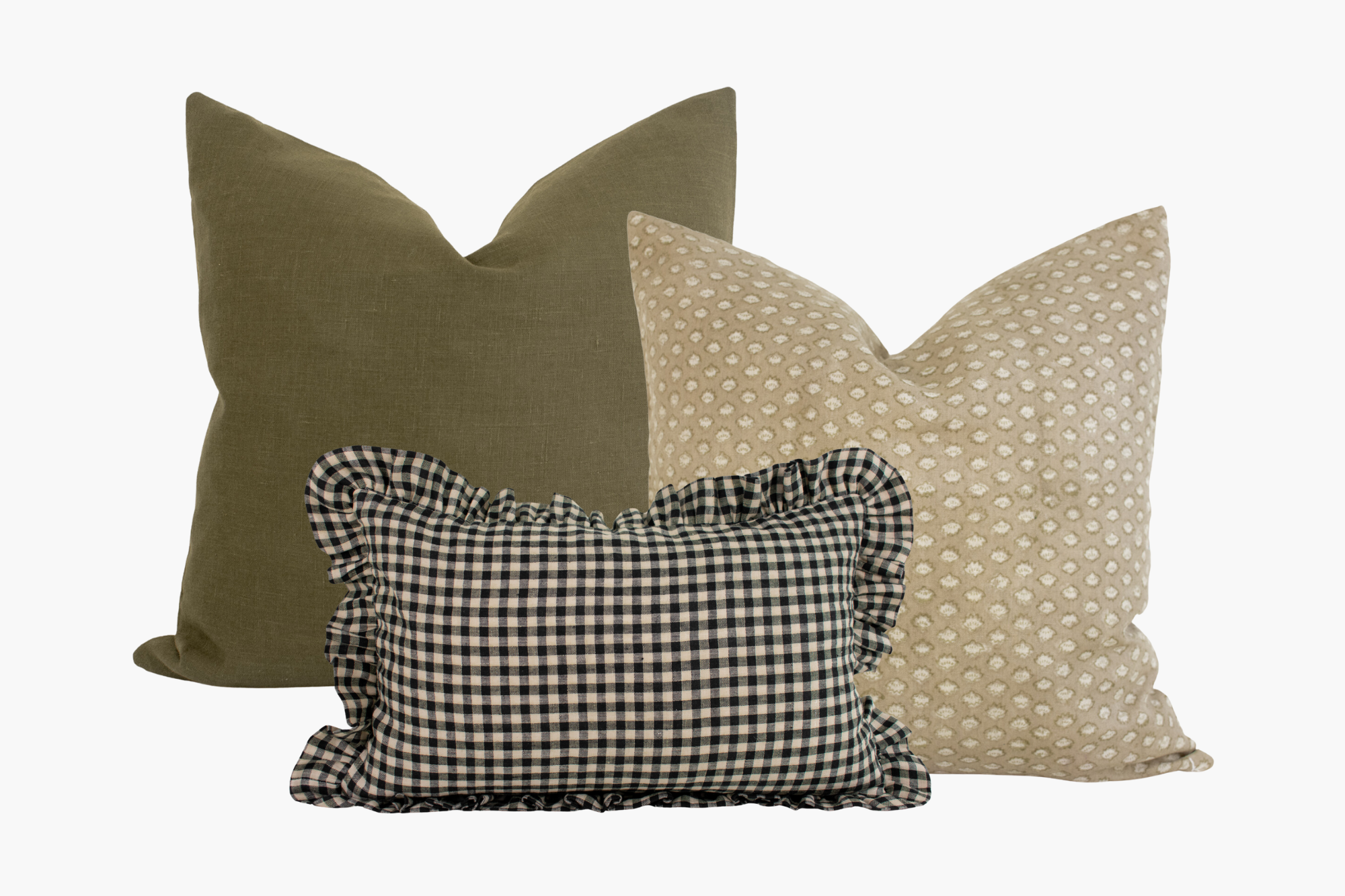 This beautiful sofa pillow combo is made up of 5 of our pillow covers. This combination includes: