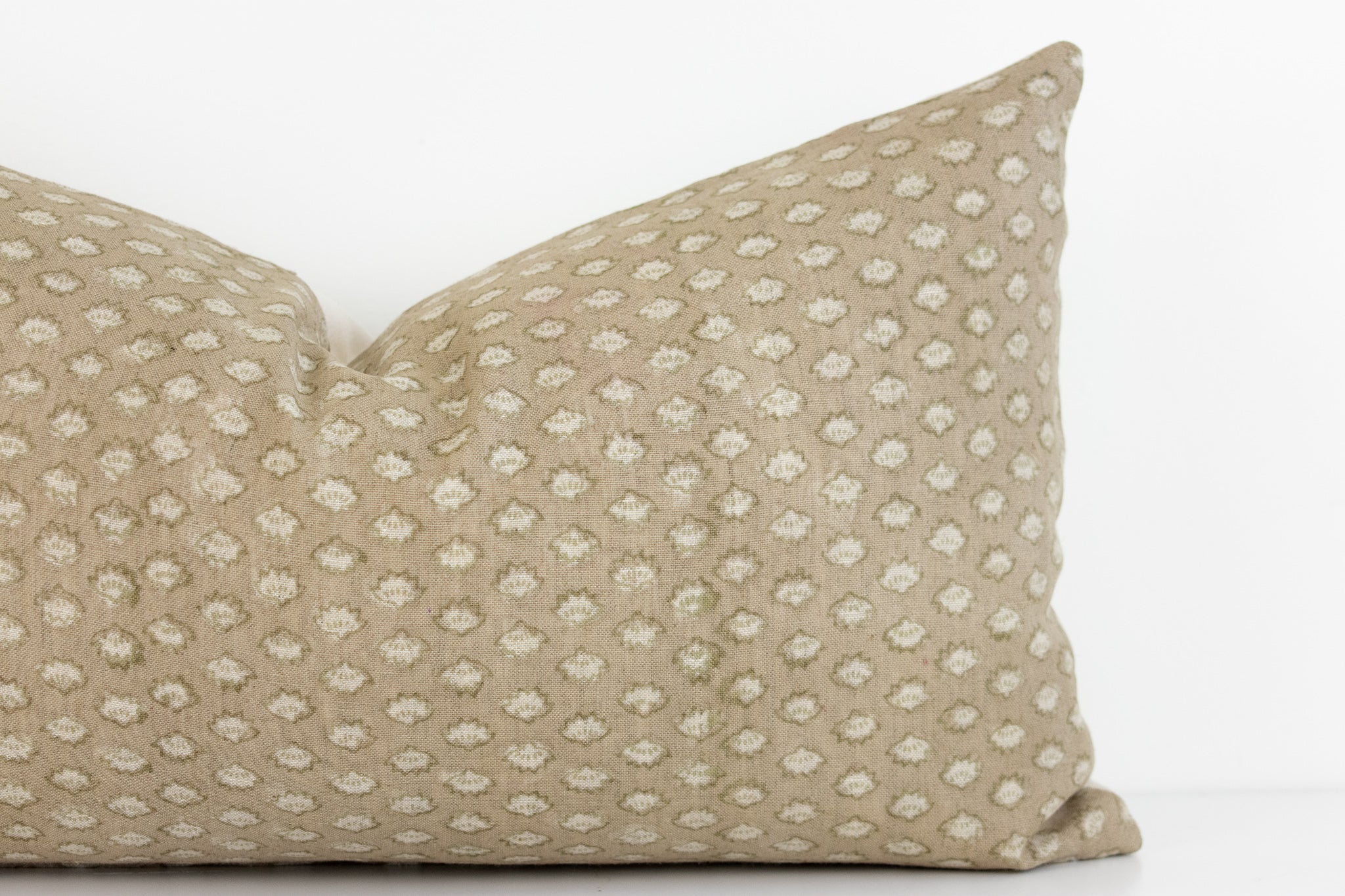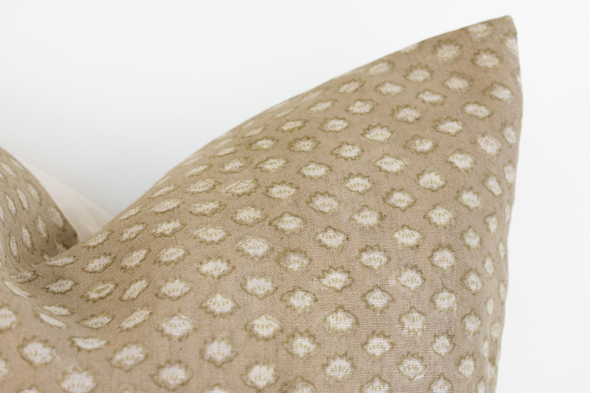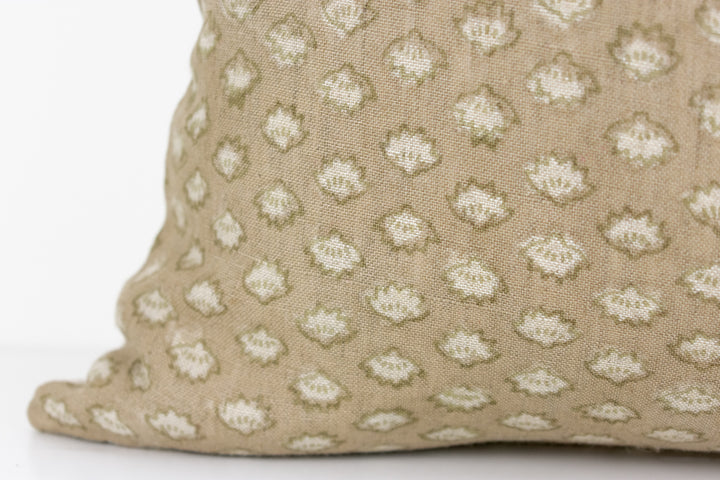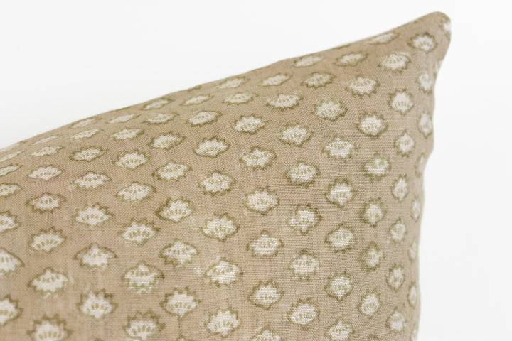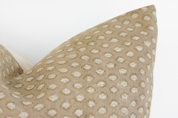 Indian Block Print Pillow Cover - Beige/Tan Blossom