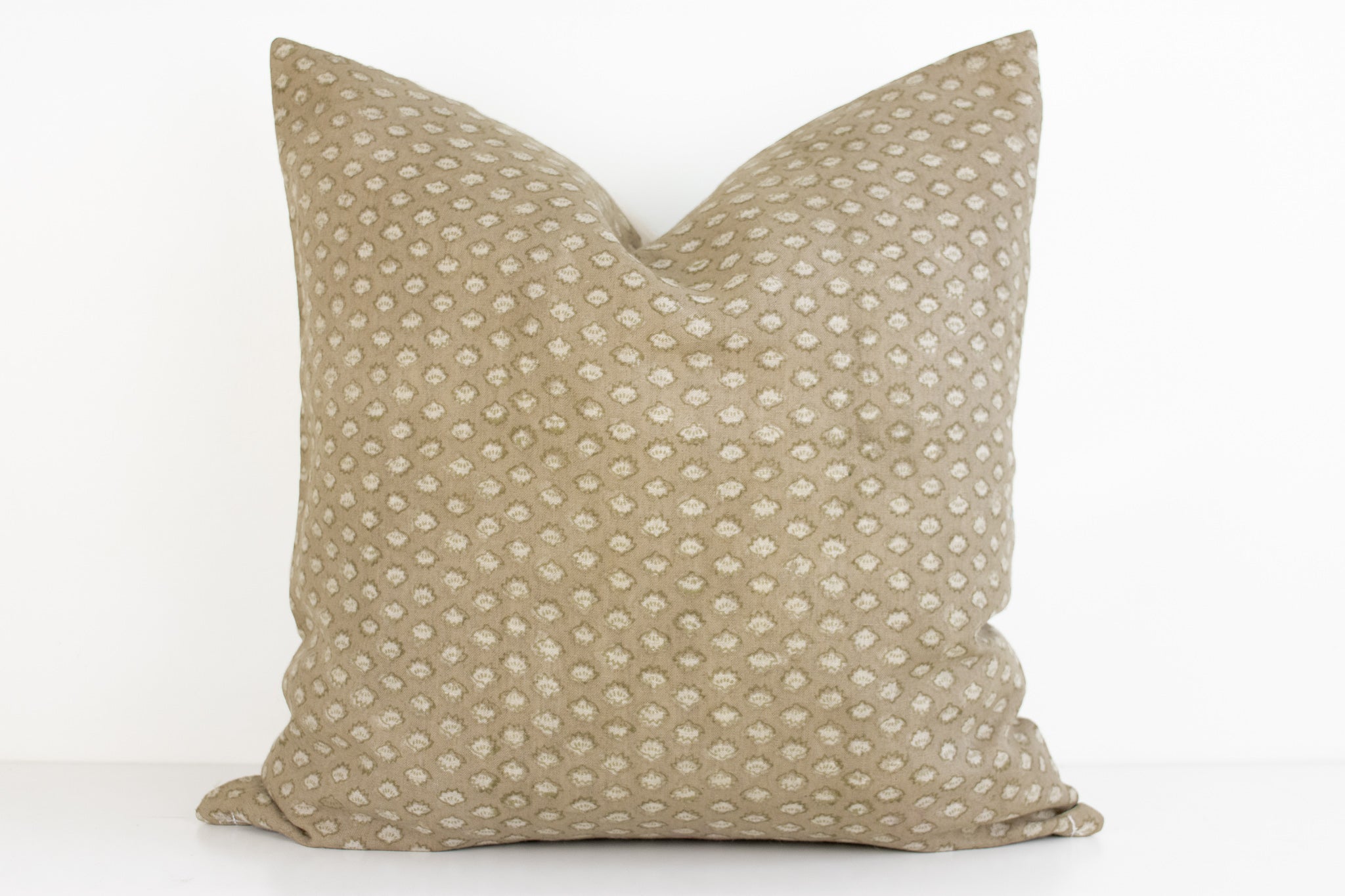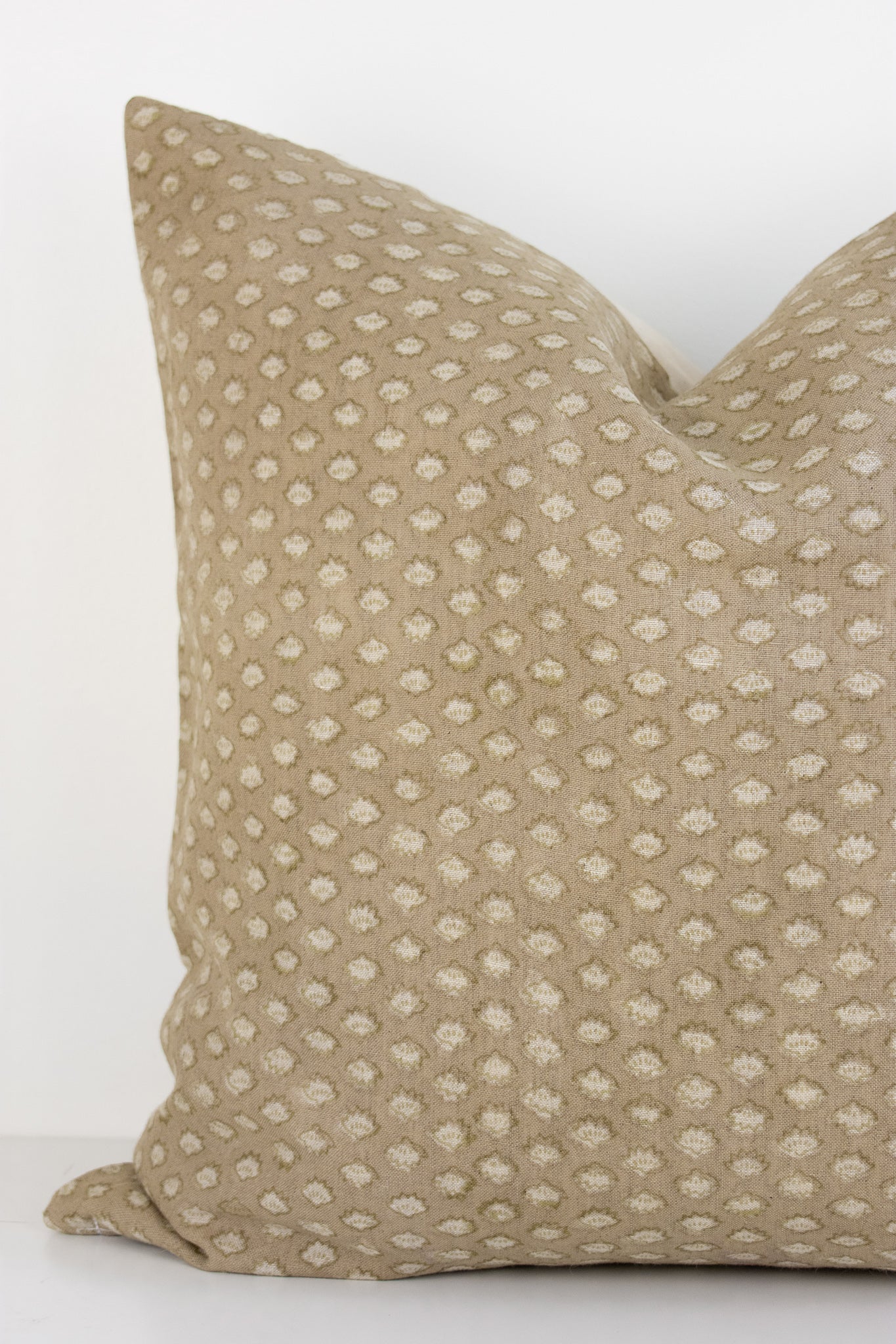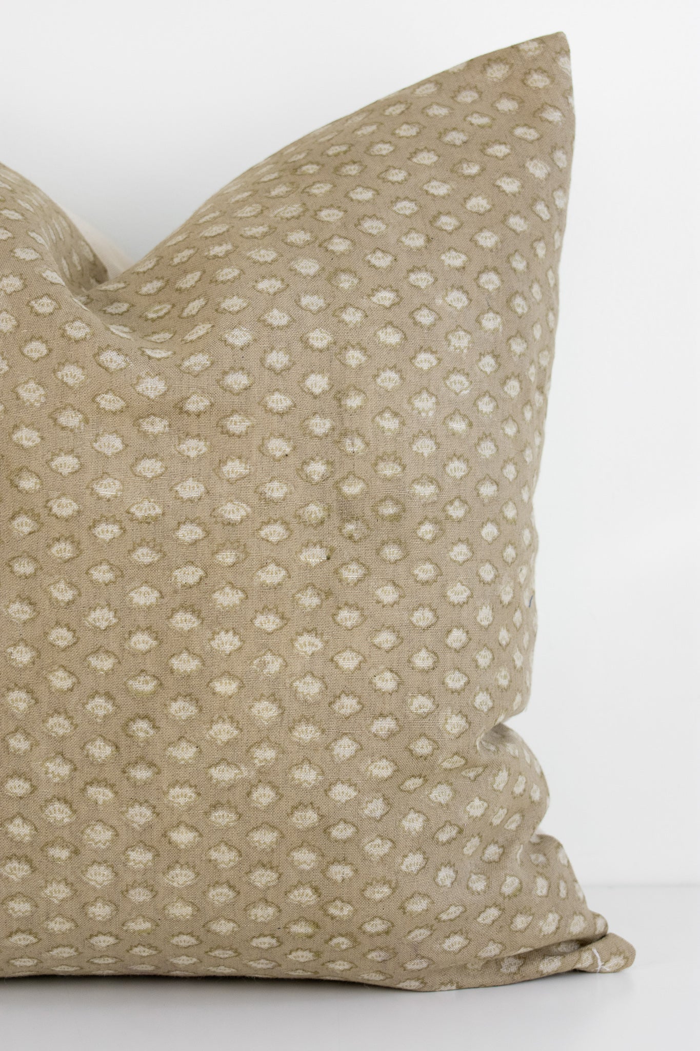 Indian Block Print Pillow Cover - Beige/Tan Blossom