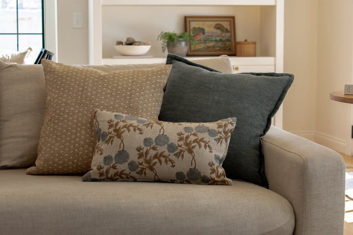 Our Indian Block Print Pillows are a true labor of love. We designed each one and had them hand block printed by our talented artisans on luxuriously soft, 100% natural linen. Their rich colors and intricate details elevate any space and add a gorgeous cultural dimension to any room!