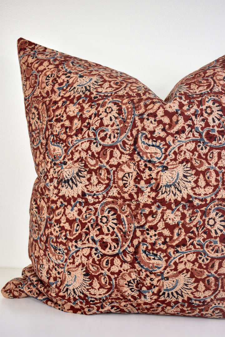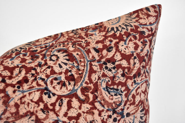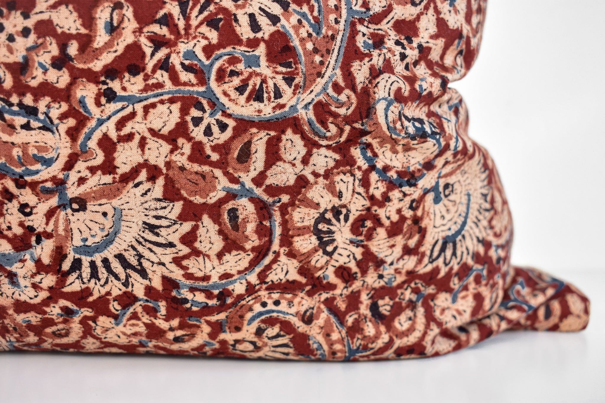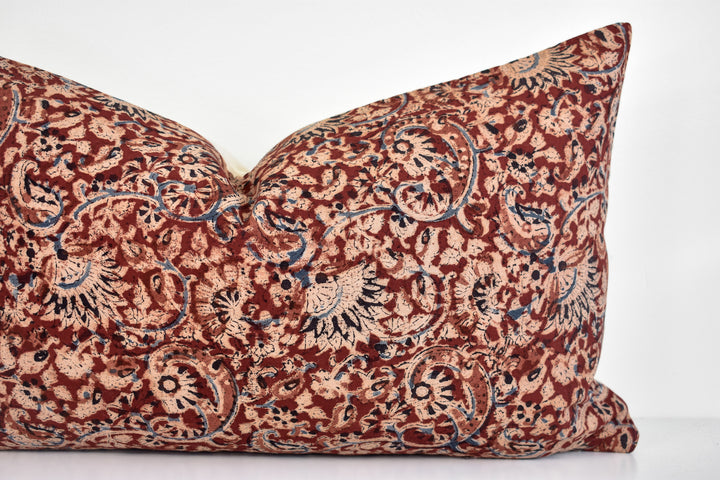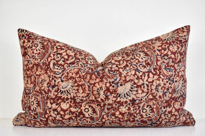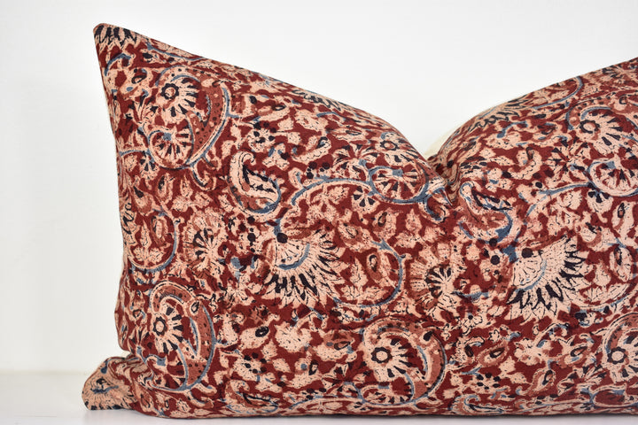 Indian Block Print Pillow Cover - Rust, Tan, Indigo