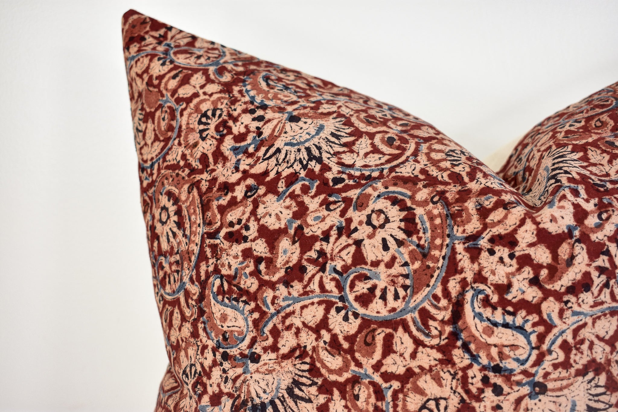 Our Indian Block Print Pillows are a true labor of love. We designed each one and had them hand block printed by our talented artisans on luxuriously soft, 100% natural linen. Their rich colors and intricate details elevate any space and add a gorgeous cultural dimension to any room!