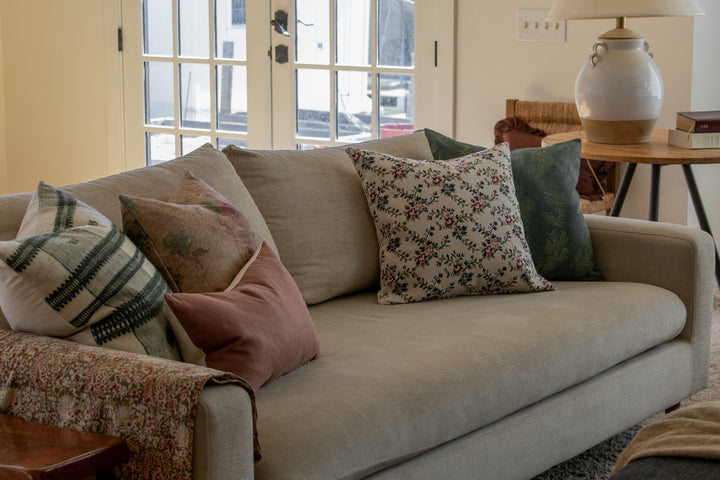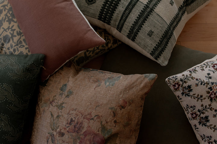 Our Indian Block Print Pillows are a true labor of love. We designed each one and had them hand block printed by our talented artisans on luxuriously soft, 100% natural linen. Their rich colors and intricate details elevate any space and add a gorgeous cultural dimension to any room!